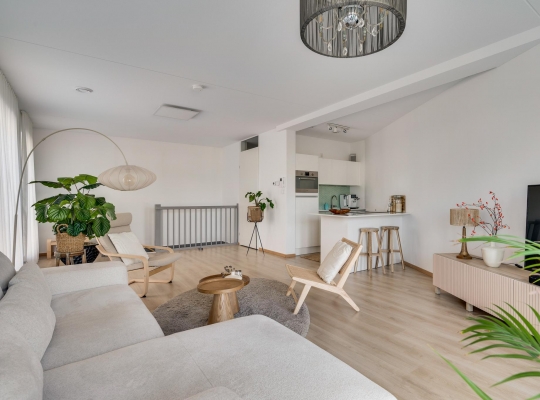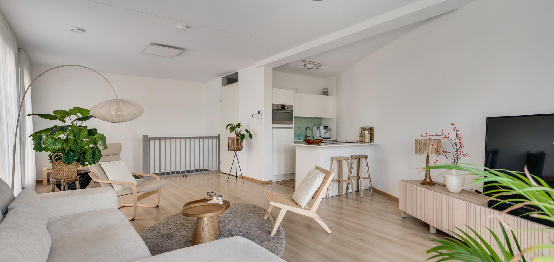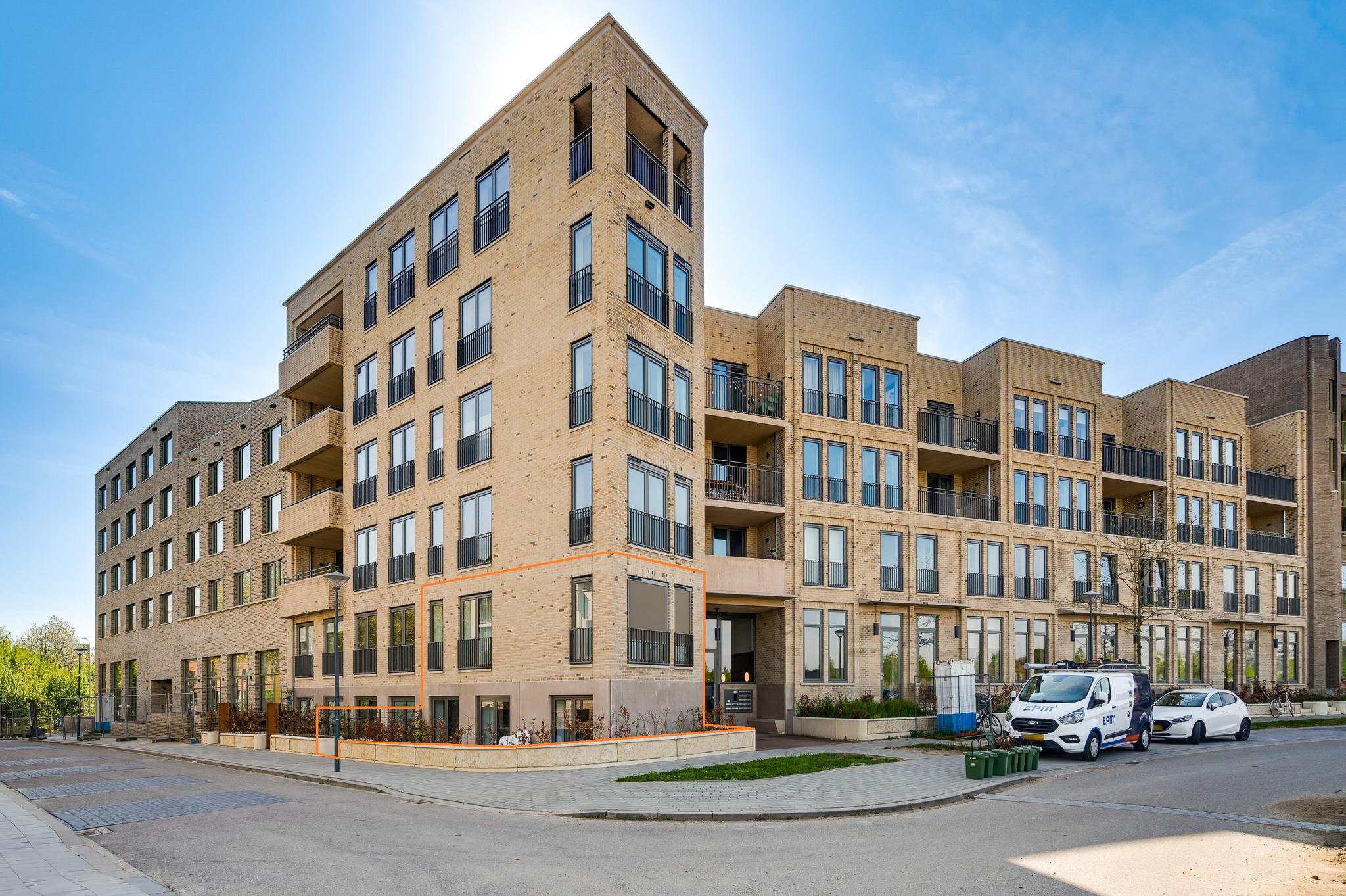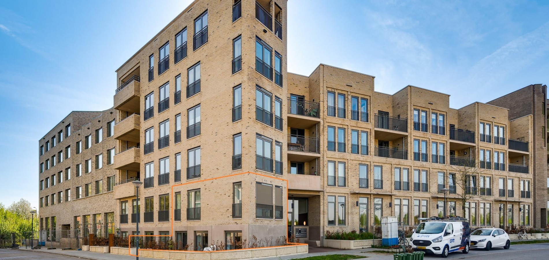 Uniek, duurzaam appartement met een 44 m2 groot terras. Van dit appartement, type maisonnette, is er maar één. De ligging op de hoek van het gebouw zorgt voor veel lichtinval, er zijn 2 slaapkamers in het souterrain en de woonkamer met open keuken bevindt zich op de begane grond, boven straatniveau. Het circa 44 m2 grote terras, de overdekte parkeerplek en de privéberging maken dit appartement met energielabel A+++ tot een fantastische plek om te wonen.