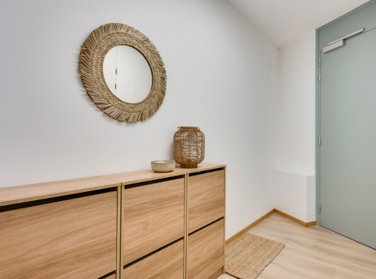 Het prachtige gebouw met de naam Jolie heeft een uitnodigende, gezamenlijke entree met veel lichtinval. Het stijlvolle trappenhuis en de lift verbindt de begane grond met de bovengelegen woonetages. Bij het appartement horen een vaste overdekte parkeerplek (nummer 68) en een berging (circa 2,97 x 1,81).