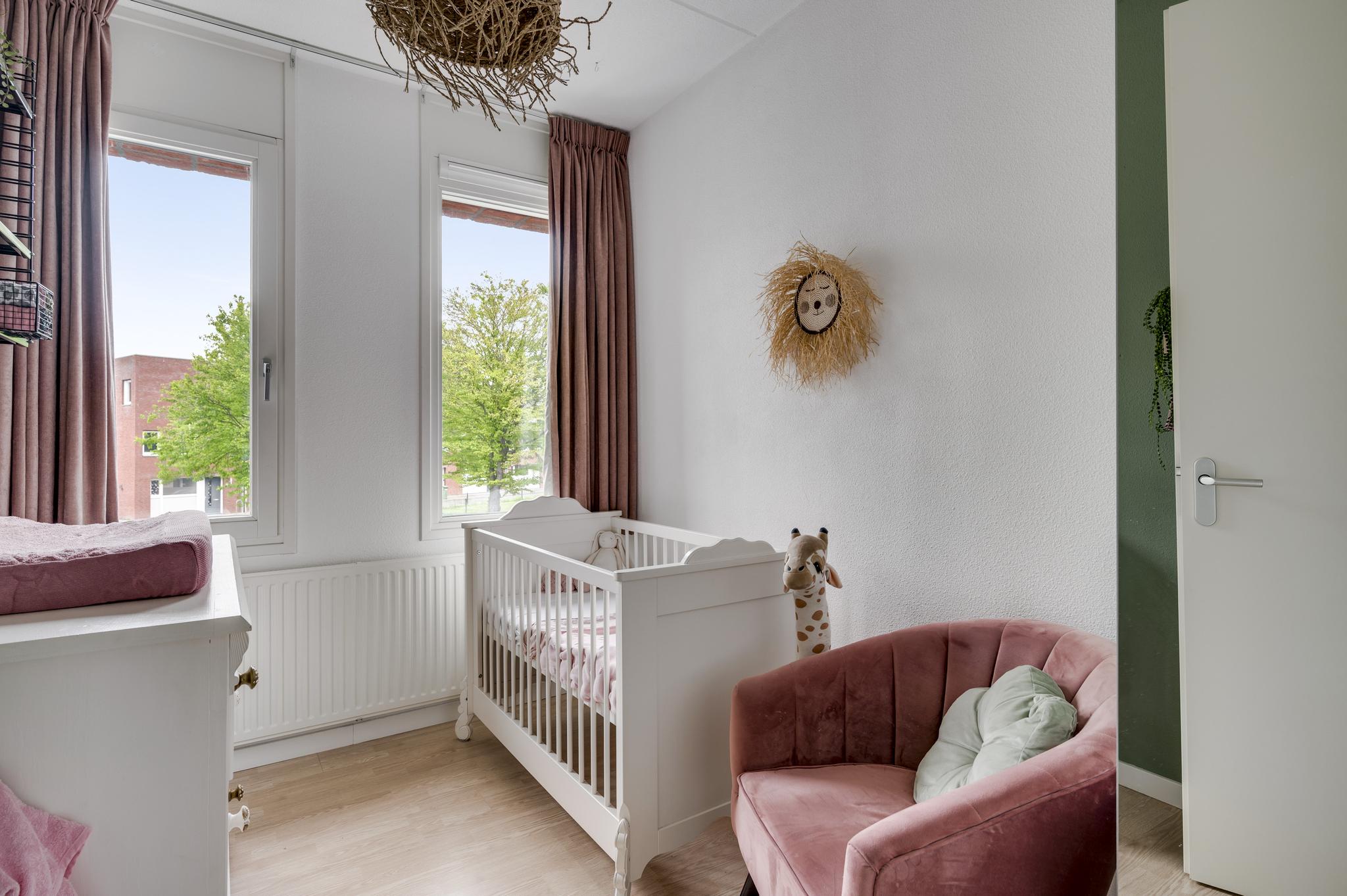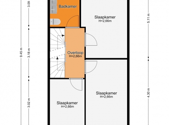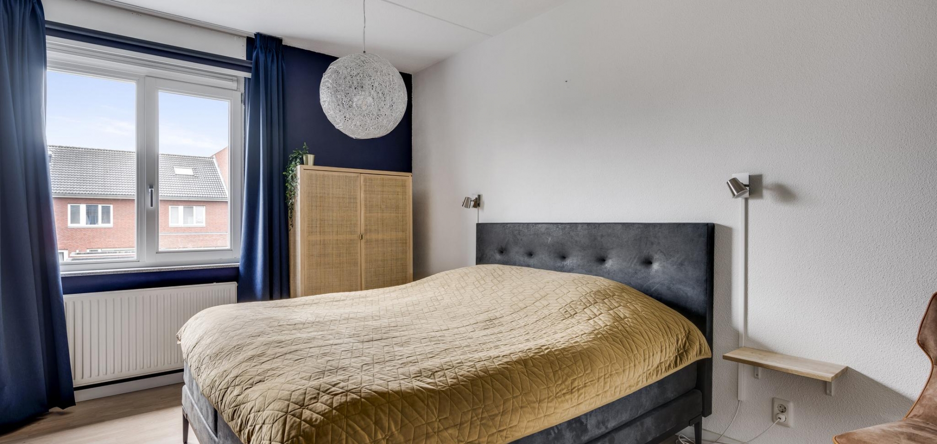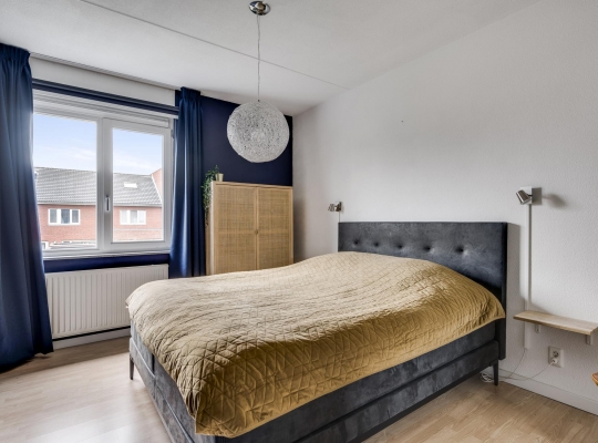 Vanaf de overloop zijn drie slaapkamers en de badkamer te bereiken. Aan de achterzijde is slaapkamer I (5.11 x 2.93/2.63), ingericht als master bedroom. Slaapkamer II (4.30 x 2.63) en slaapkamer III (3.02 x 2.20) zijn ingericht als kinderkamer en hebben mooi uitzicht naar het rustige plein. Op de overloop en in de slaapkamers ligt een nette laminaatvloer.