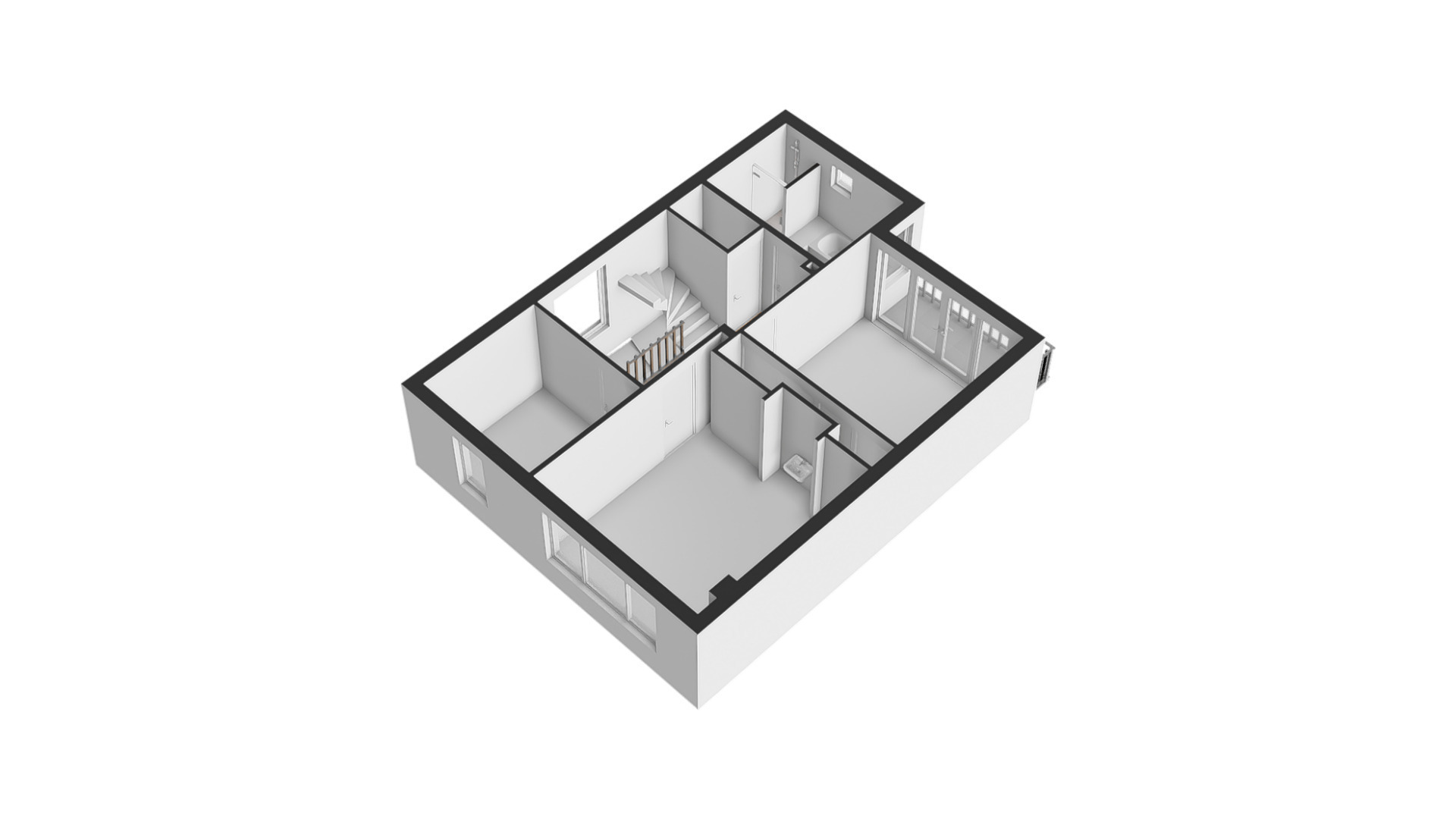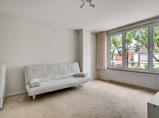 Het raam in de zijgevel zorgt voor veel lichtinval, op de overloop en bij de trap naar de begane grond. Vanaf de overloop zijn drie slaapkamers, de badkamer en een separaat toilet te bereiken.