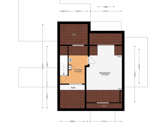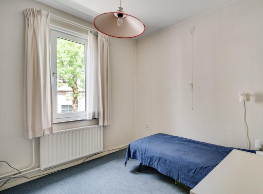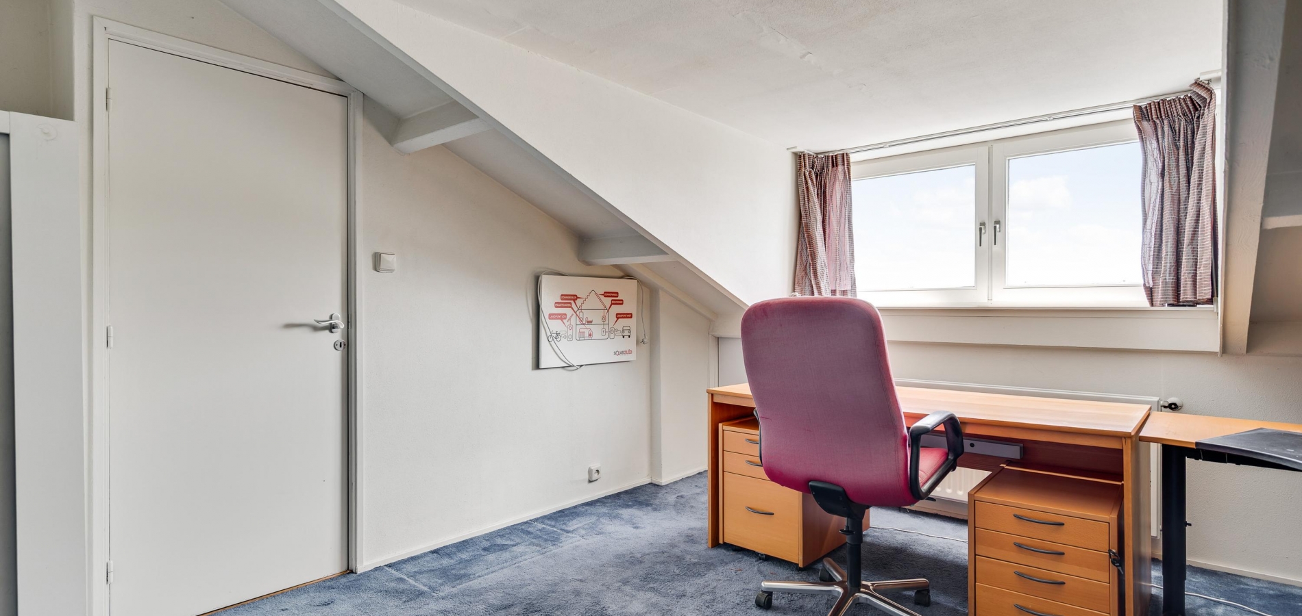 Slaapkamer IV (circa 4,13/3,73 x 6,56 vloeroppervlakte) is een ruime tweepersoonskamer, met een goede stahoogte en veel lichtinval via de ramen in de dakkapel.