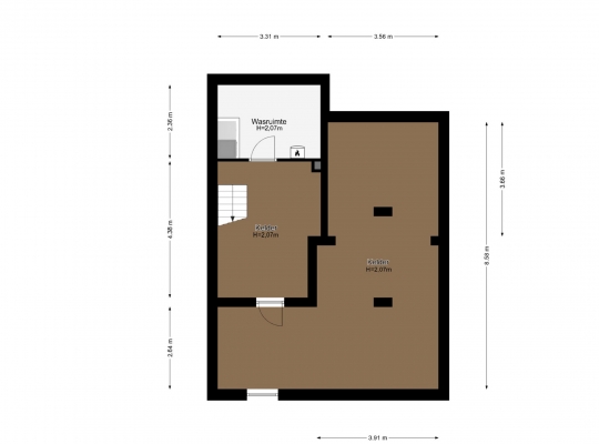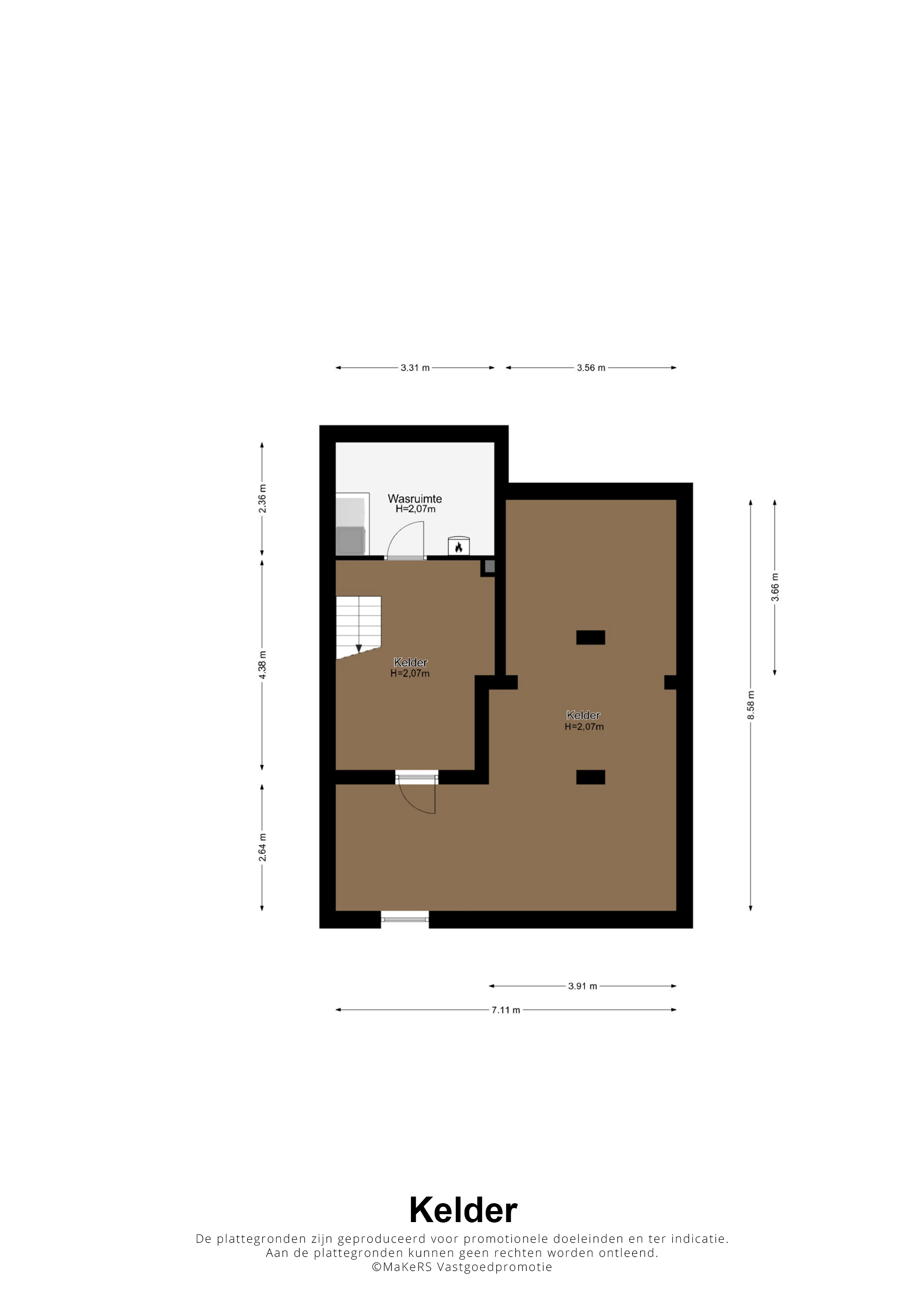 Aan de achterzijde is kelder II (circa 2,36 x 3,31), met een verhoging waarop de wasmachine en droger kunnen staan. Tevens bevindt zich hier de cv ketel (eigendom 2009) Kelder III (circa 40,6 m2) in een L-vorm is de grootste ruimte, in gebruik als berging en hobbyruimte.