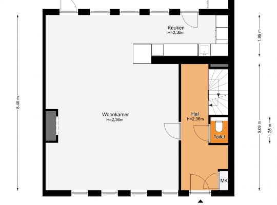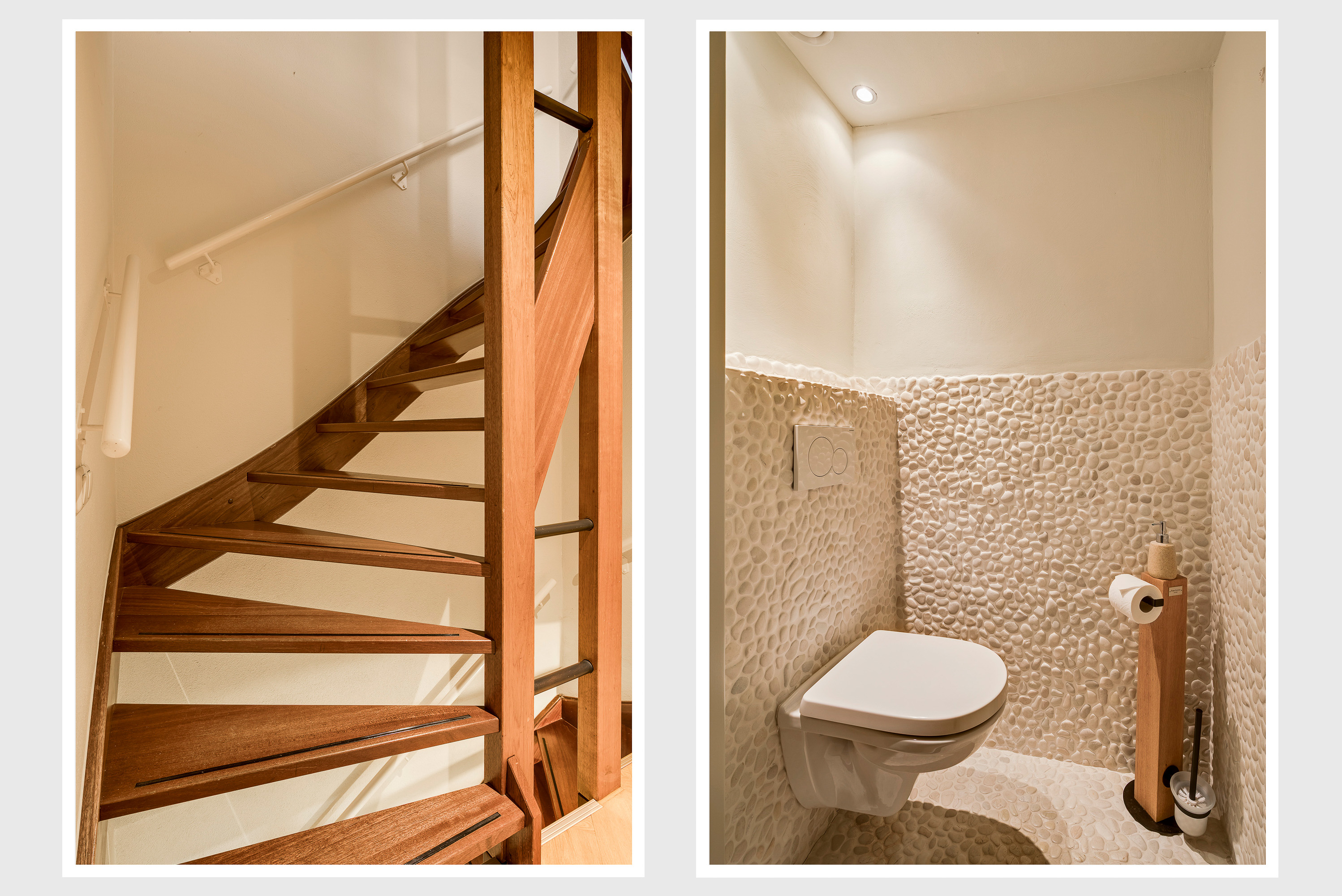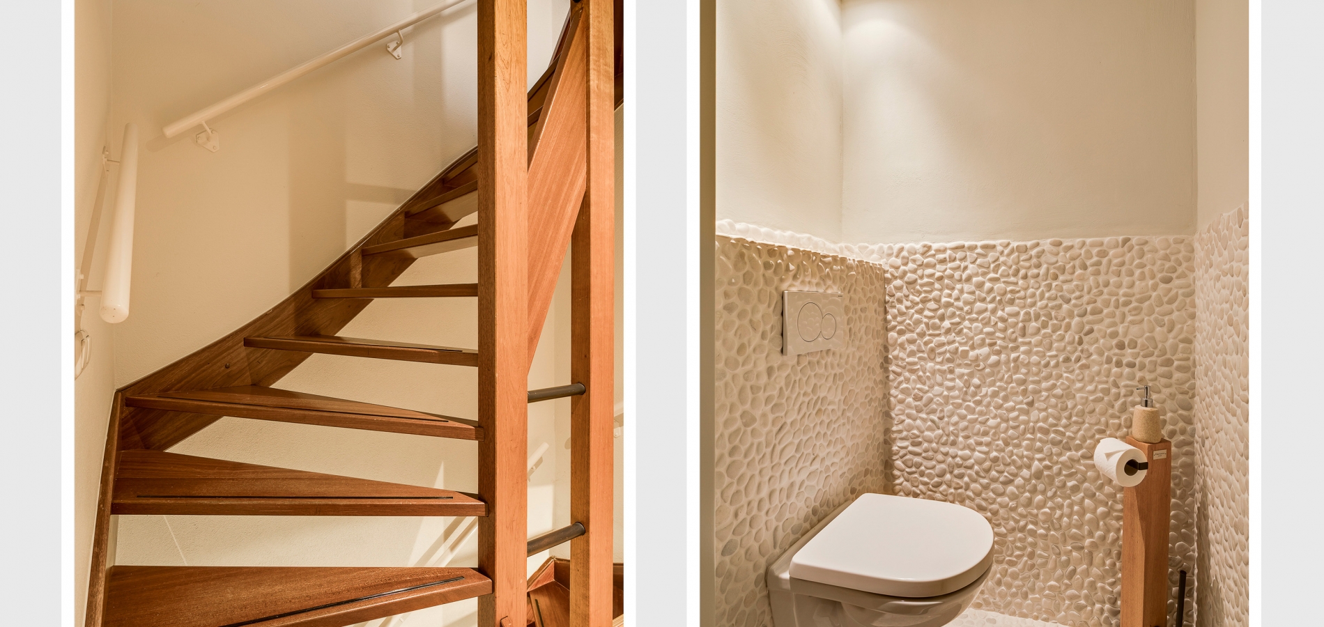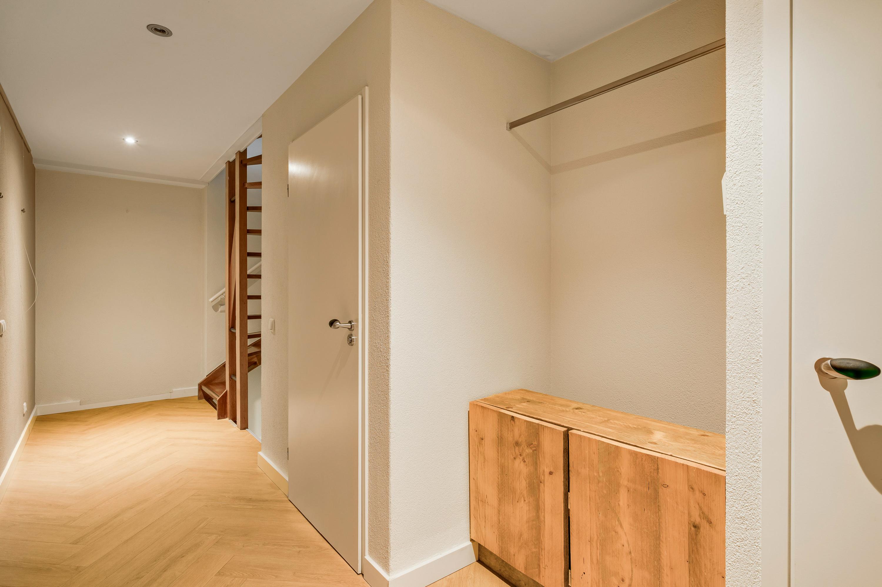 Als u in de hal (circa 6,09 x 2,27) staat, ziet u dat dit een droomhuis is. Warme kleuren en mooie materialen bepalen de sfeer in deze stijlvolle ontvangstruimte. Aan de rechterzijde zijn de meterkast, de garderobe, het trappenhuis van hardhout en het in 2023 vernieuwde gastentoilet.