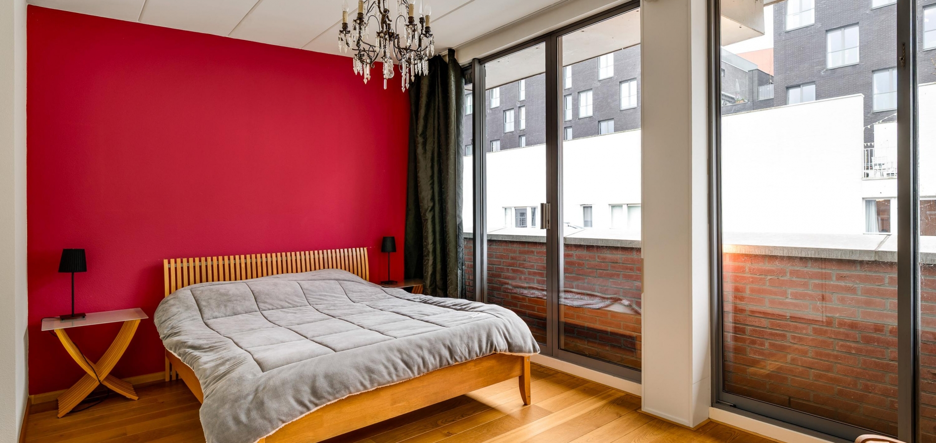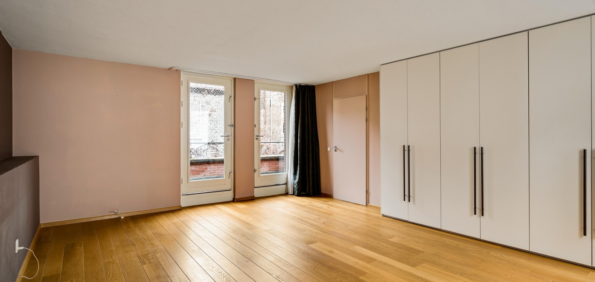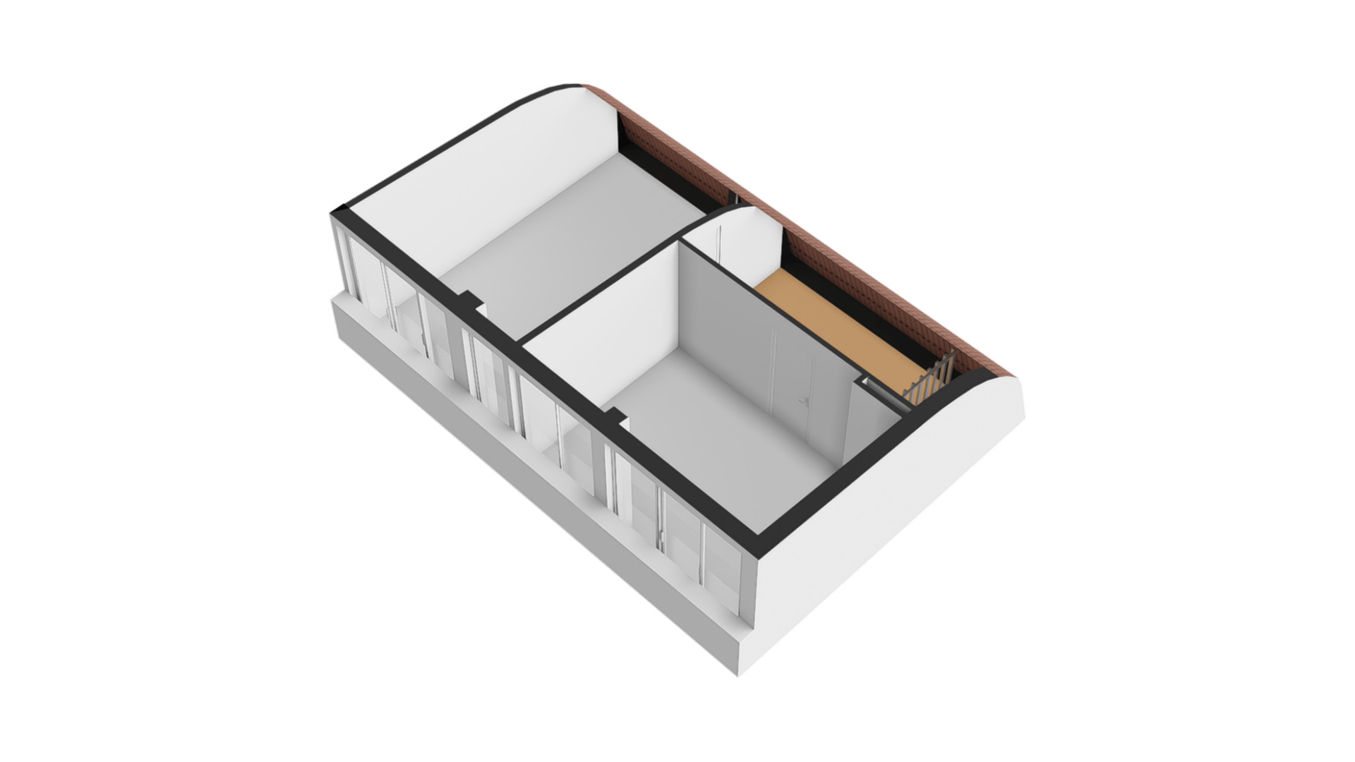Onder het gebogen dak met koperen afwerking zijn nog twee slaapkamers, beiden bereikbaar vanaf de overloop. Ook op deze verdieping ligt een eiken parketvloer en door de grote ramen, deels uitgevoerd als schuifpui, valt veel licht naar binnen.