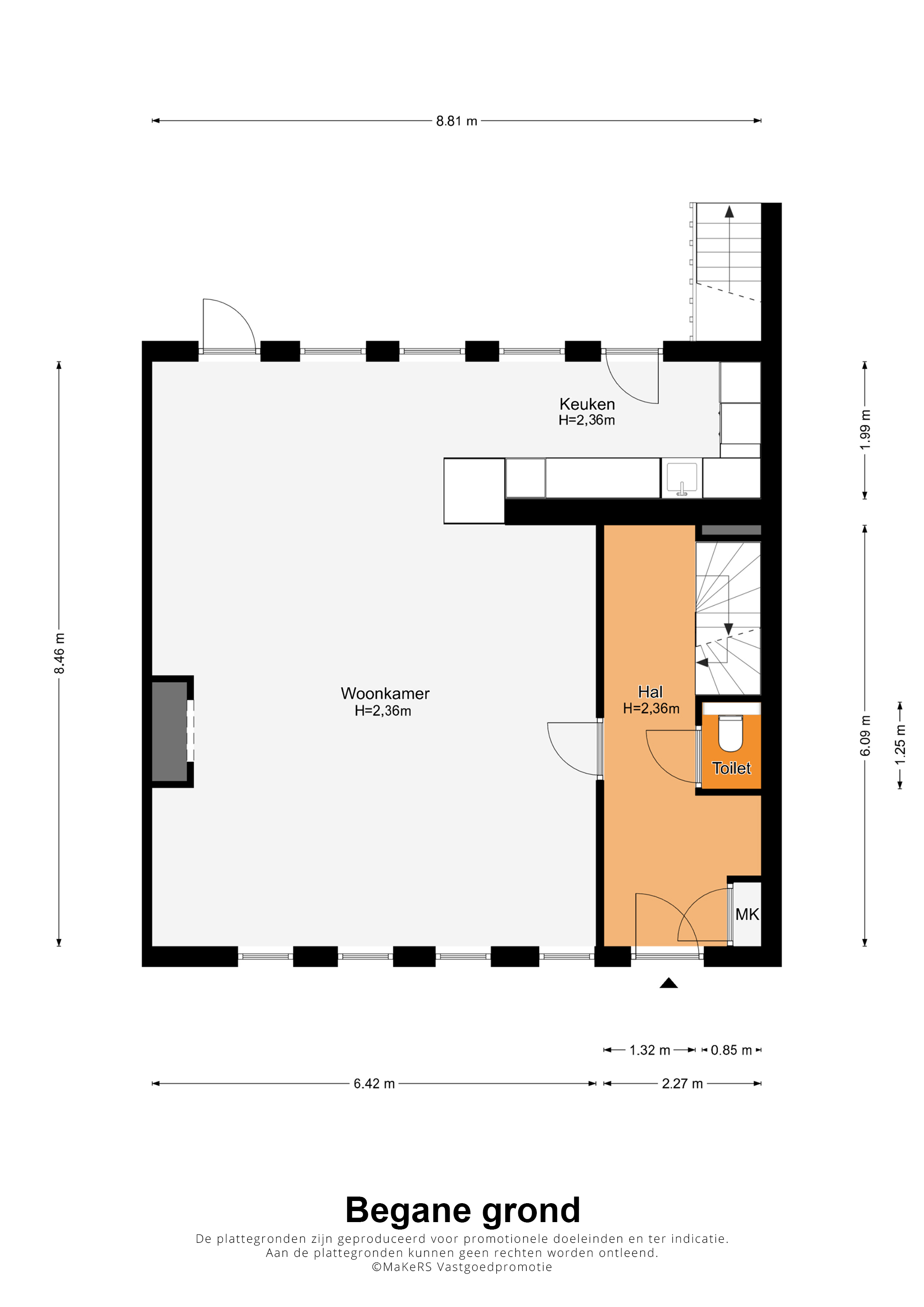 Onzerzijds wordt echter geen enkele aansprakelijkheid aanvaard voor enige onvolledigheid, onjuist of anderszins, dan wel de gevolgen daarvan. Alle opgegeven maten en oppervlakten zijn indicatief. Van toepassing zijn de NVM voorwaarden.