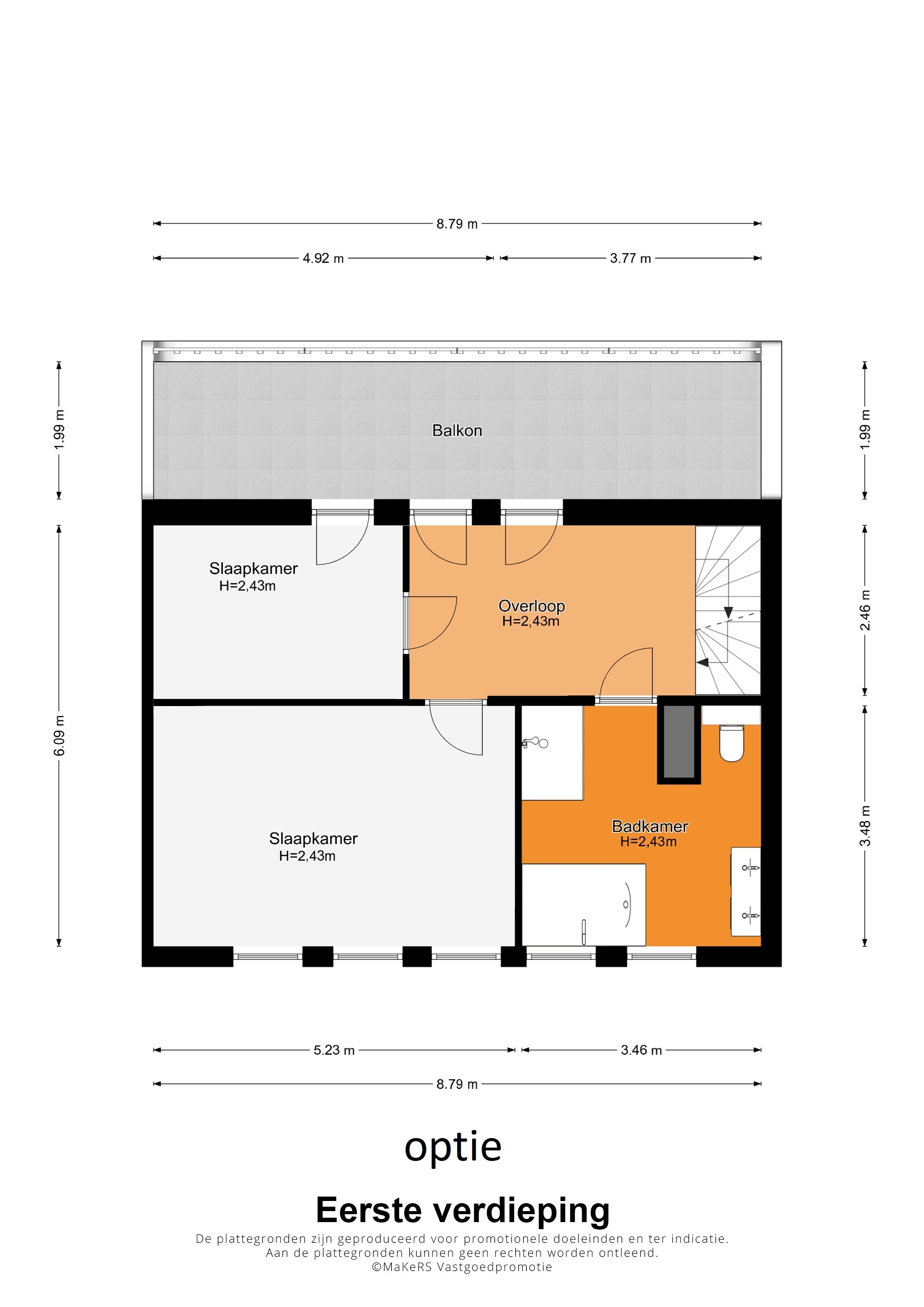 Drie slaapkamers met mogelijkheid tot vier slaapkamers
