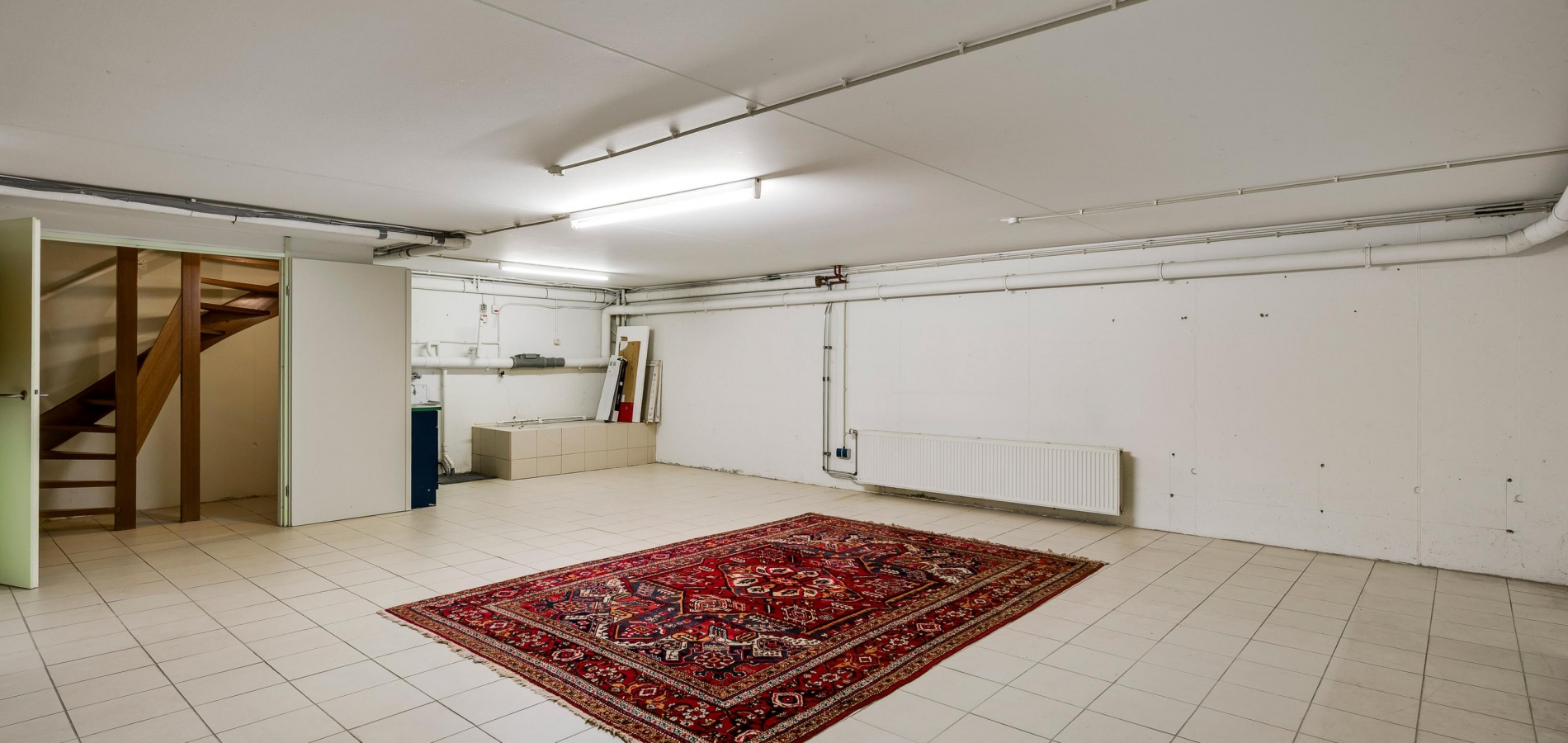 Wat u vanaf de straat niet ziet, is het zeer ruime en multifunctionele souterrain (8,46 x 8,81). Deze ruimte is niet alleen bereikbaar vanaf de begane grond, maar ook vanuit de tuin. Verwarming is aanwezig, net als elektra en water. De lichte tegelvloer vormt een uitstekende basis om het souterrain een invulling naar eigen wens te geven. Wordt het een sportruimte, een wellness, een entertainmentroom of de ultieme chillplek voor de kinderen?