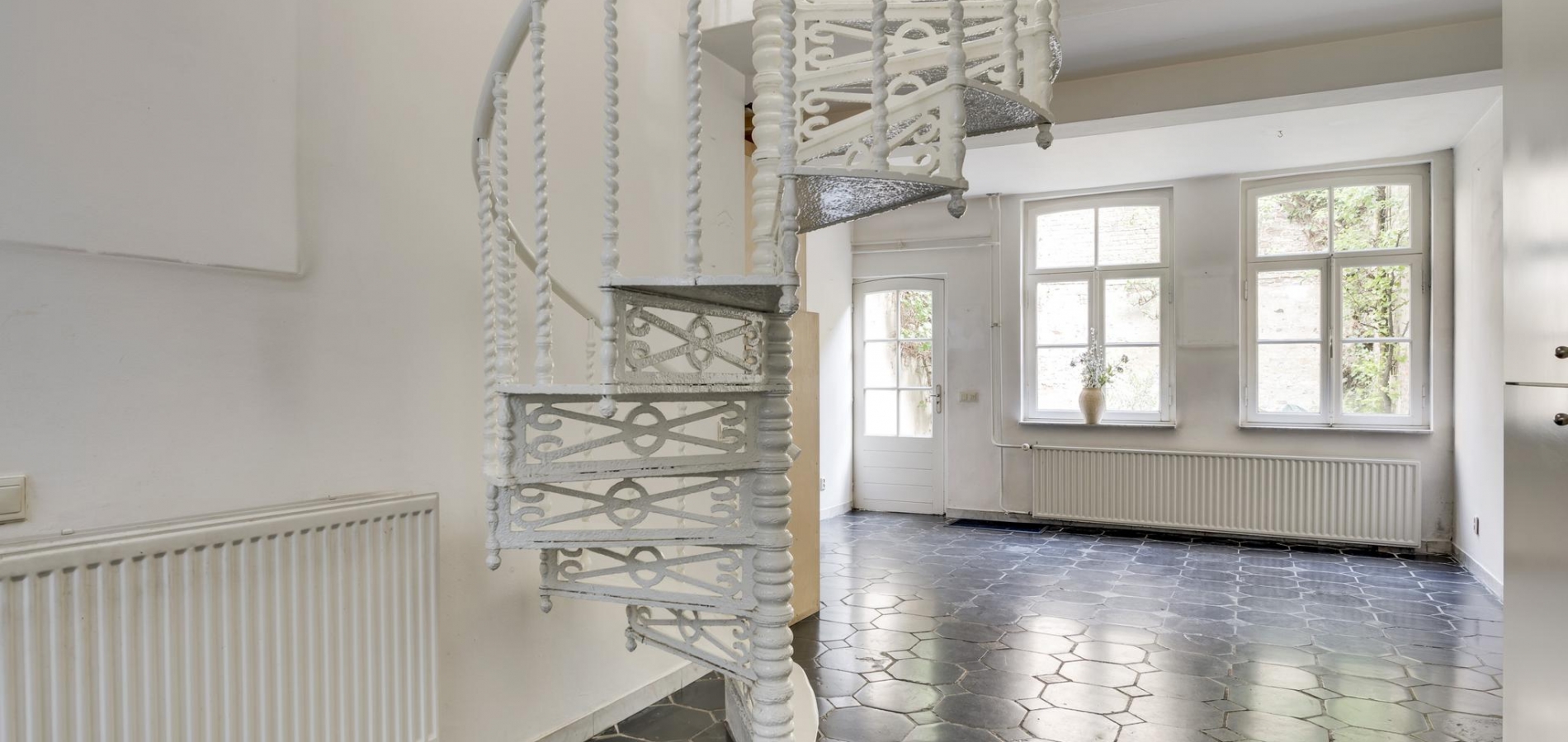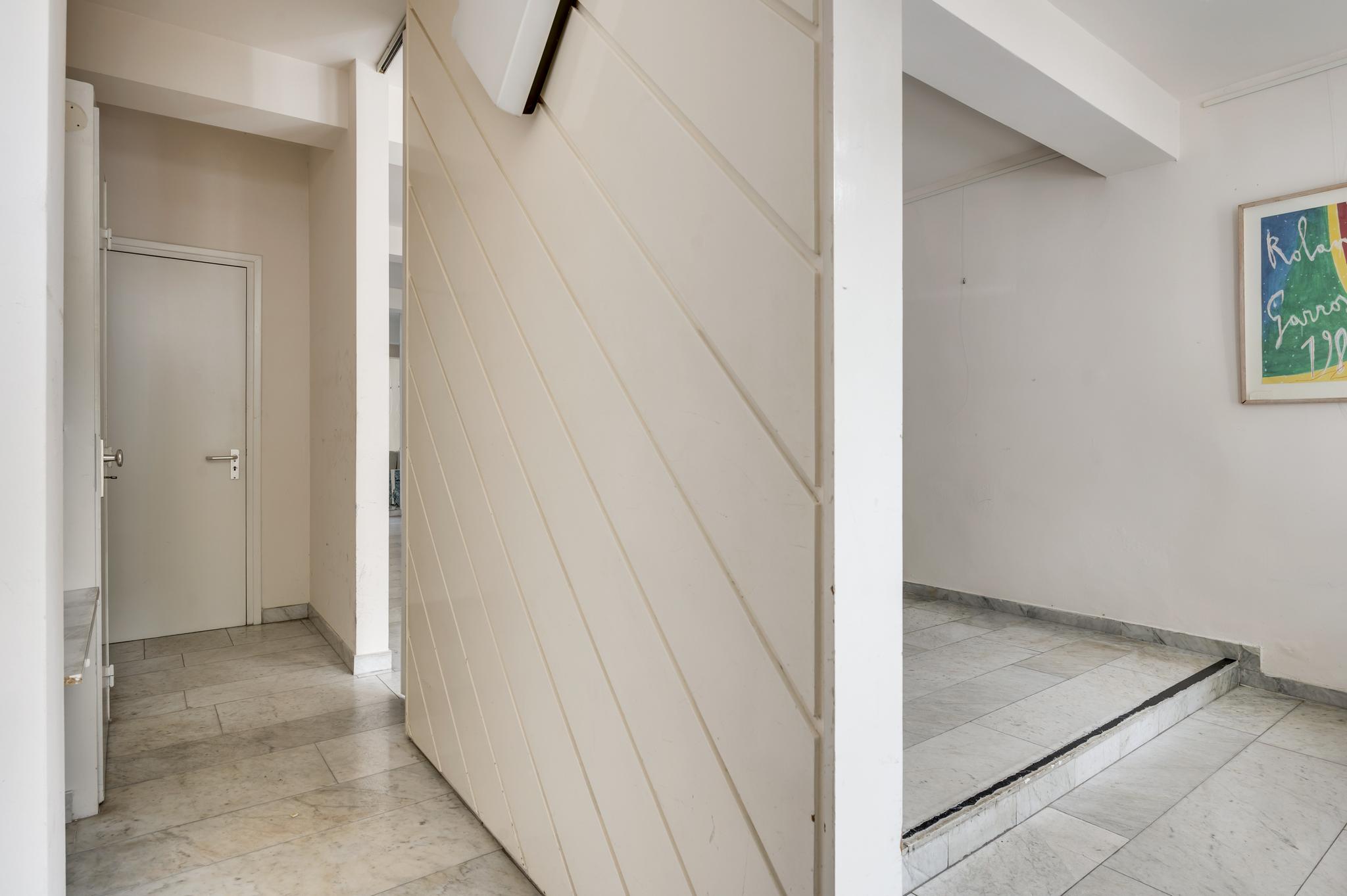 In het entreeportaal bevinden zich de recentelijk vernieuwde meterkast, een garderobe en de trap naar het souterrain.