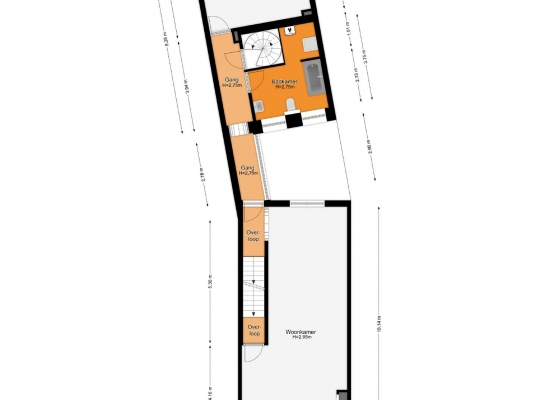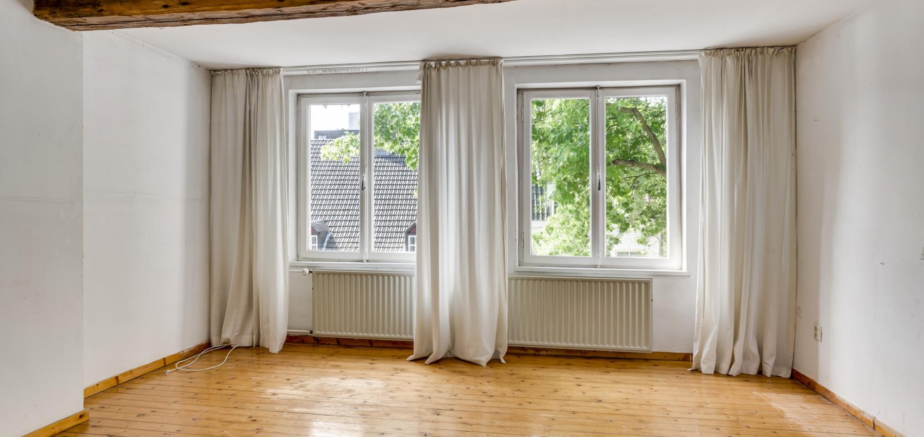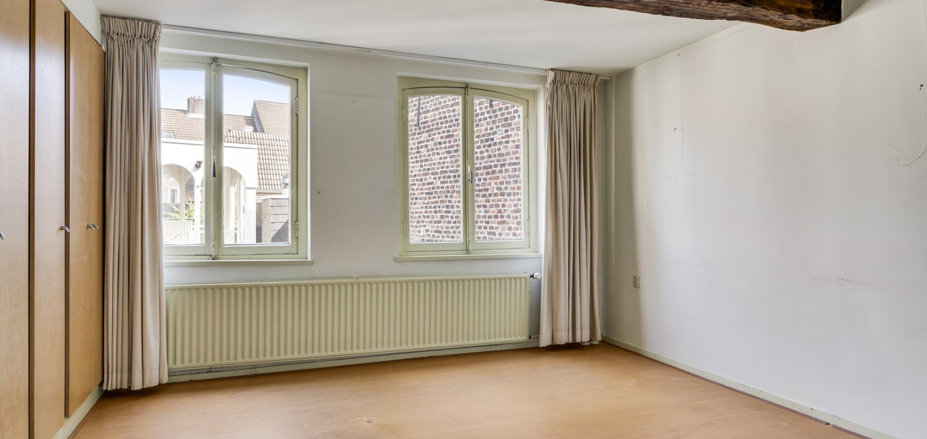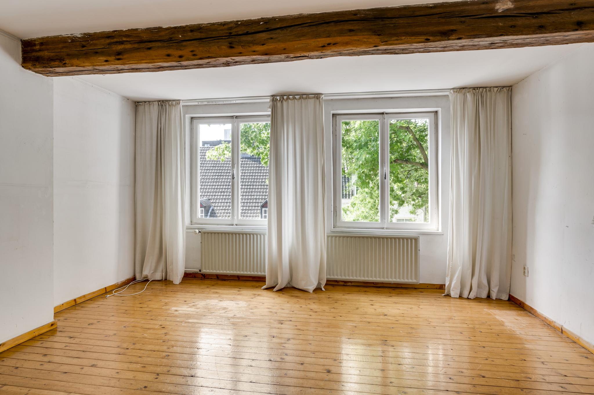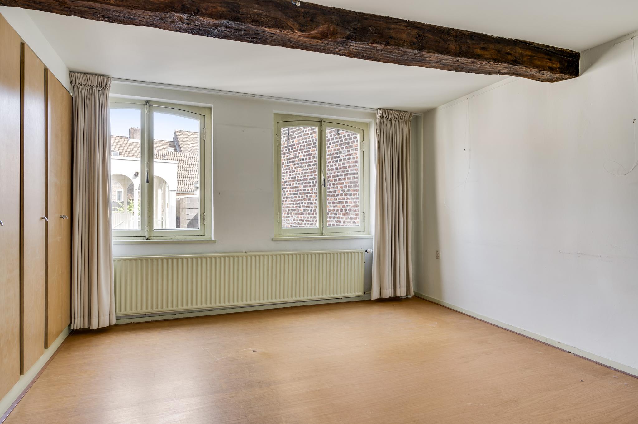 Het voorhuis is ingedeeld met een overloop en twee ruime slaapkamers. Slaapkamer II (ca. 4,17 x 4,52) biedt fraai uitzicht naar de Hoogbrugstraat en slaapkamer III (ca. 4,52 x 4,23) met op maat gemaakte kasten. Mooie elementen zijn de dikke, houten balken en de houten vloer in de kamer aan de voorzijde. In de andere kamer ligt er, onder het laminaat, ook een oude houten vloer.