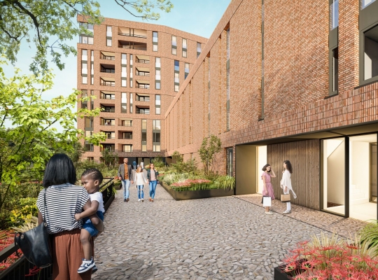 Aan het Geusseltpark en tussen het bestaande Cour Renoir en het Geusselt stadion, worden 3 nieuwe appartementengebouwen gerealiseerd.