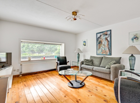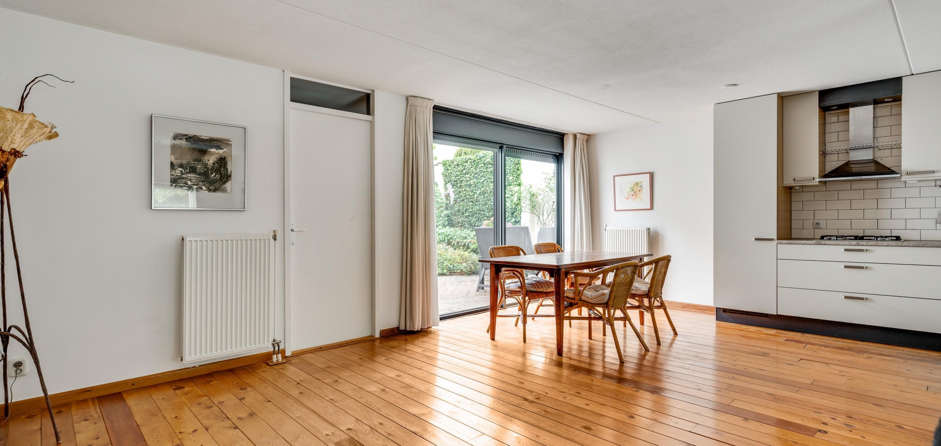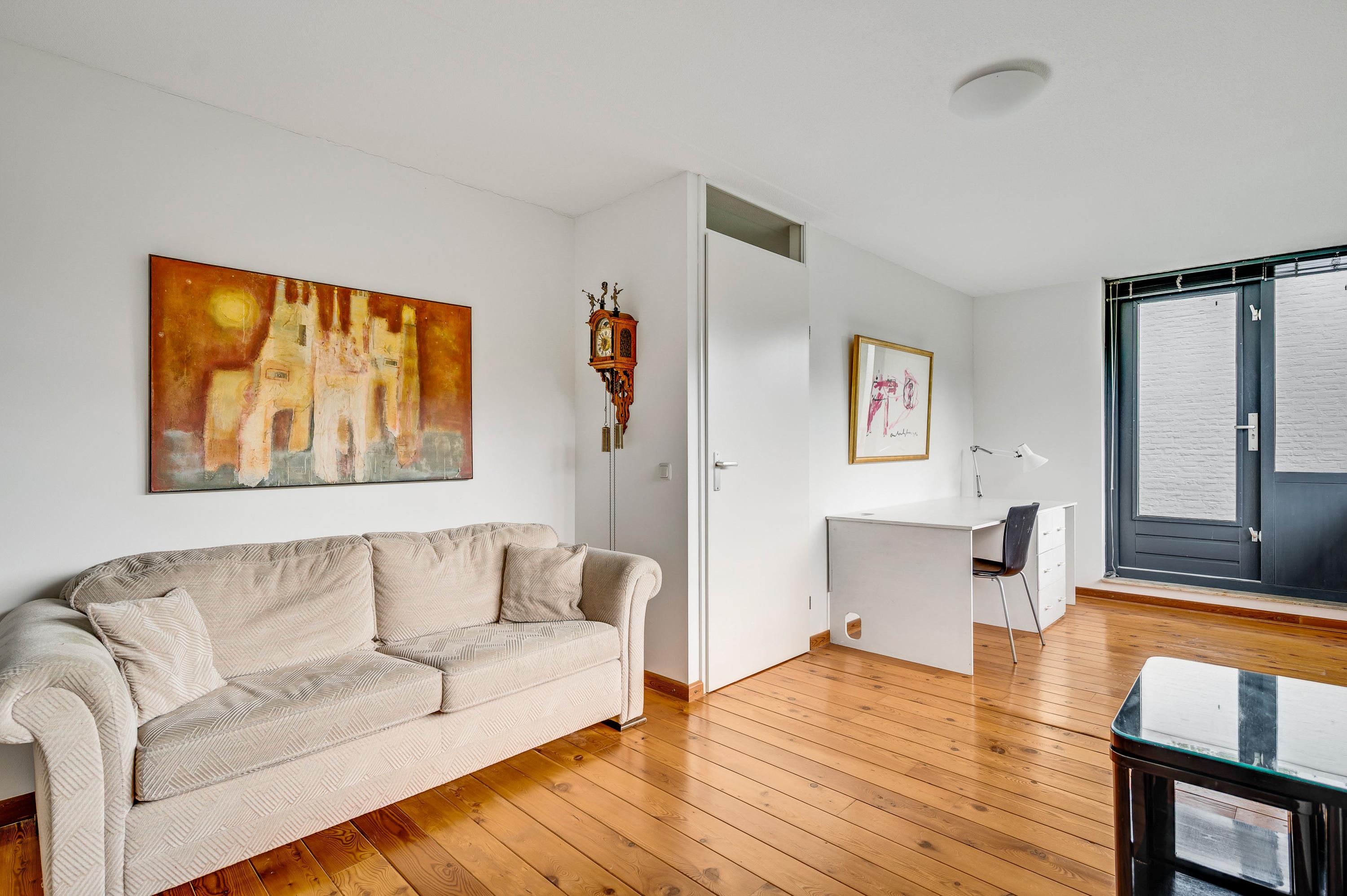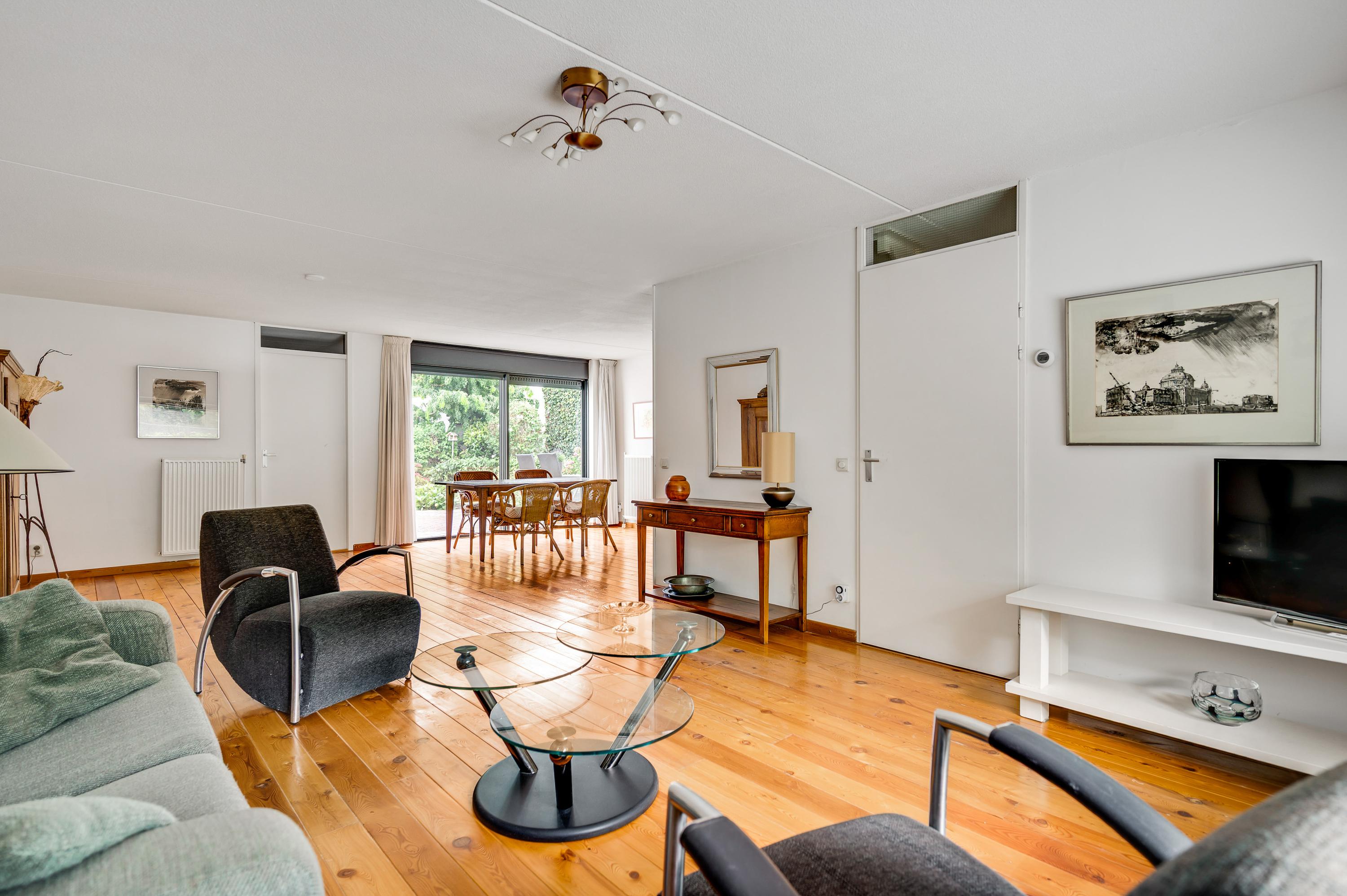 De woonkamer heeft, inclusief keuken, een oppervlakte van circa 45 m2 waardoor er genoeg plek is voor al uw meubels. Het zitgedeelte is aan de voorzijde, met prachtig uitzicht naar het groen, en in de keuken staat de eettafel. Een grote schuifpui zorgt voor een mooie verbinding met het terras in de achtertuin.
