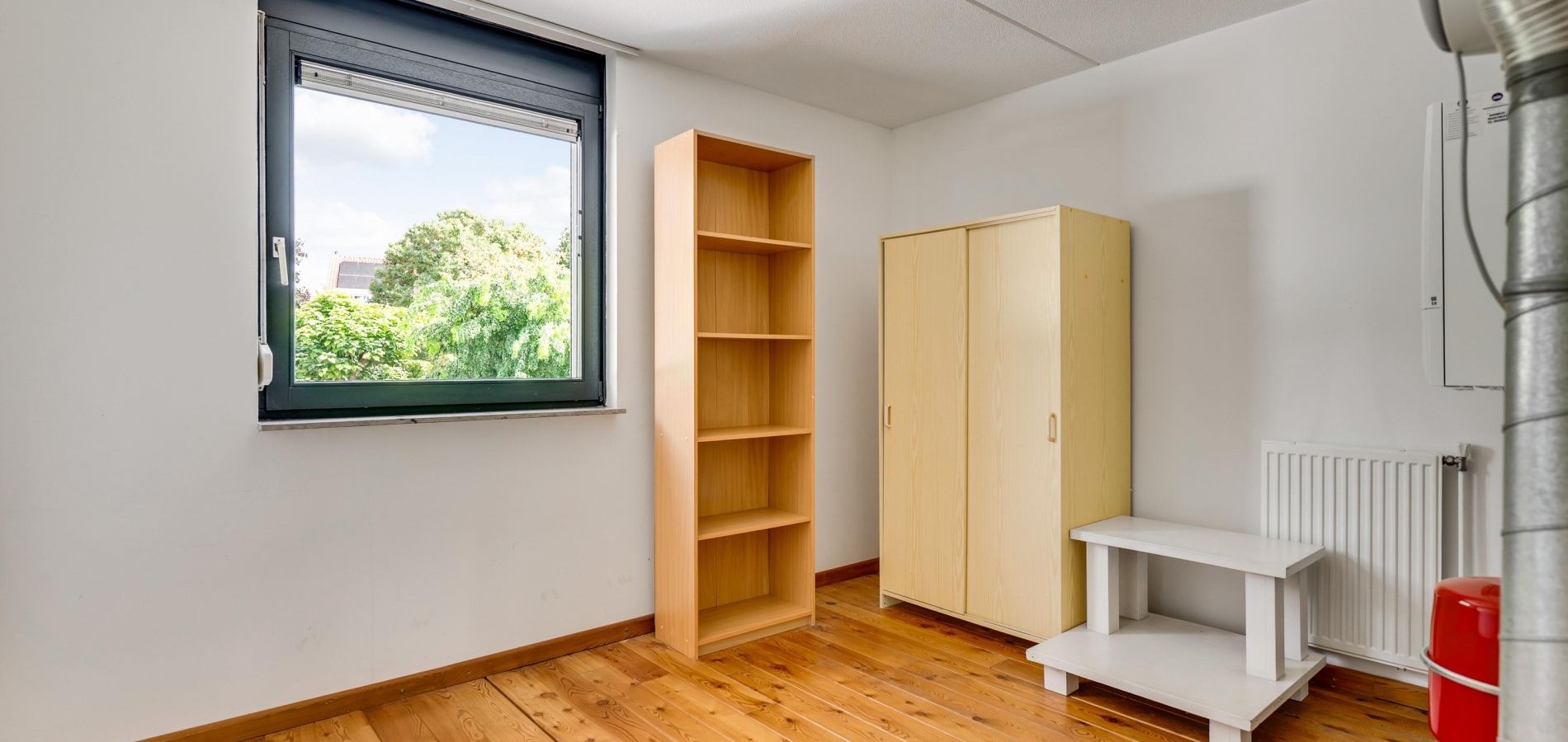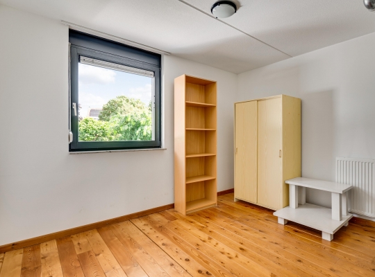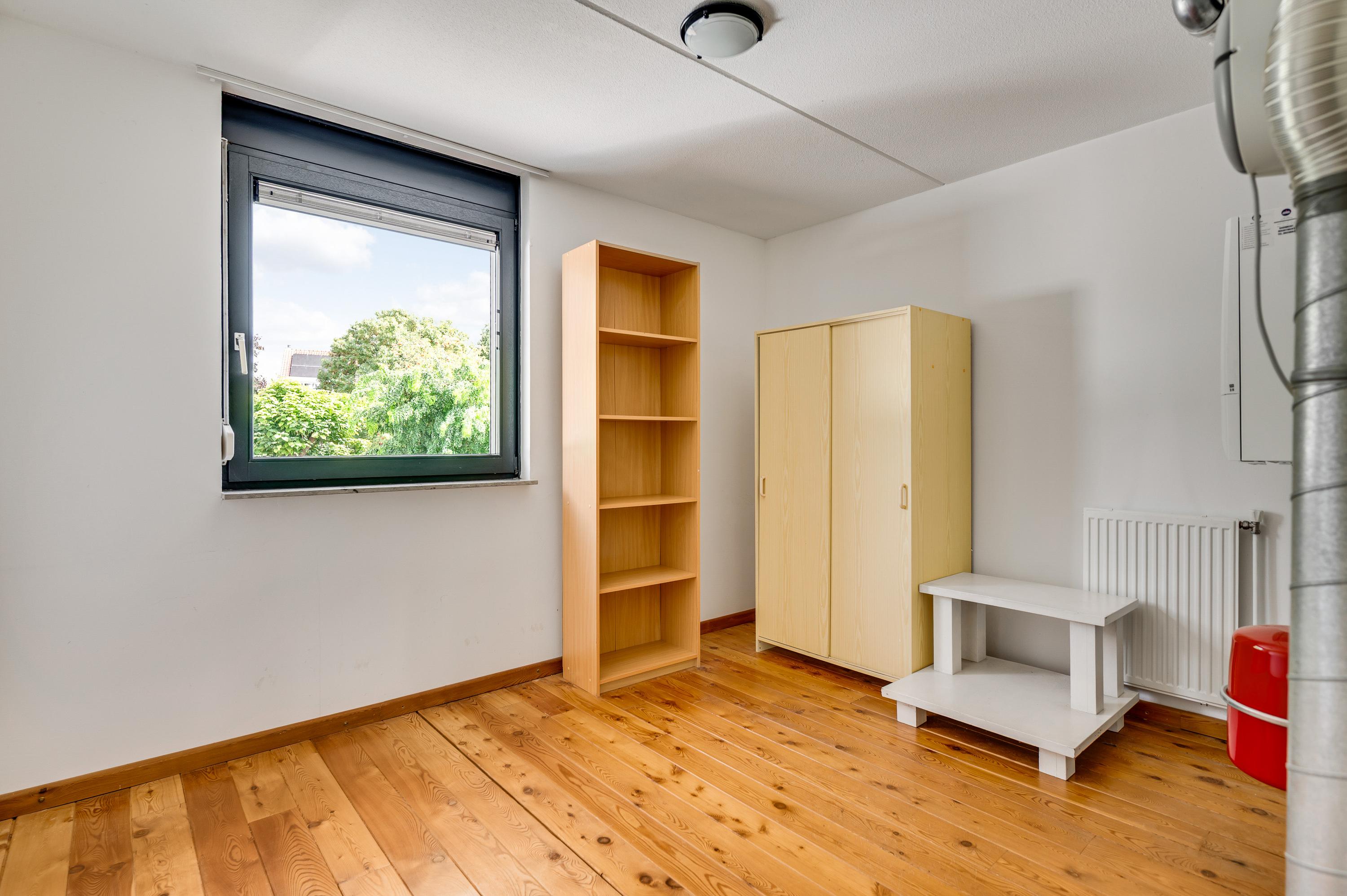 Slaapkamer III (circa 4,89 x 3,00) bevindt zich aan de achterzijde, net als een ruime berging (circa 3,75 x 2,82). In de berging hangt de HR-ketel (Remeha, 2024, eigendom), en het raam in de buitengevel maakt het mogelijk om deze kamer als werkkamer of hobbyruimte te gebruiken.