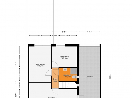 Drie slaapkamers en een badkamer op de eerste verdieping