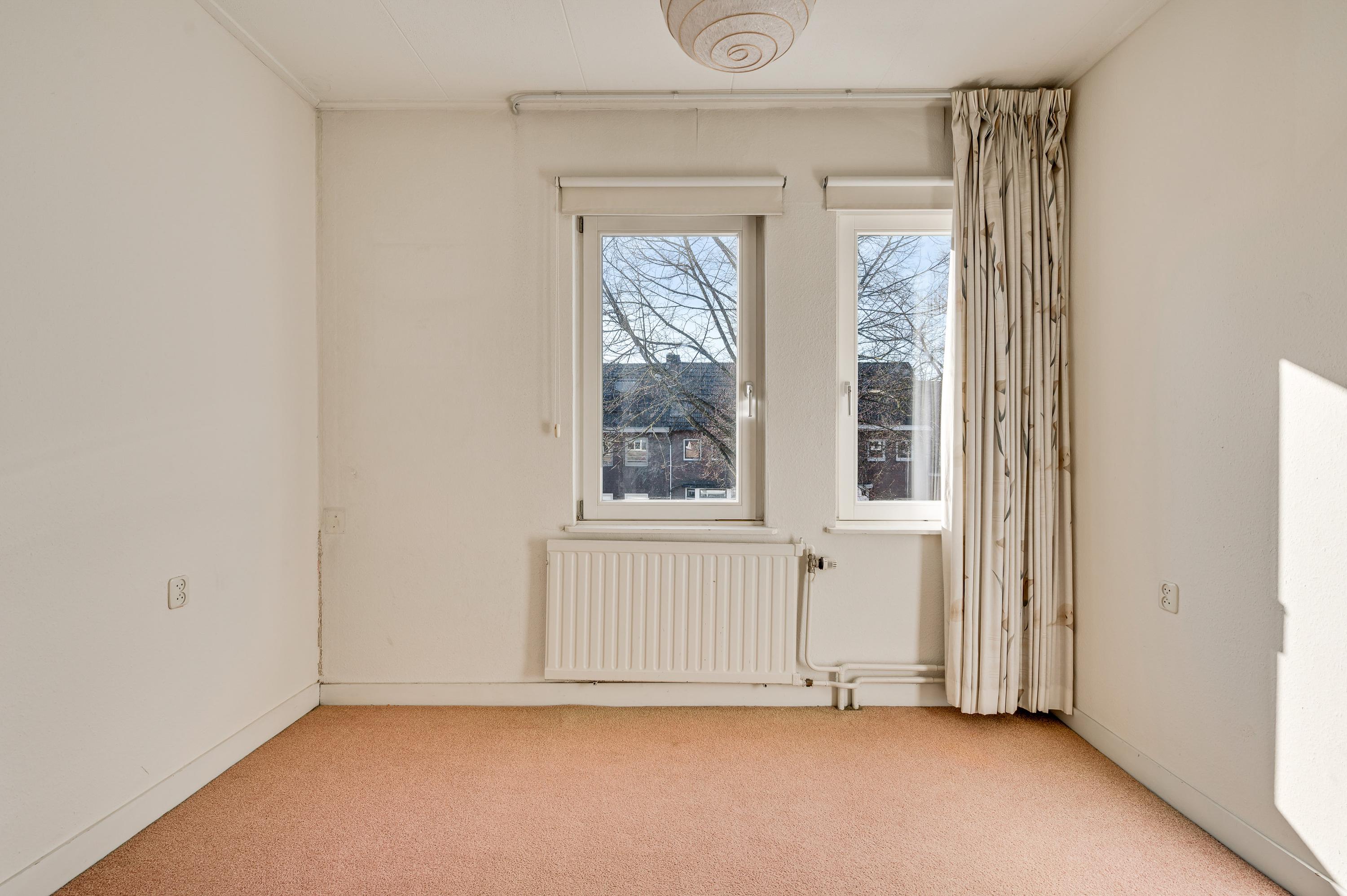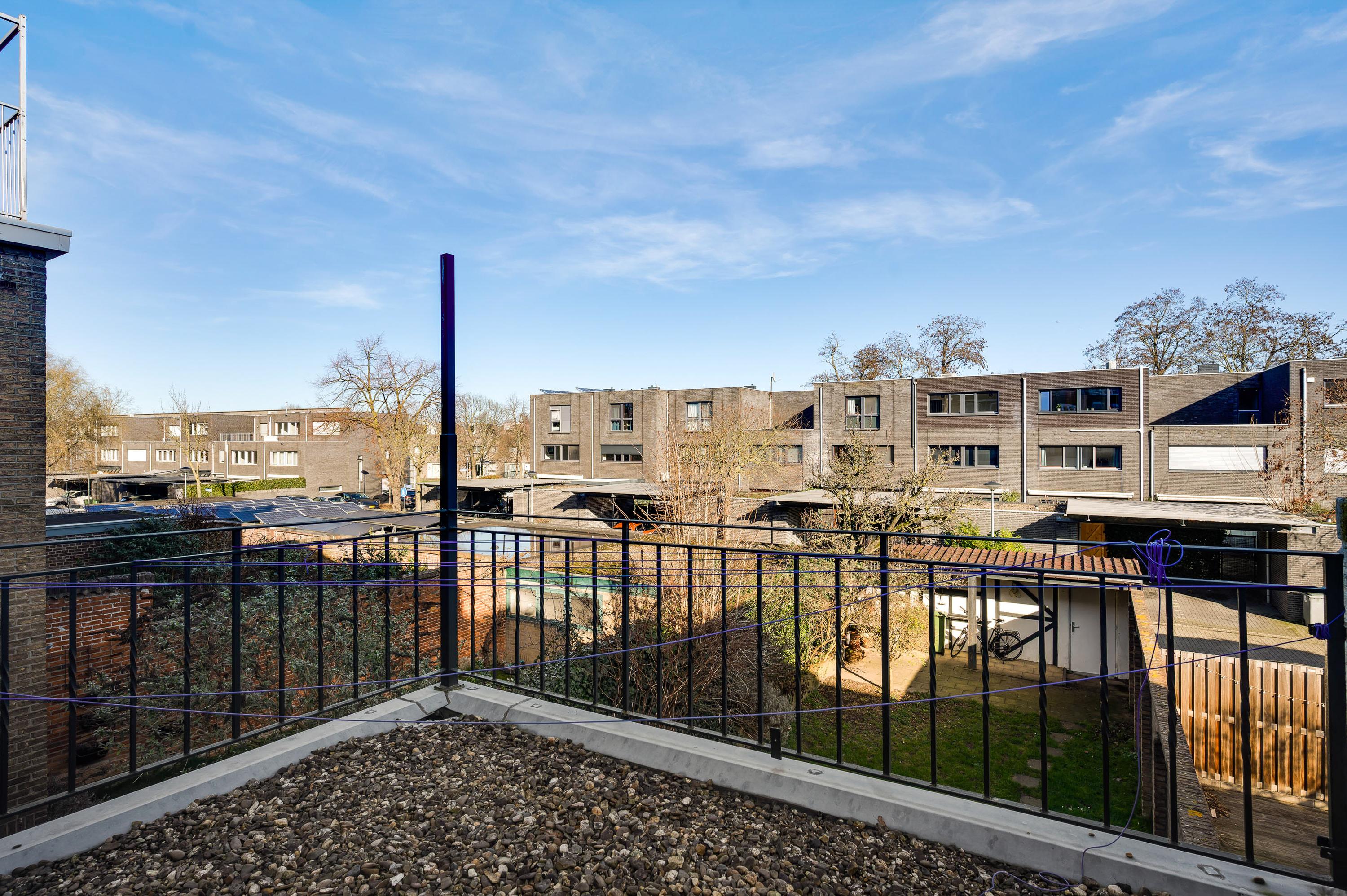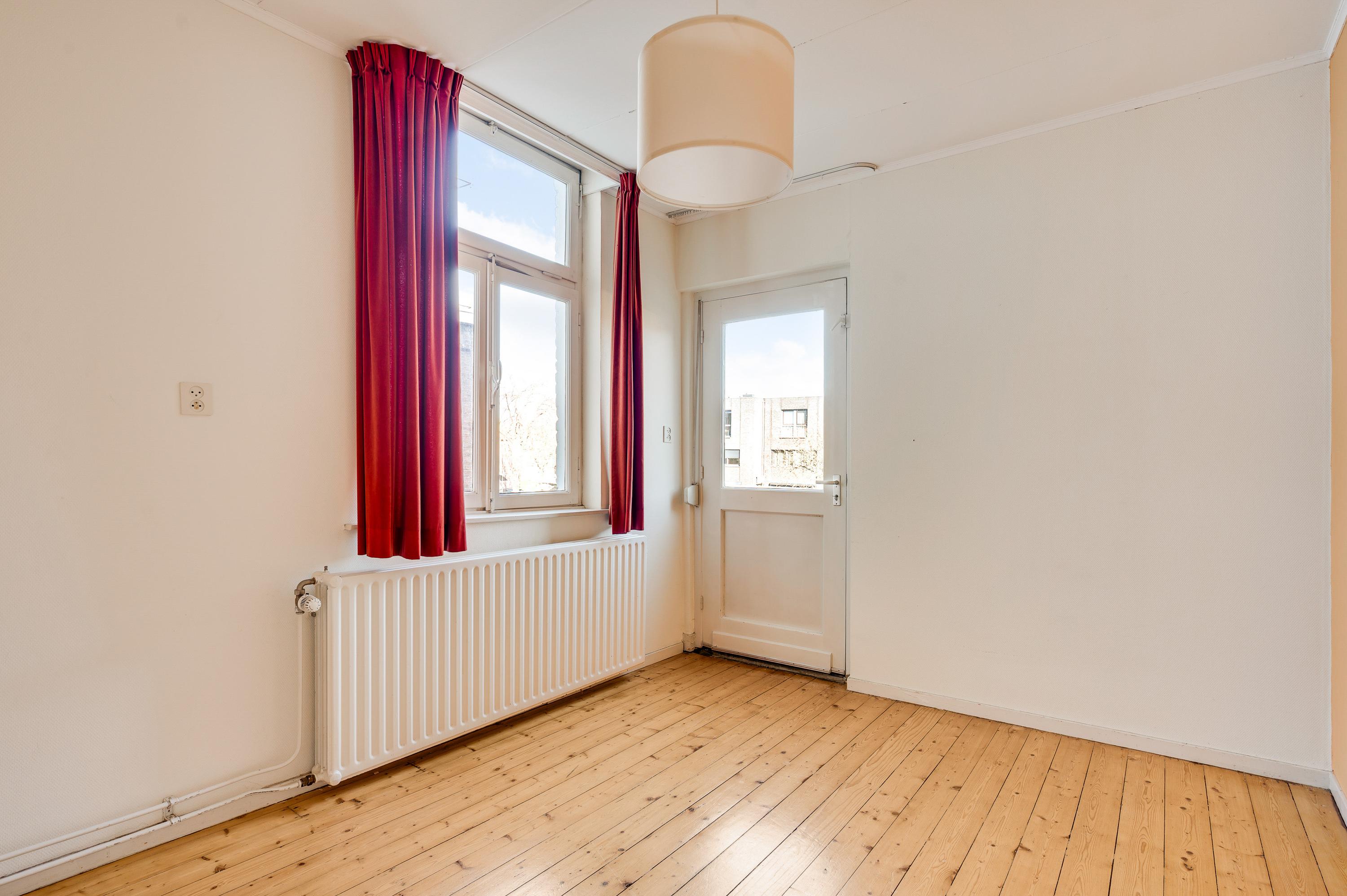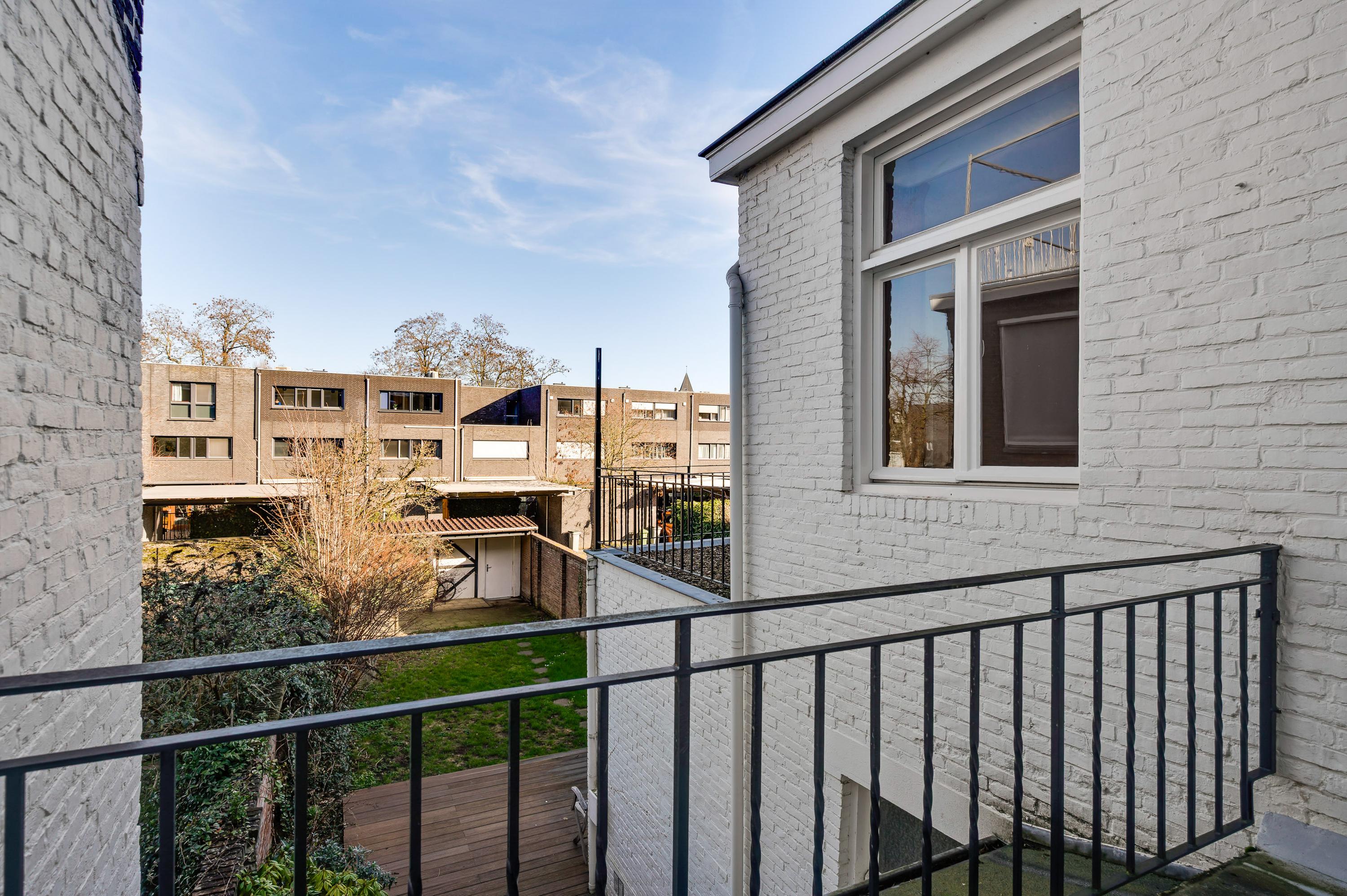 Slaapkamer II (circa 3,96 x 4,09) heeft openslaande deuren naar een balkon en vanuit slaapkamer III (circa 3,71 x 2,83) is er toegang tot een dakterras. Slaapkamer II heeft, net als slaapkamer I, twee inbouwkasten. Verder ziet u glas-in loodramen, houten vloeren en paneeldeuren.