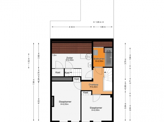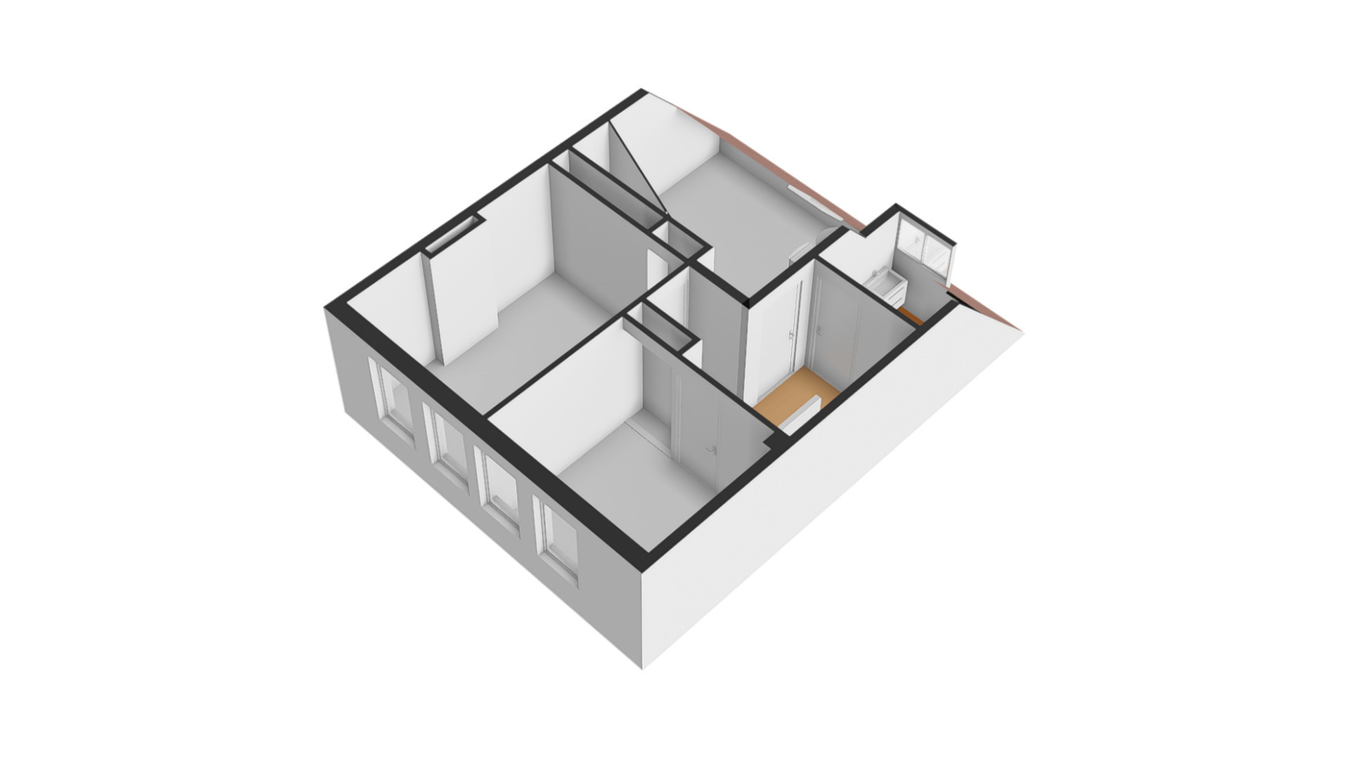 Op deze verdieping zijn nog twee slaapkamers, een badkamer en een zolder. Slaapkamer IV (circa 4,03 x 2,95) en slaapkamer V (circa 3,15 x 2,64) bevinden zich beiden aan de voorzijde, zonder ruimteverlies van een schuin dak.
