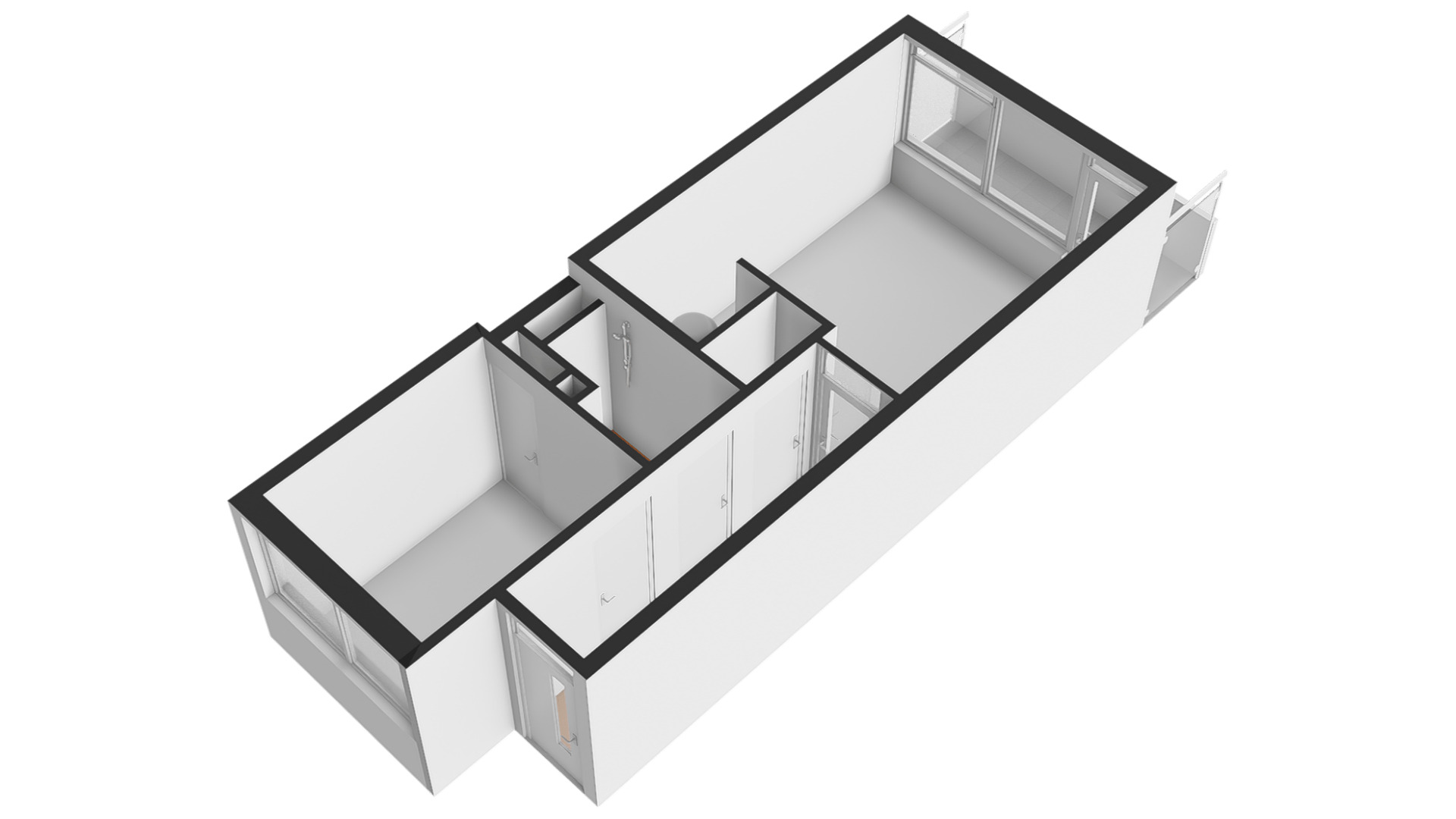 De slaapkamer (circa 2,95 x 2,47) met inbouwkast is aan de koele noordkant. Je kunt niet alleen een raam openzetten, maar er is ook een ventilatierooster voor een aangenaam woonklimaat in de slaapkamer. Naast de slaapkamer is de badkamer met een douche, toilet en wastafel.