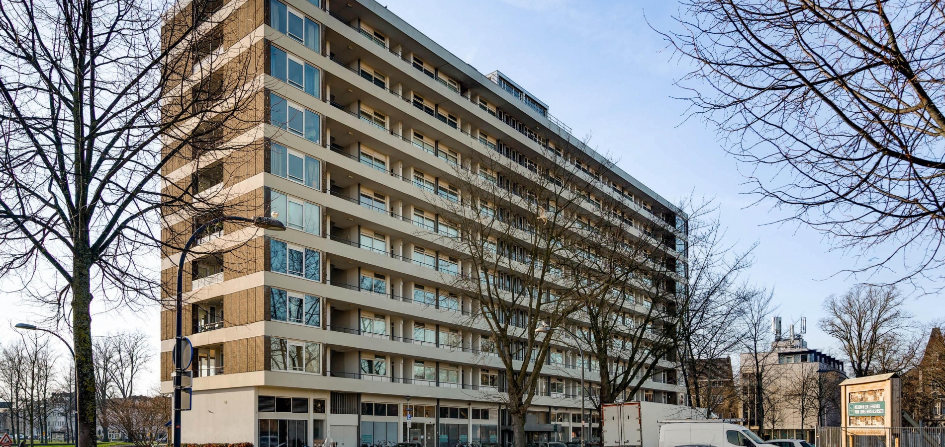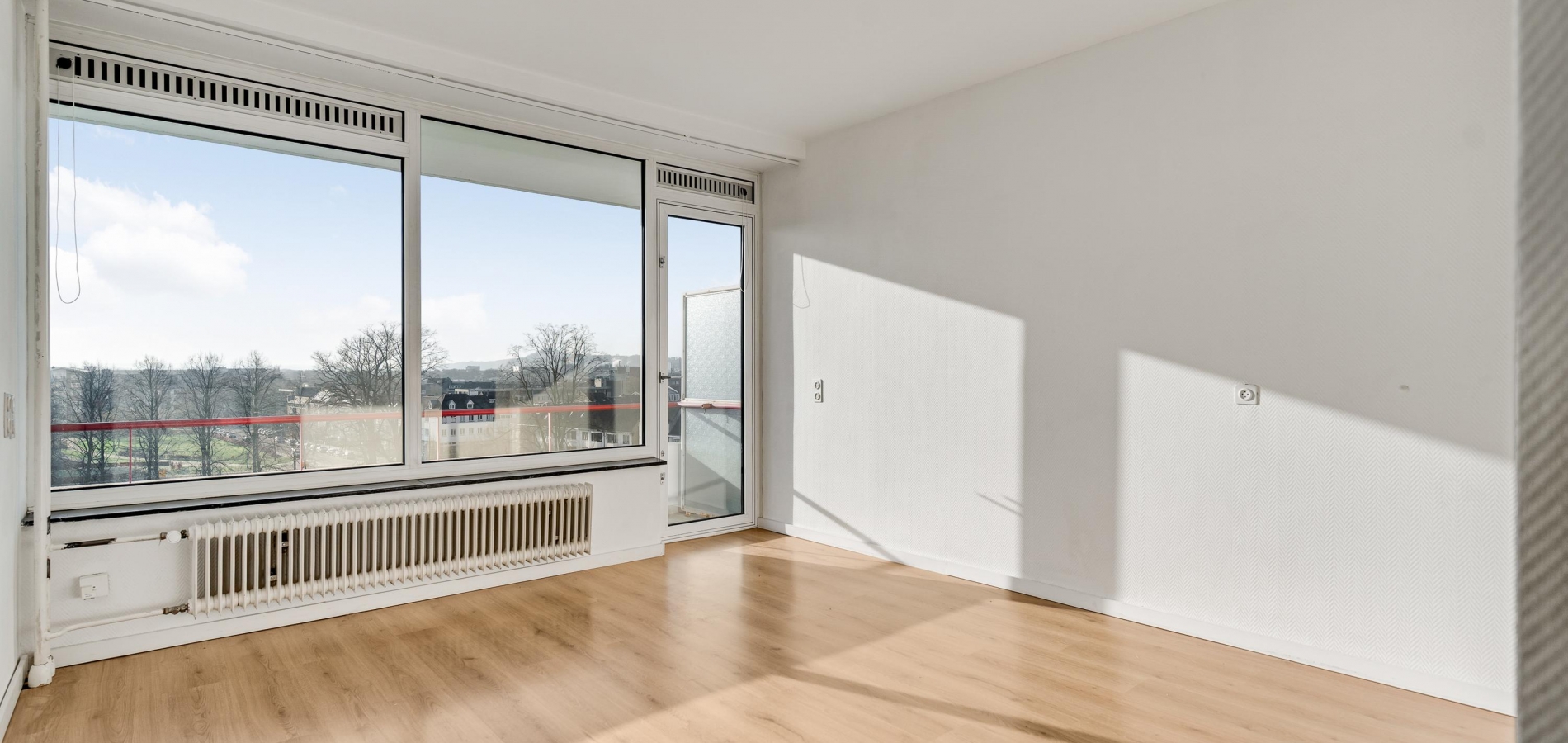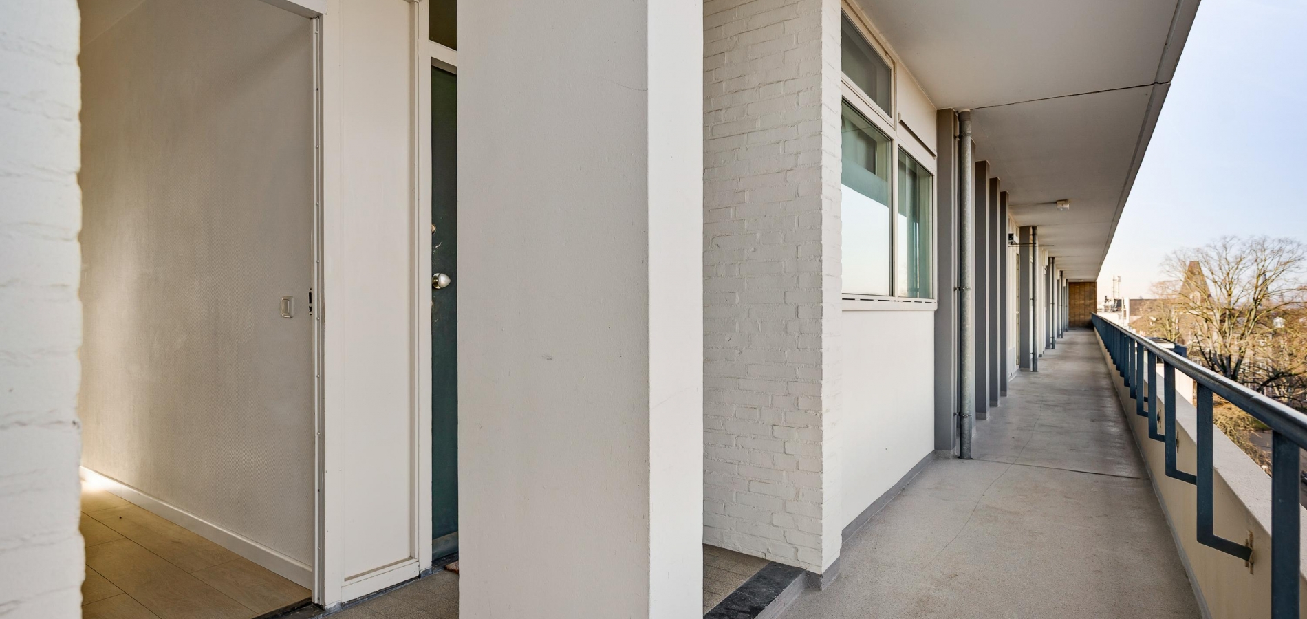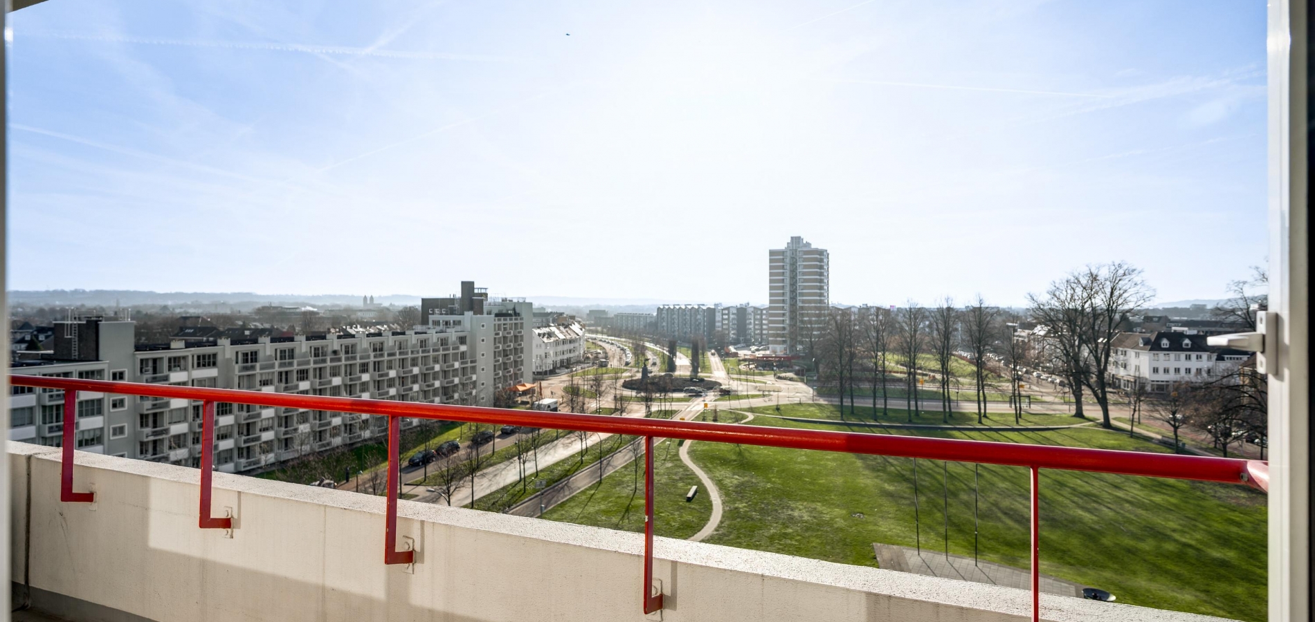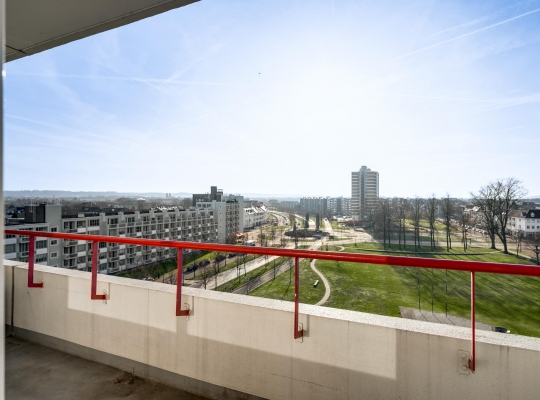 U kunt zich voorstellen dat het uitzicht vanaf deze hoogte erg fraai is. Niet alleen vanuit het appartement, maar ook vanaf de galerij. U ziet zelfs de contouren van het Heuvelland!