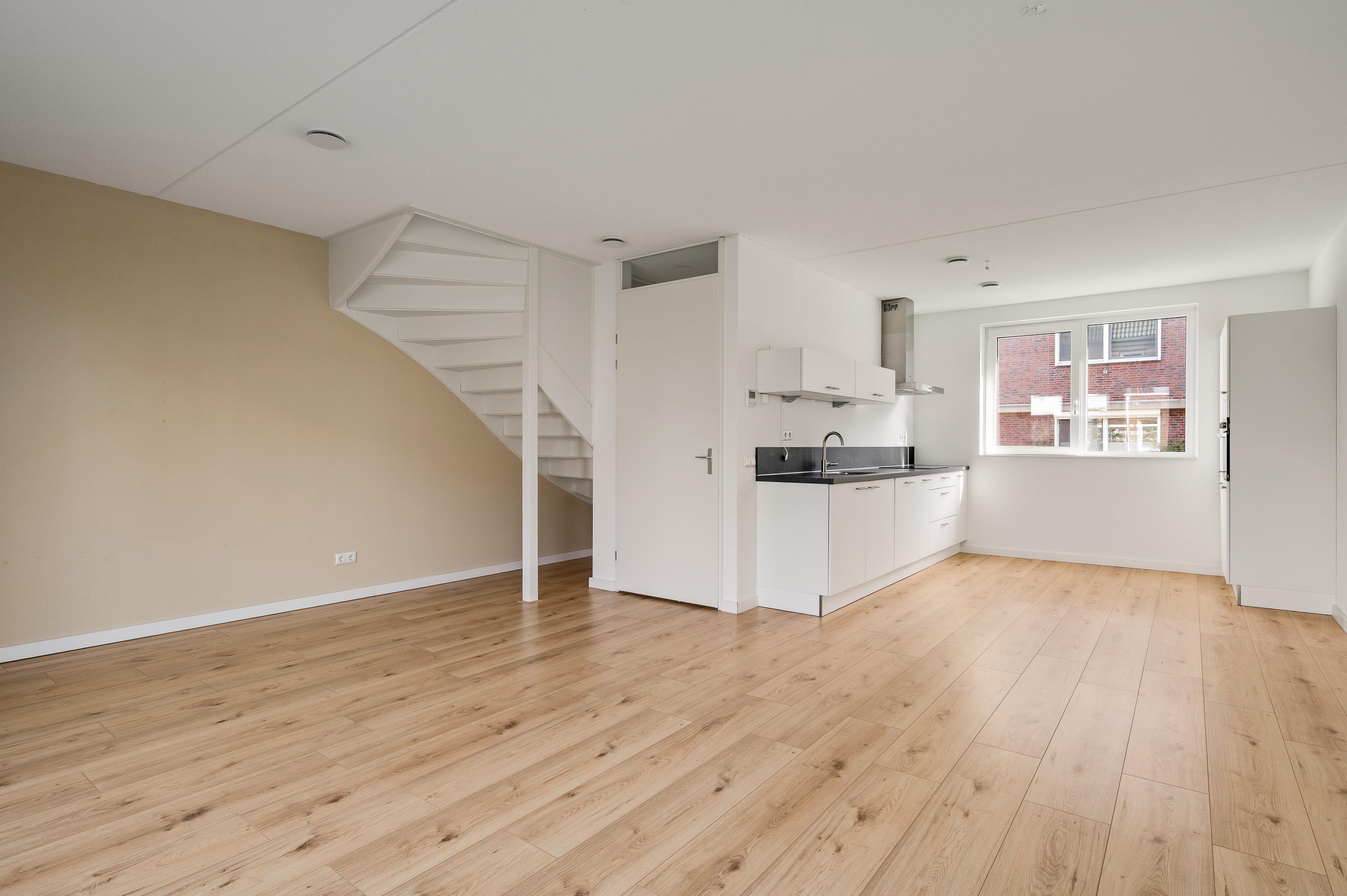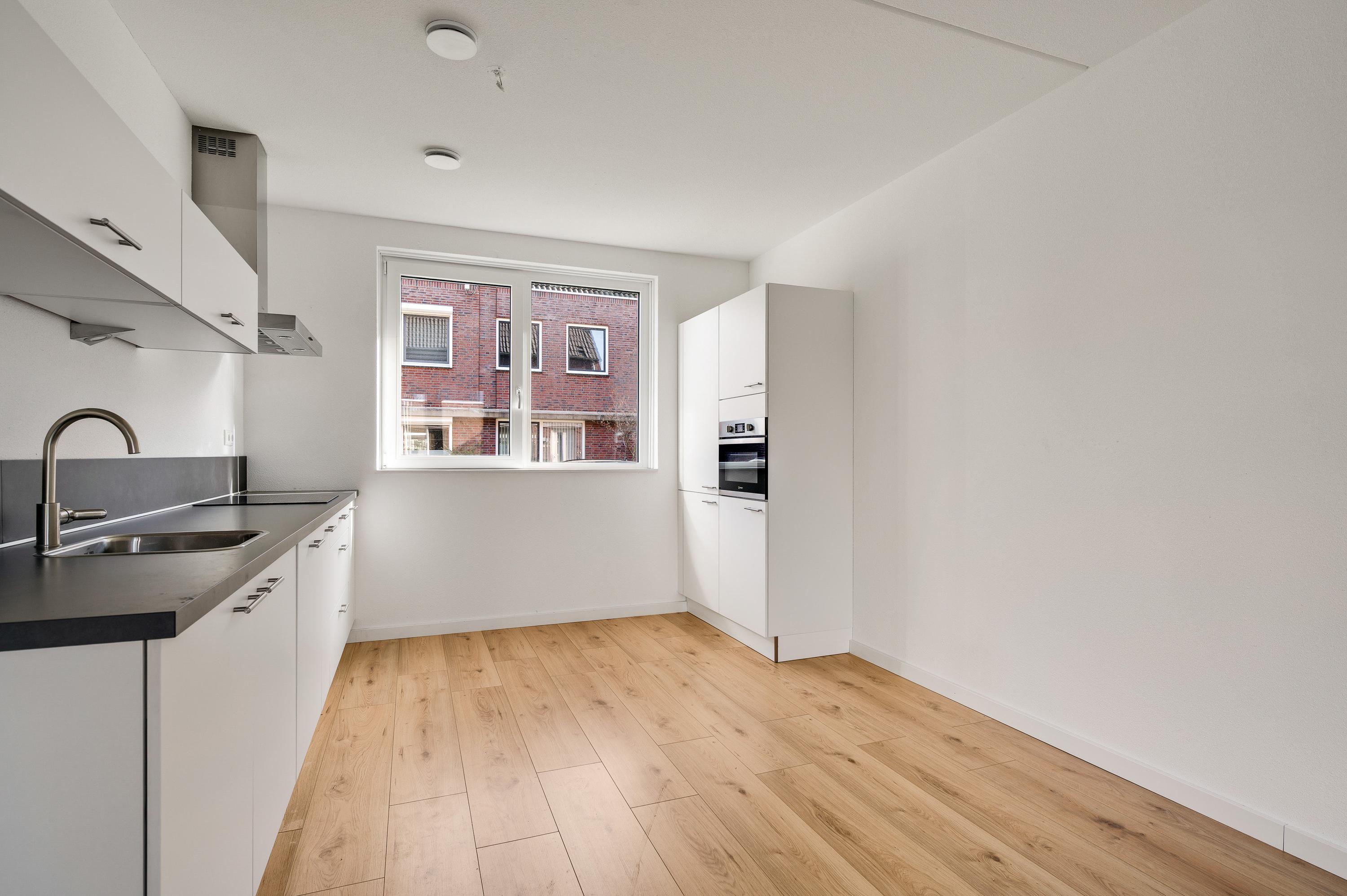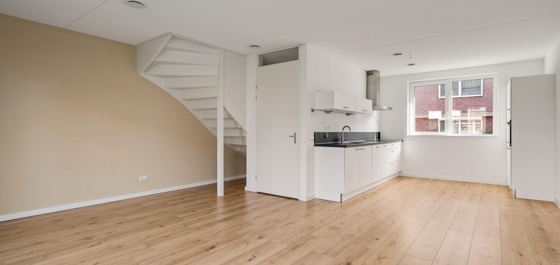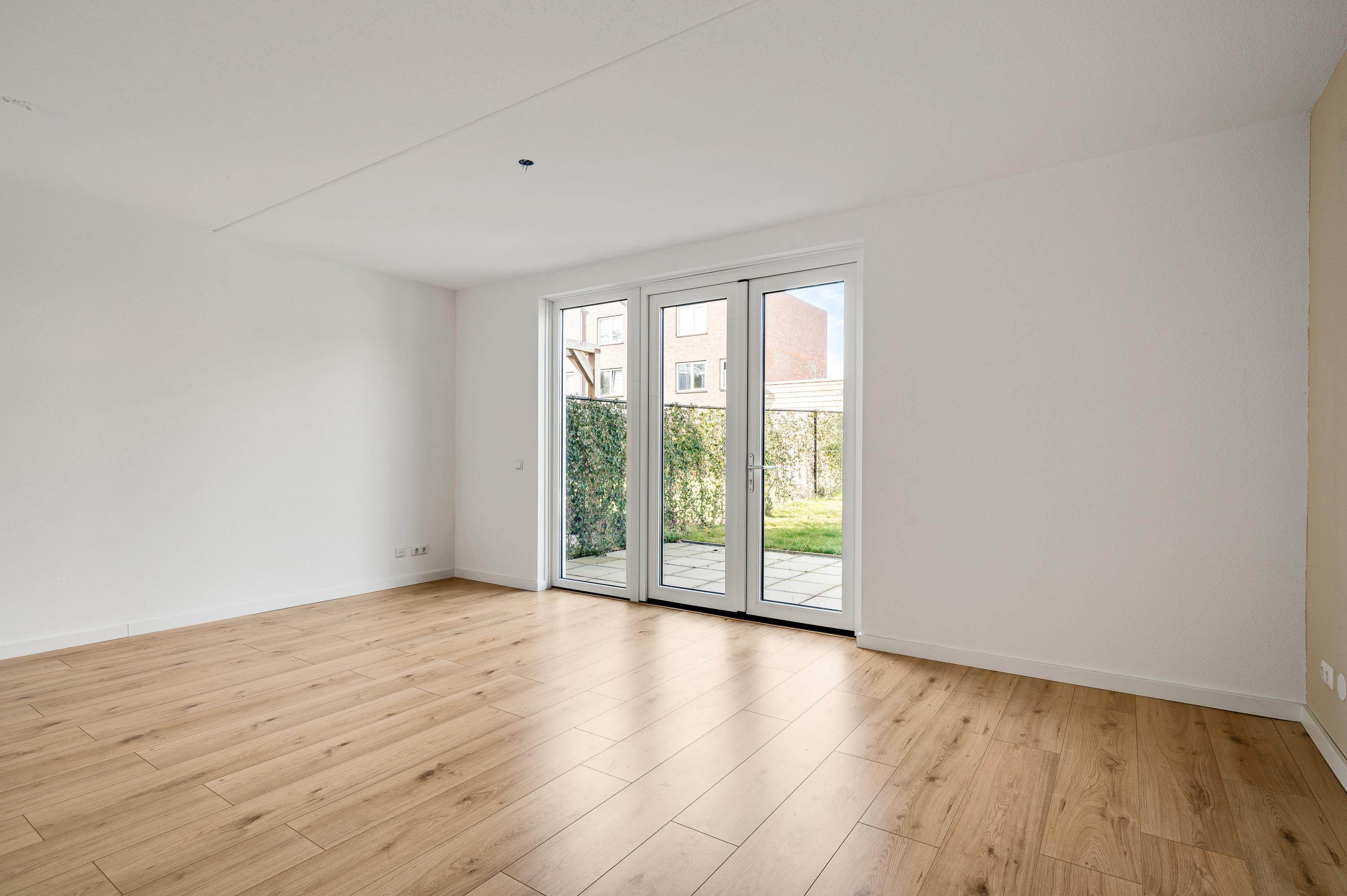 In de woonkamer (circa 5,76 x 4,57) ligt, net als in de hal en keuken, een mooie laminaatvloer met vloerverwarming. Rustige, warme kleuren bepalen de sfeer en openslaande deuren geven toegang tot de tuin. In de ruime keuken (circa 3,53 x 3,30) staat een lichte opstelling, met een hoge kastenwand en een antracietkleurig aanrechtblad. Alle benodigde apparatuur is ingebouwd: een inductie kookplaat, afzuigkap, combi-oven, vaatwasser en een koelkast.