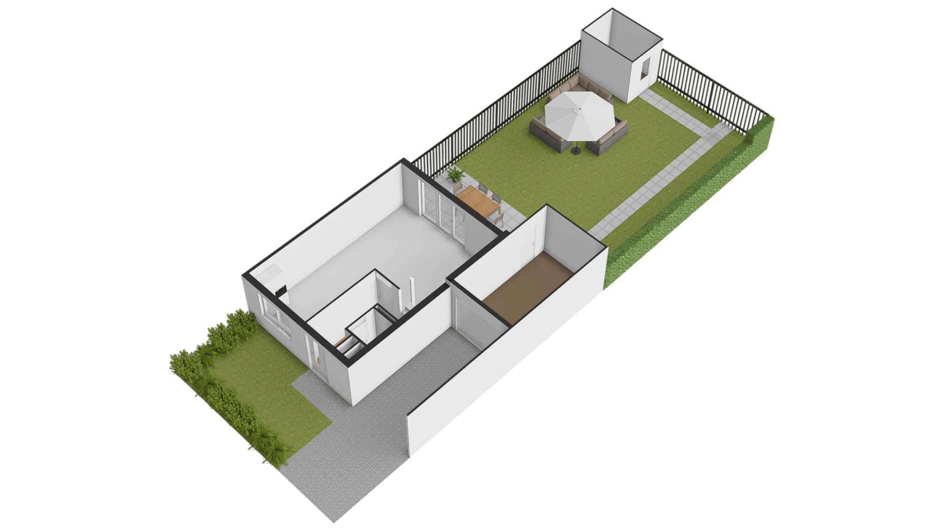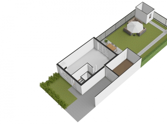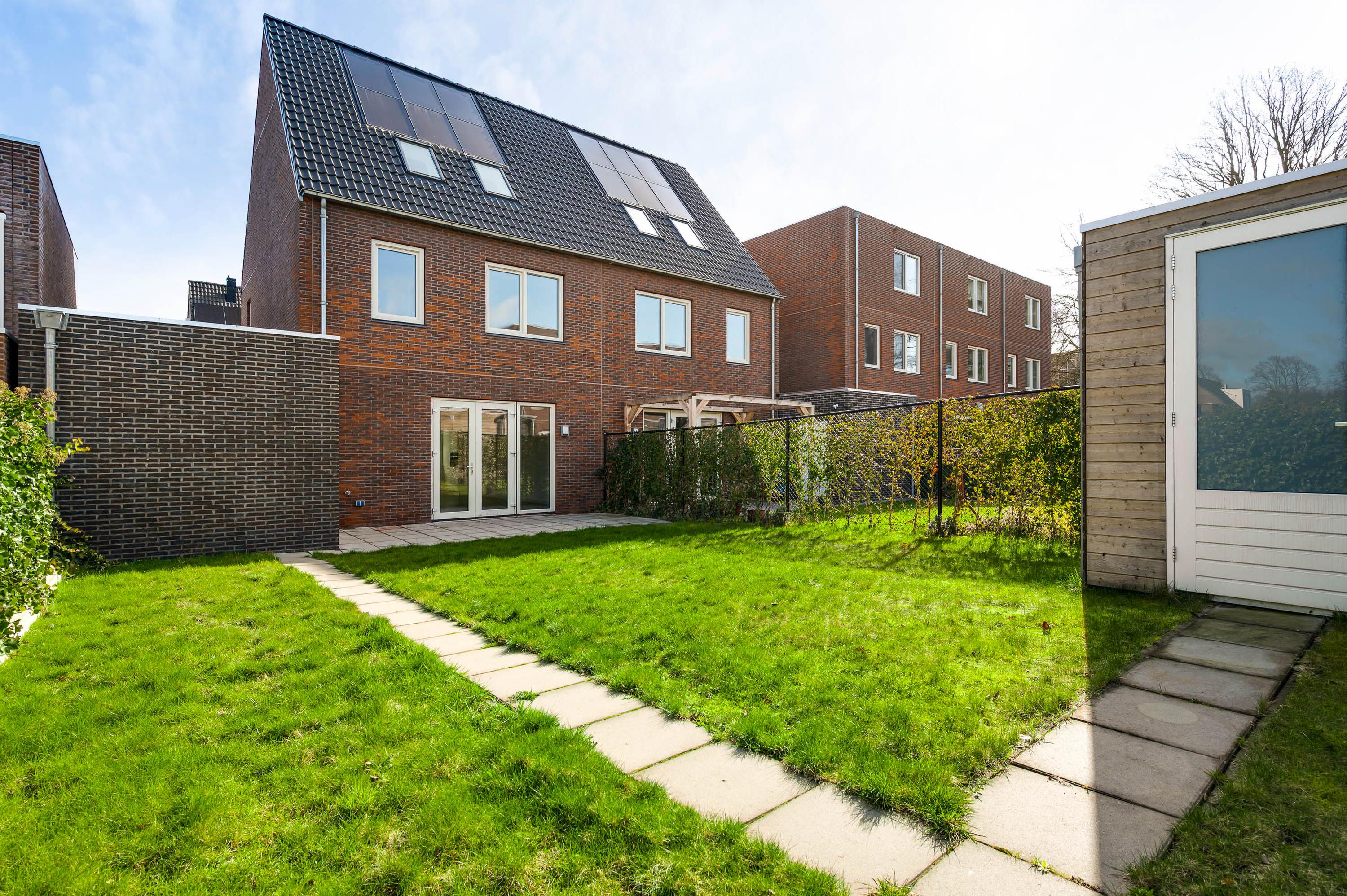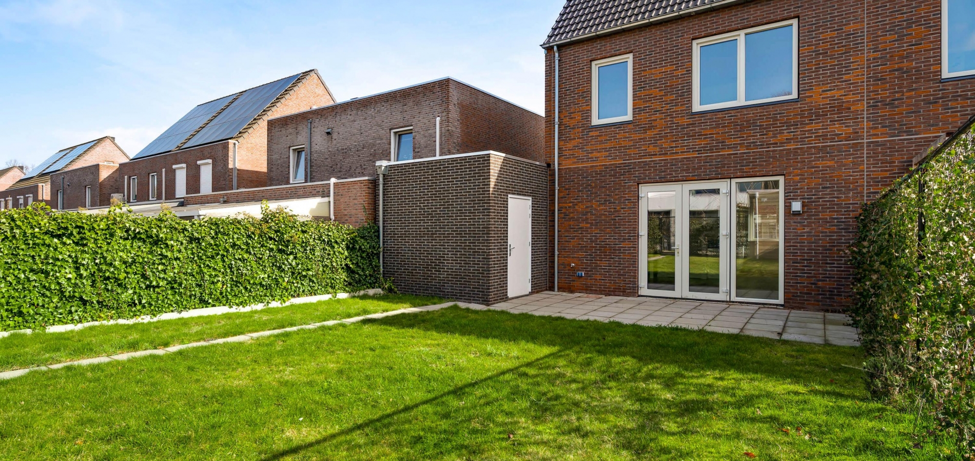 Deze woning heeft een ruime achtertuin op het westen, met een groot terras en gras. De erfafscheiding is in de afgelopen jaren flink gegroeid en er is een achterom. In de hoek van de tuin staat een berging (circa 2,89 x 2,00), voor het tuingereedschap en andere spullen.