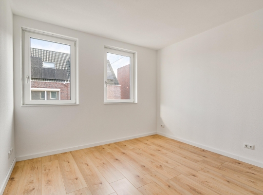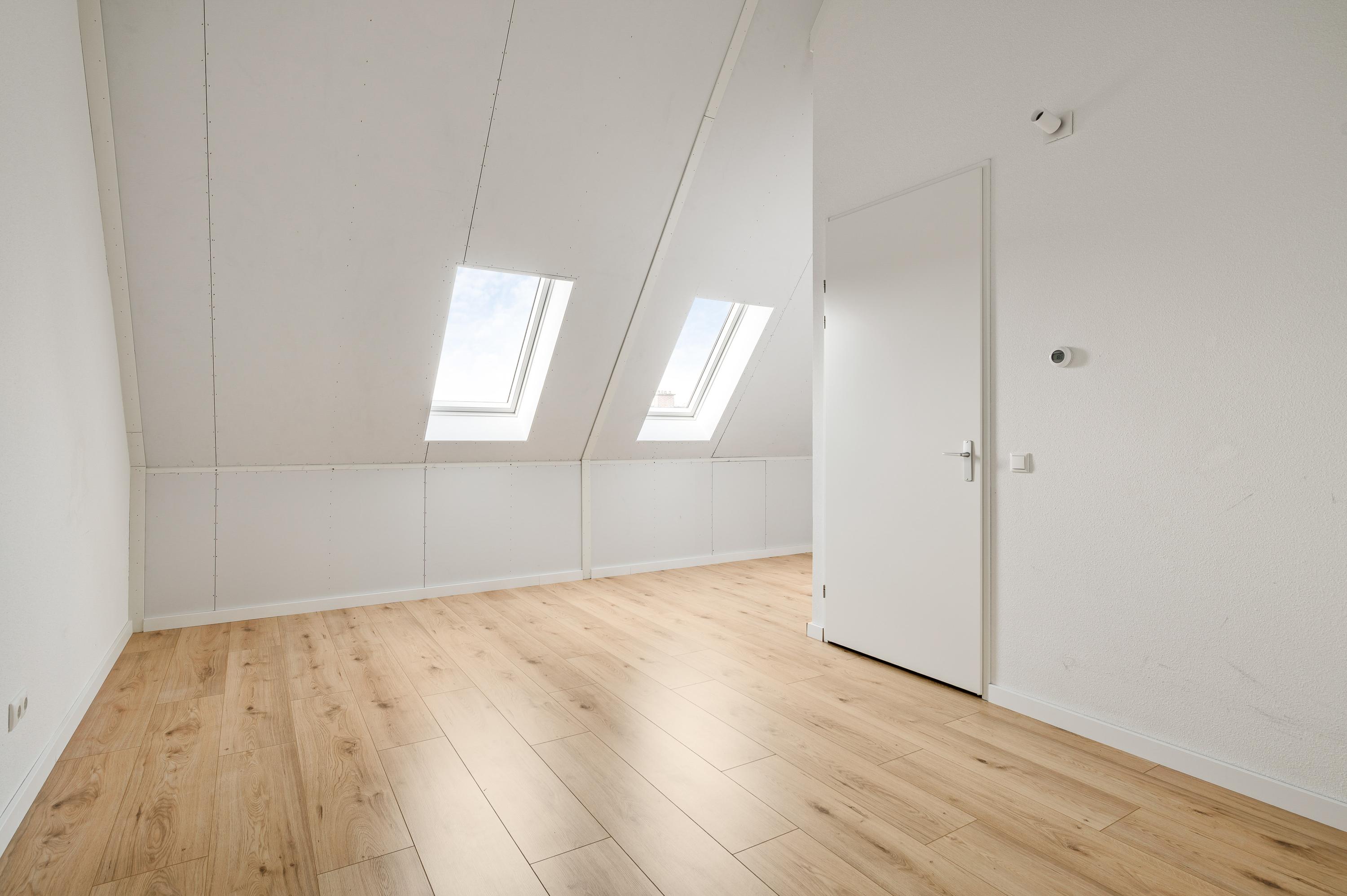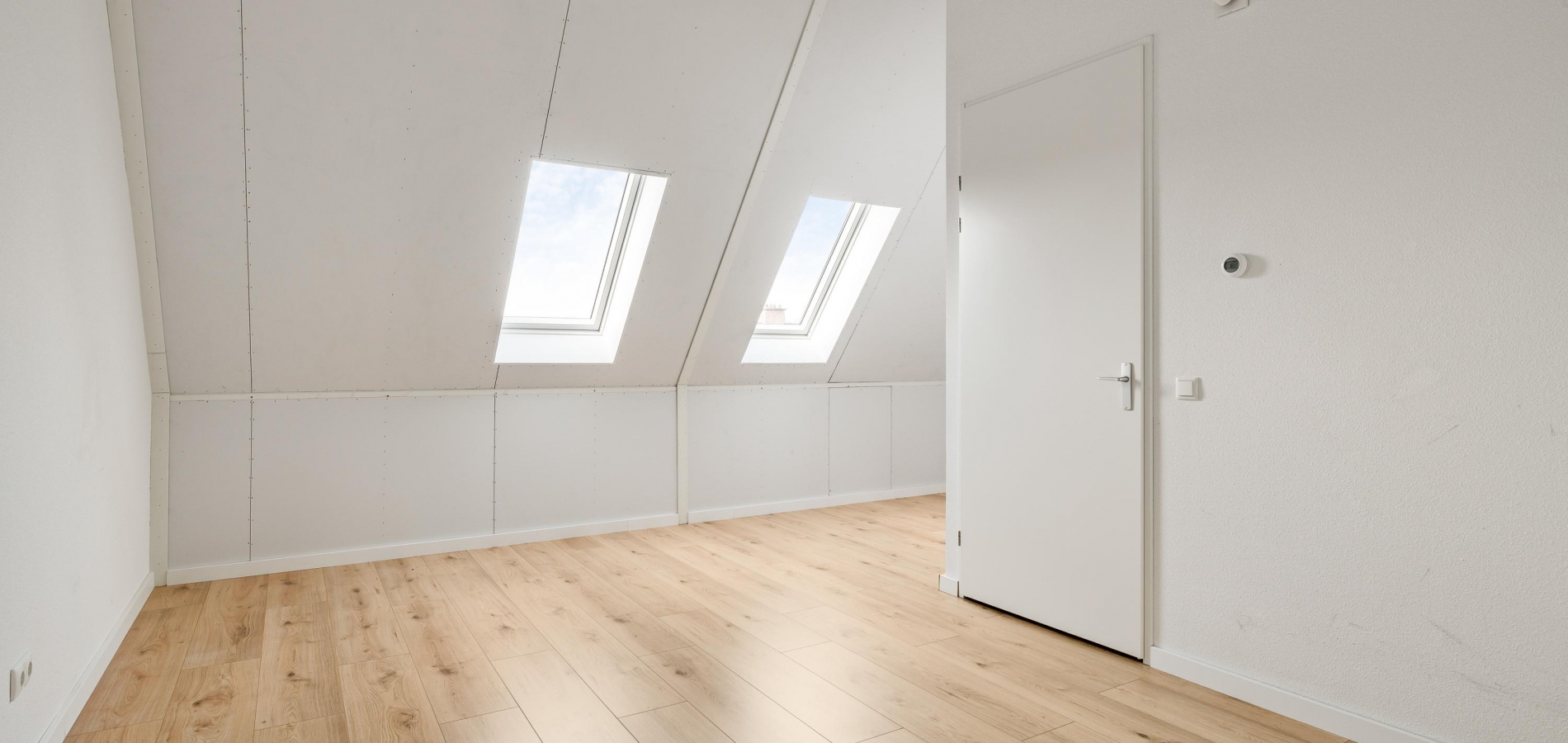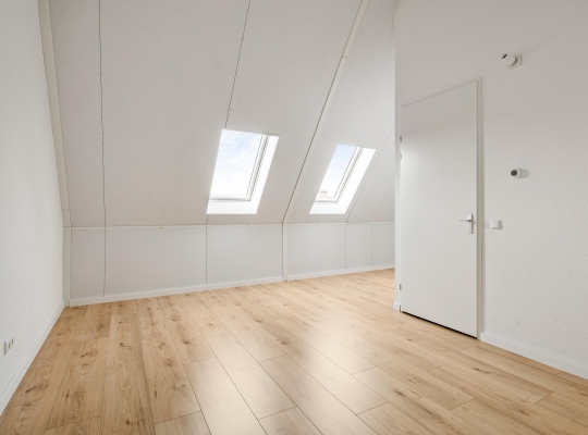 Slaapkamer IV (circa 25 m2) bevindt zich op de tweede verdieping. Twee dakramen zorgen voor veel lichtinval, er ligt laminaat op de vloer en de nok heeft een hoogte van bijna vijf meter. Deze hoogte biedt de mogelijkheid om een bergvliering te realiseren, om de beschikbare ruimte nog beter te benutten.