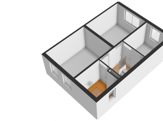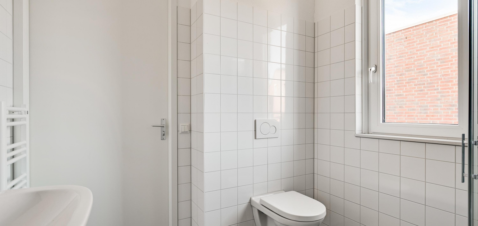 Slaapkamer III ( circa 4,06 x 3,32), de grootste van de drie, bevindt zich aan de voorzijde. Dit geldt ook voor de badkamer (circa 2,74 x 2,28) met een douche, toilet en een wastafel. Het merendeel van de wanden is betegeld in een lichte kleur, en de glazen wand met schuifdeuren maakt de douche optisch groter.