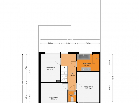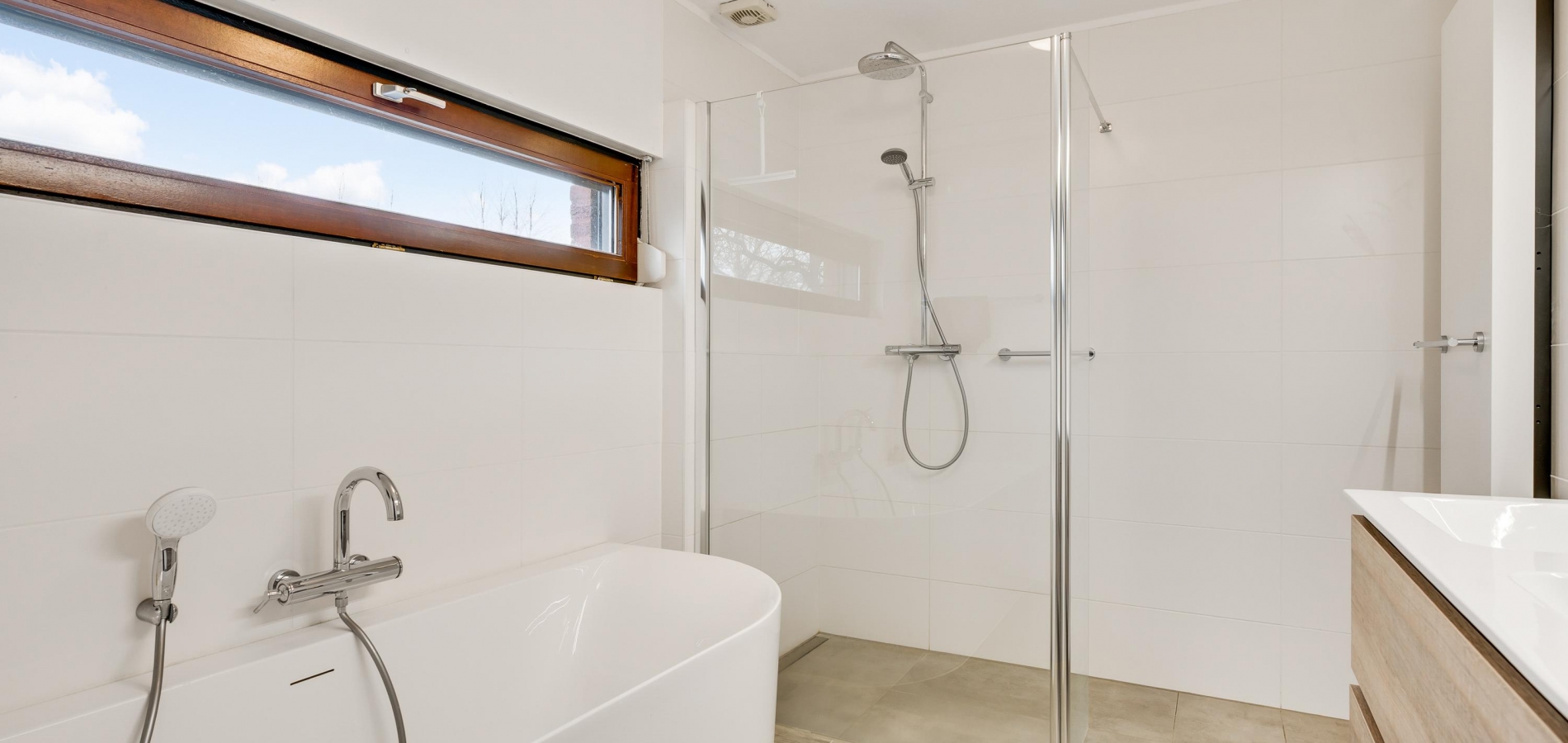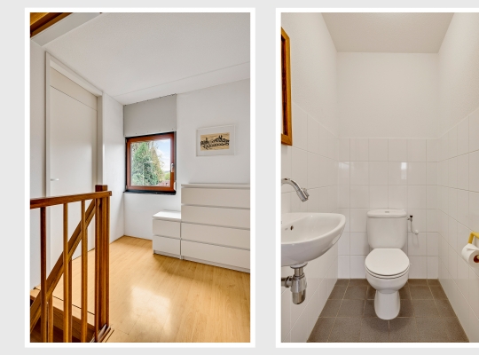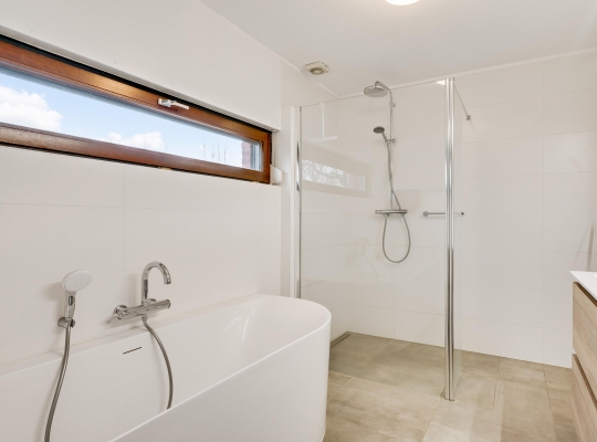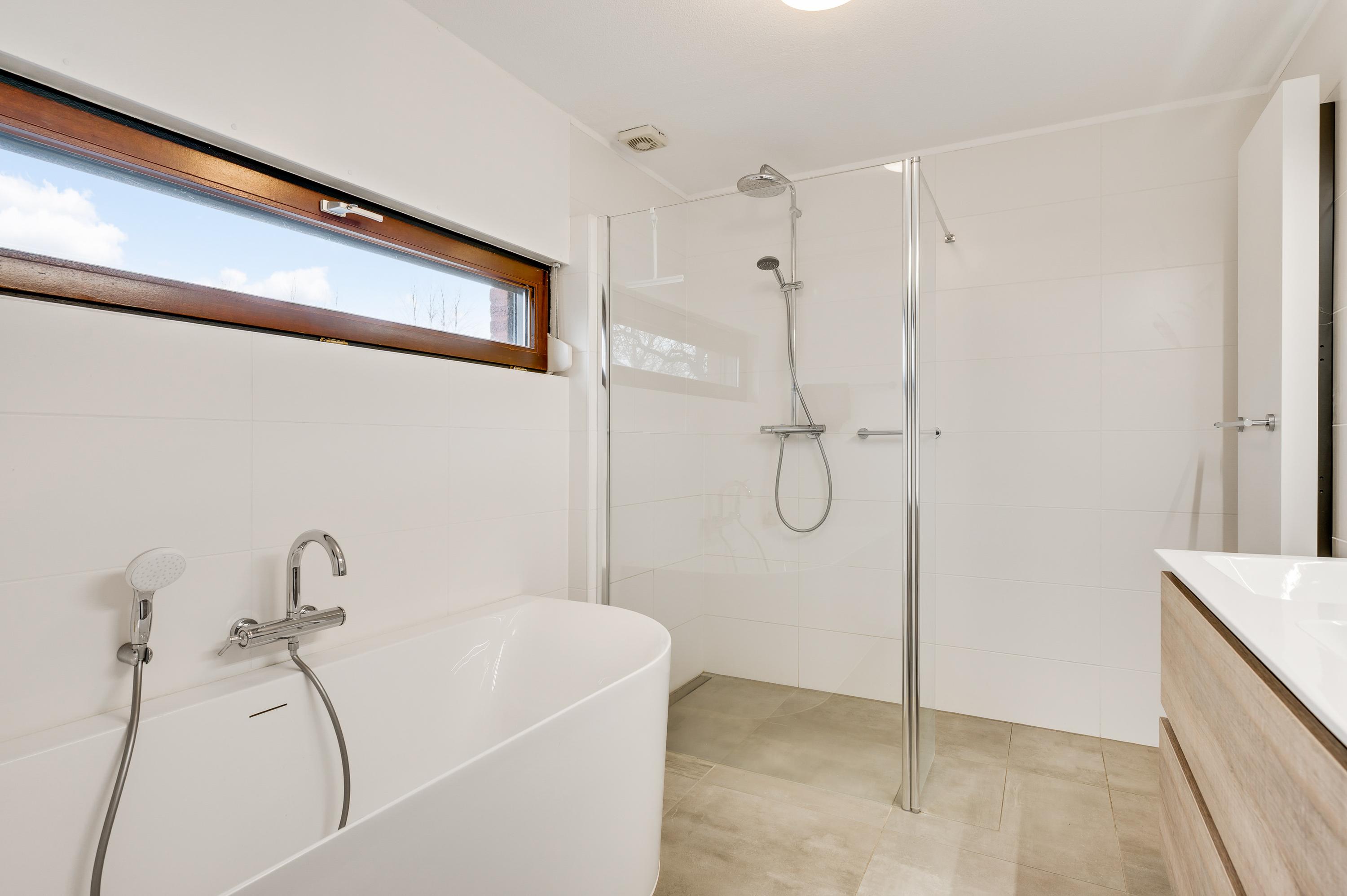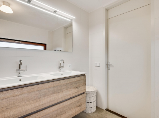 Vanaf de lichte overloop heeft u toegang tot drie slaapkamers, de badkamer en een separate toiletruimte. De in 2022 vernieuwde badkamer (circa 3,06 x 2,29) is ingedeeld met een ligbad, inloopdouche en een tweepersoons badmeubel. Fraaie details zijn de kranen, designradiator en de spiegel met verlichting.