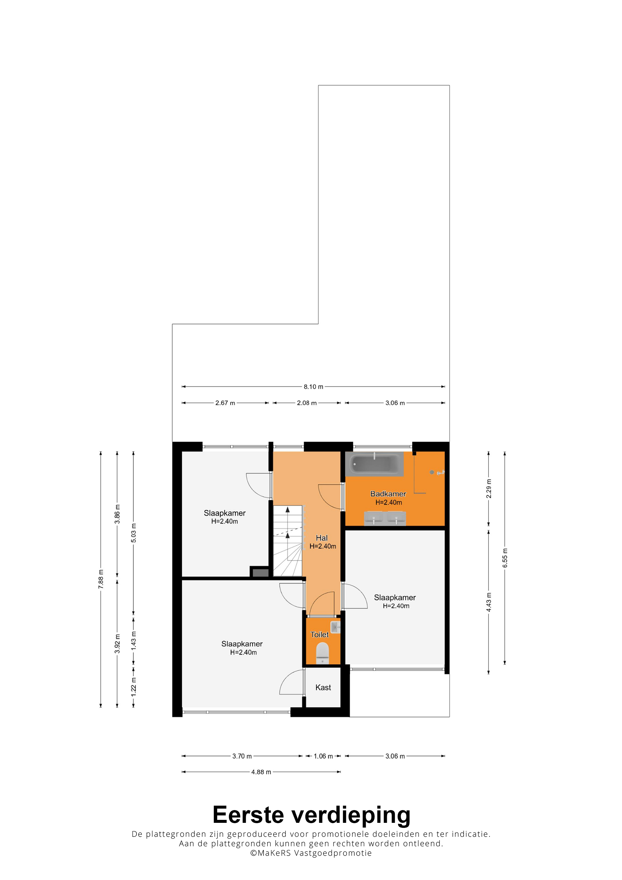 Slaapkamer I (circa 3,70 x 3,92) met inbouwkast en slaapkamer II (circa 4,43 x 3,06) zijn aan de voorzijde van de woning, met mooi uitzicht op het groene Maartveld. Aan de achterzijde is slaapkamer III (circa 3,86 x 2,67), perfect te gebruiken als kinderkamer of werkkamer.