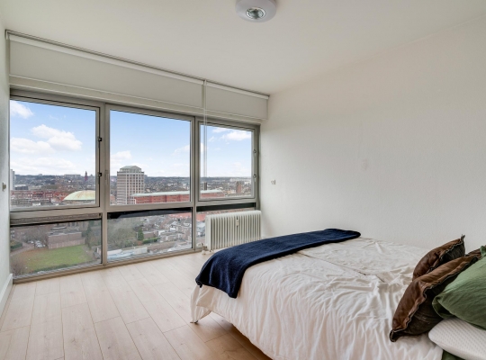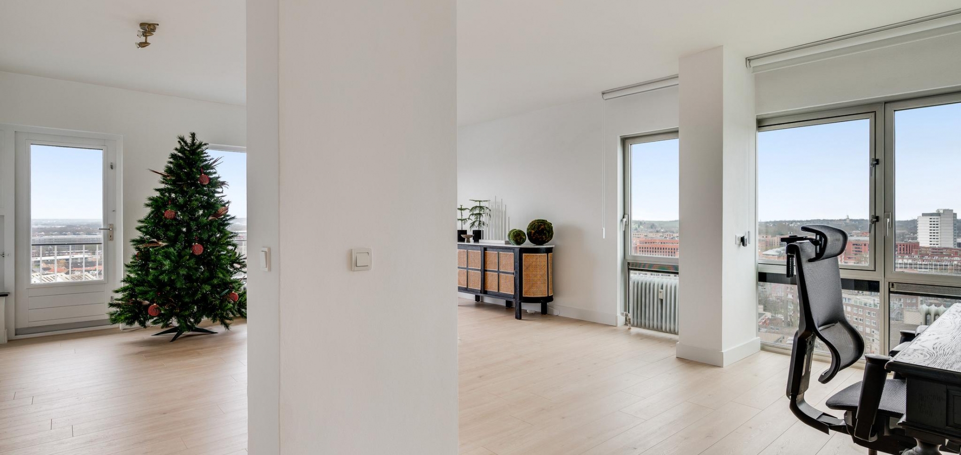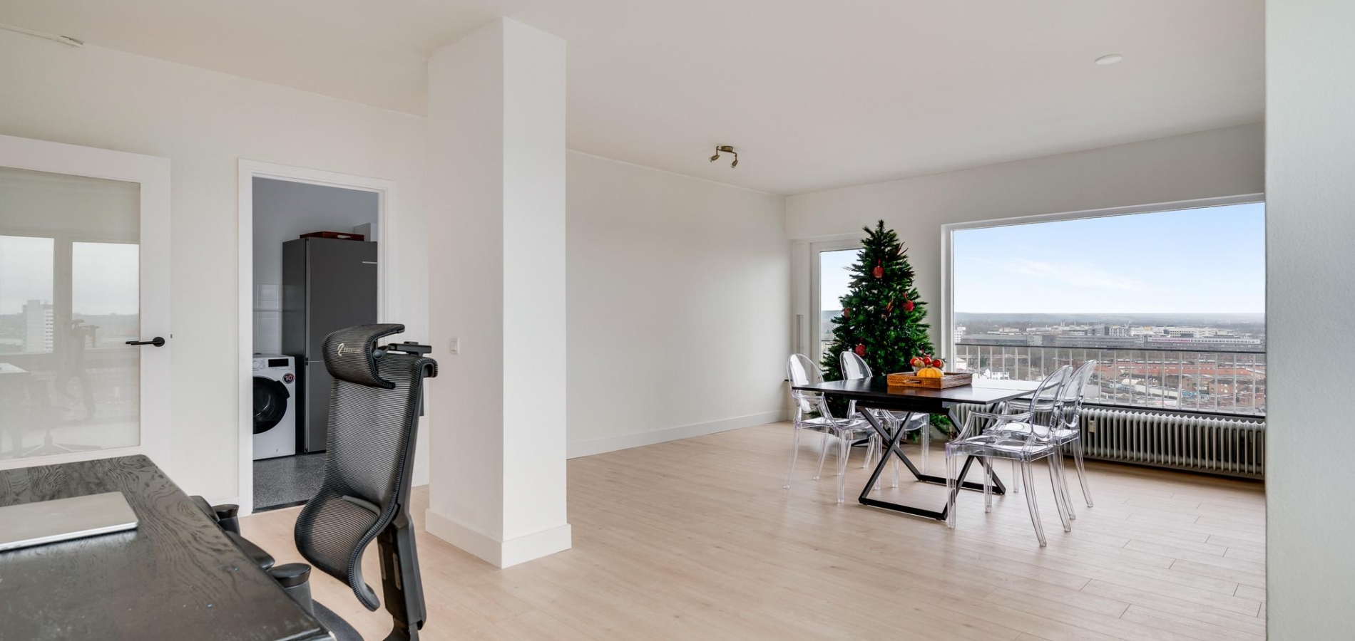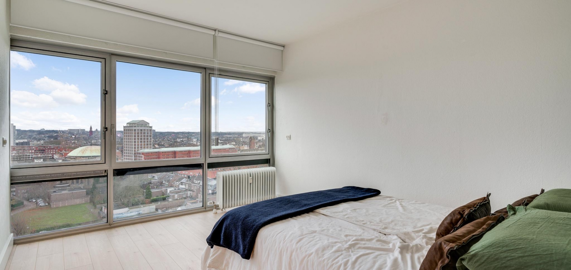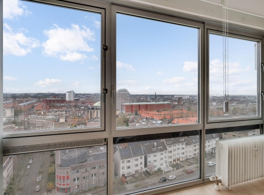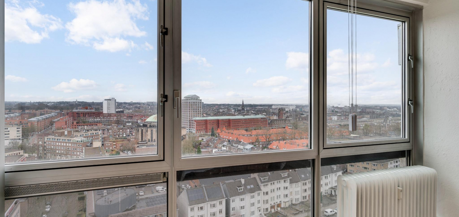 De Torenflat aan De Groene Loper is een icoon in Maastricht, met een hoogte van maar liefst 59 meter. Op de 14e en tevens bovenste verdieping biedt dit driekamerappartement kilometers ver uitzicht over Maastricht en het Heuvelland, met vele kerktorens en de Sint Pietersberg als herkenningspunten. Het balkon heeft een uitstekende zonligging en grote ramen aan de zuid- en westkant zorgt voor veel lichtinval.