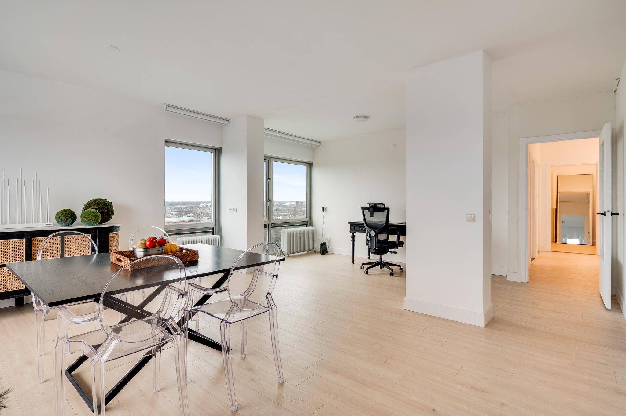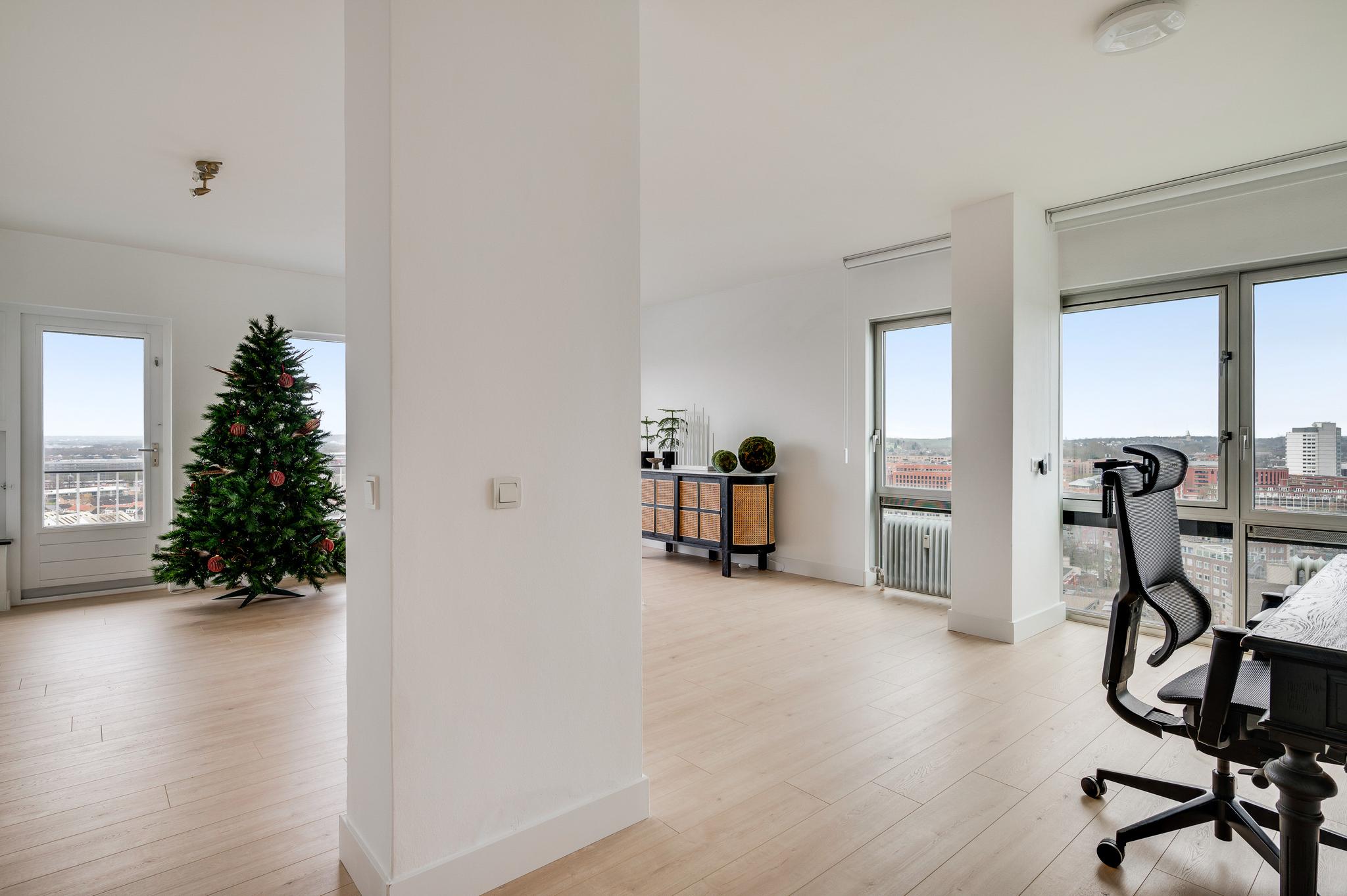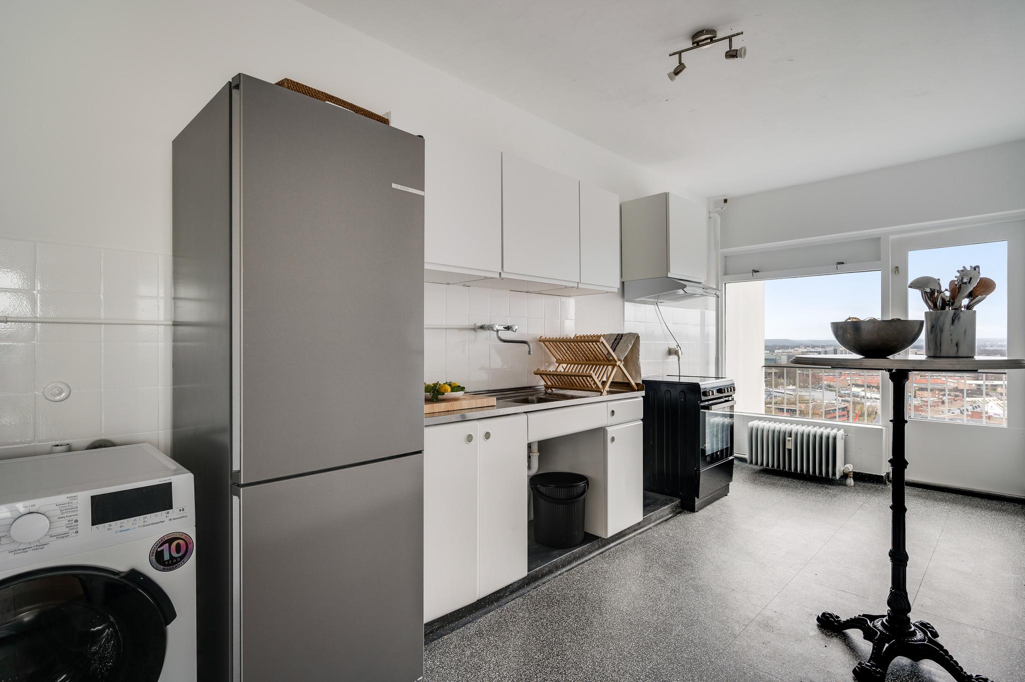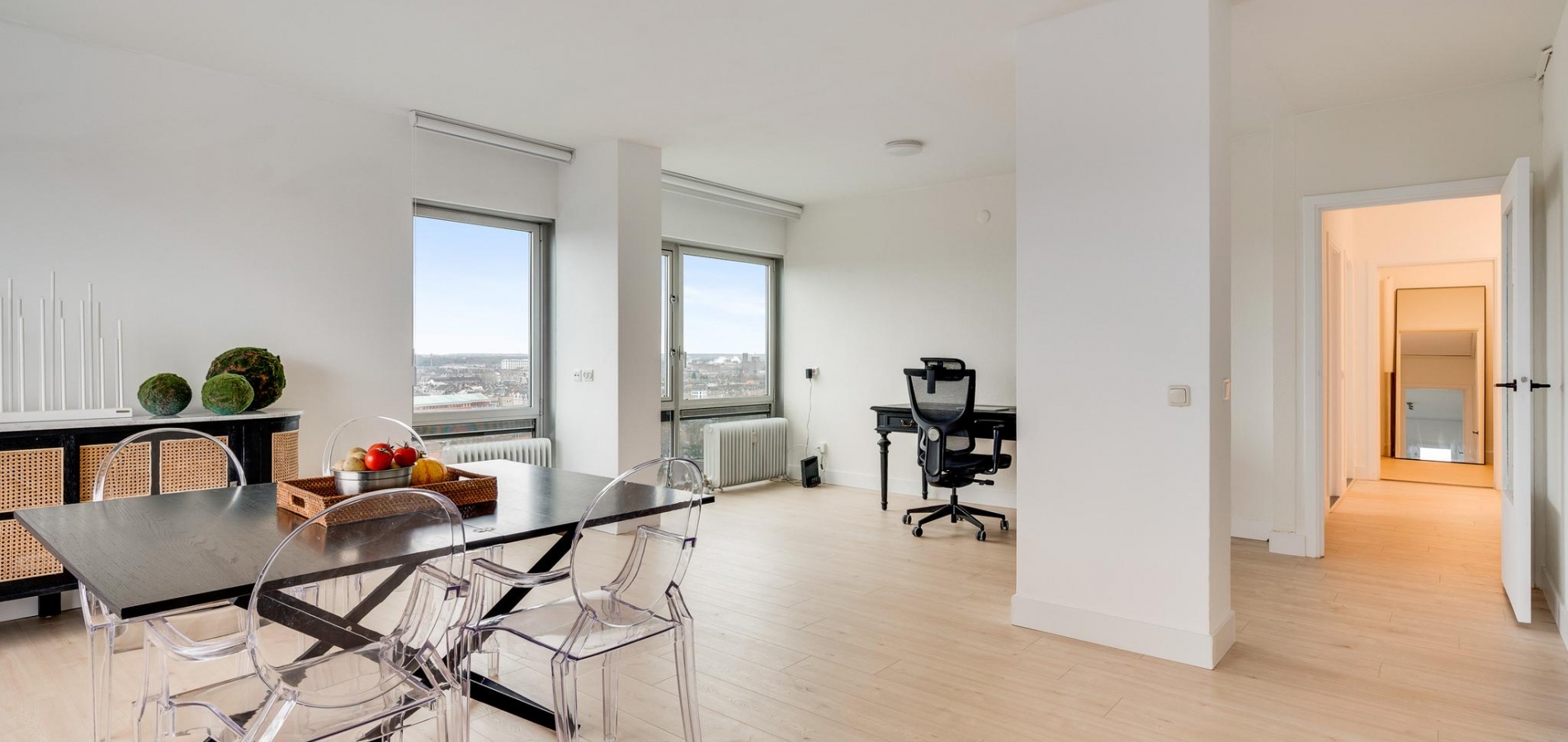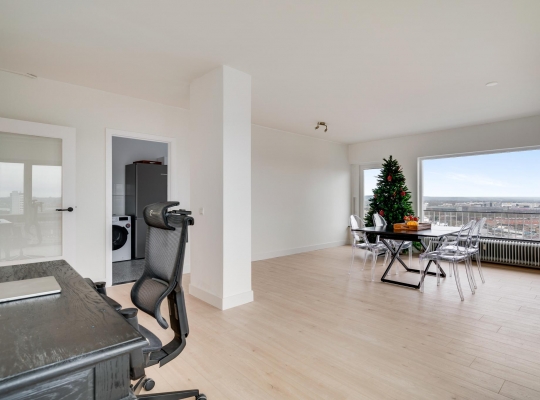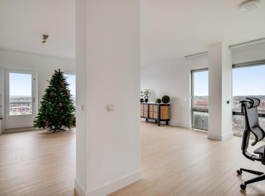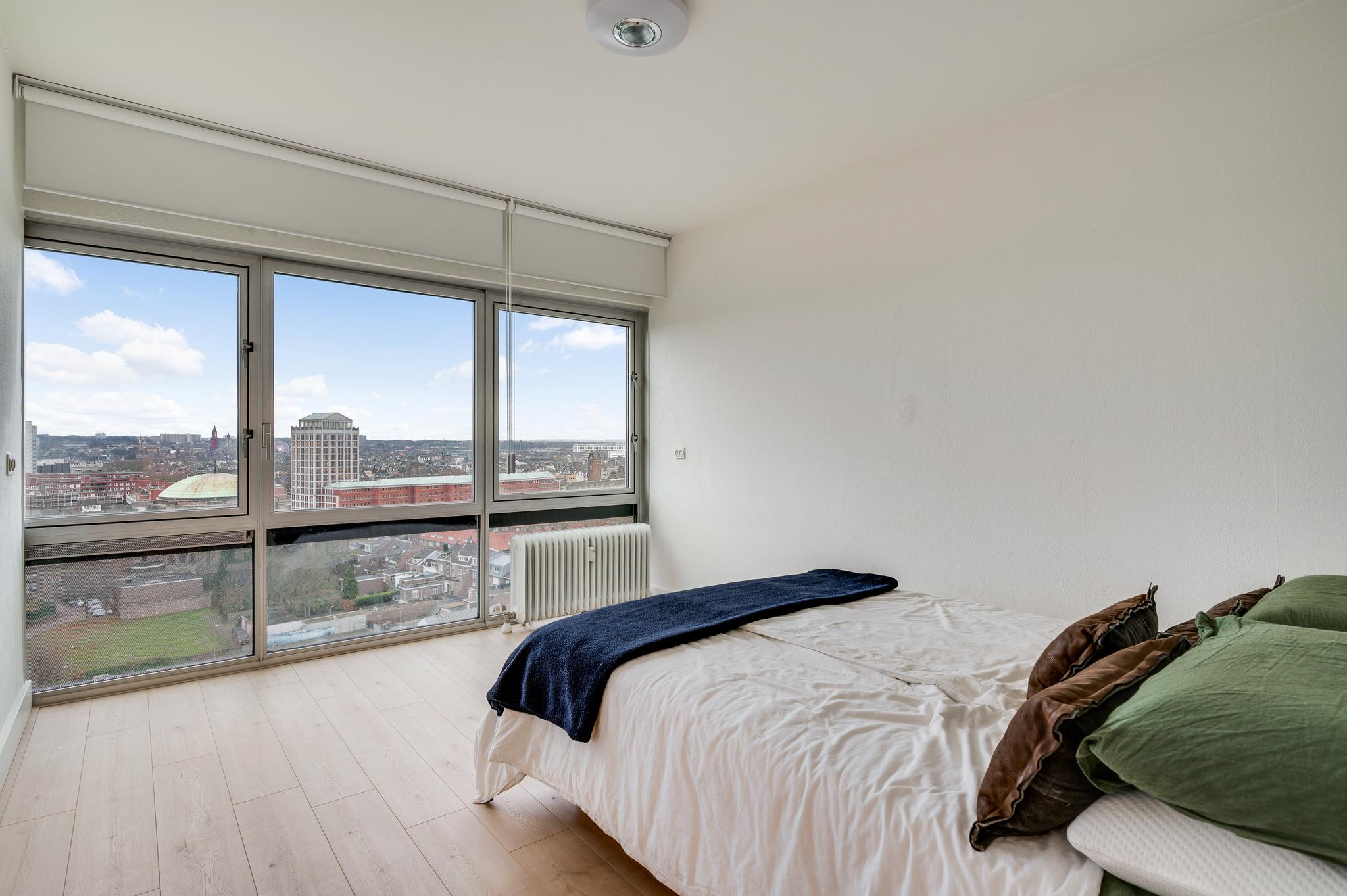 De Torenflat aan De Groene Loper is een icoon in Maastricht, met een hoogte van maar liefst 59 meter. Op de 14e en tevens bovenste verdieping biedt dit driekamerappartement kilometers ver uitzicht over Maastricht en het Heuvelland, met vele kerktorens en de Sint Pietersberg als herkenningspunten. Het balkon heeft een uitstekende zonligging en grote ramen aan de zuid- en westkant zorgt voor veel lichtinval.