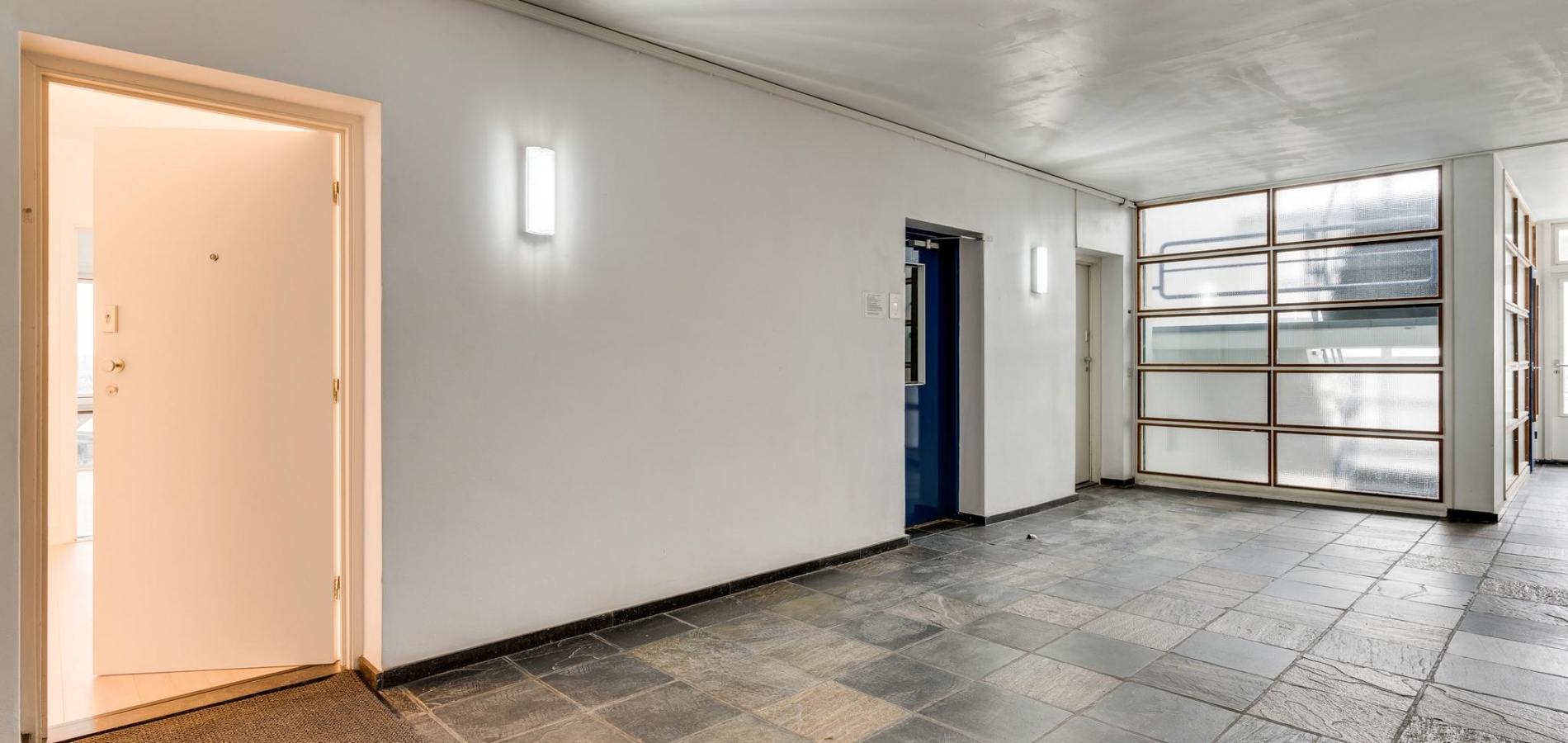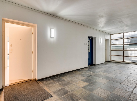 Op de begane grond is de gezamenlijke entree met het bellentableau, de brievenbussen en video-intercom. In de centrale hal zijn het trappenhuis en twee liften, richting de 14 bovengelegen verdiepingen. Dit appartement is gesitueerd op de 14e verdieping, aan de zonnige zuidkant waardoor het appartement heel licht is.