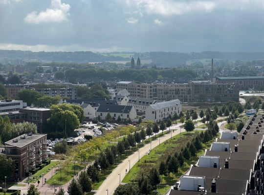 Fantastisch uitzicht aan twee zijden over Maastricht, richting het Heuvelland