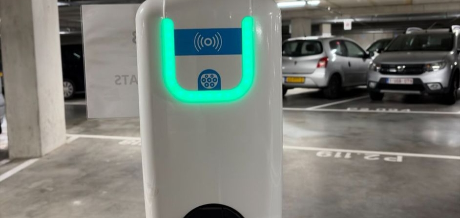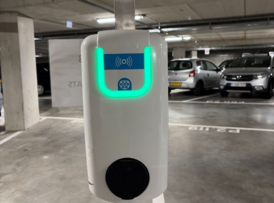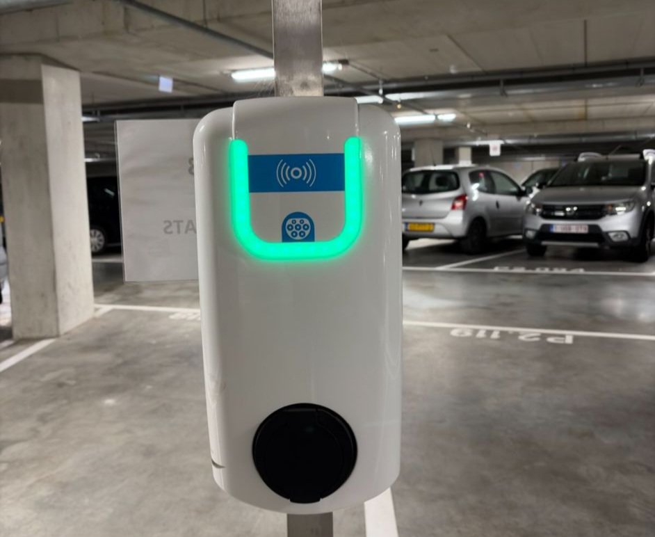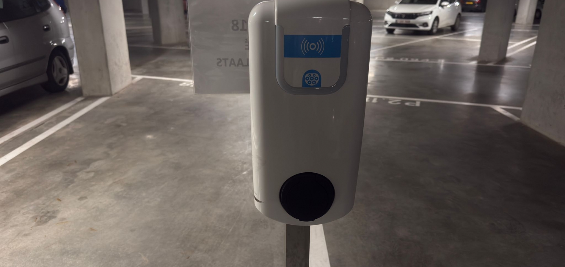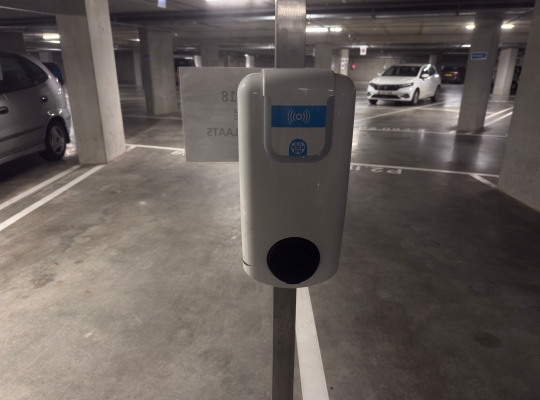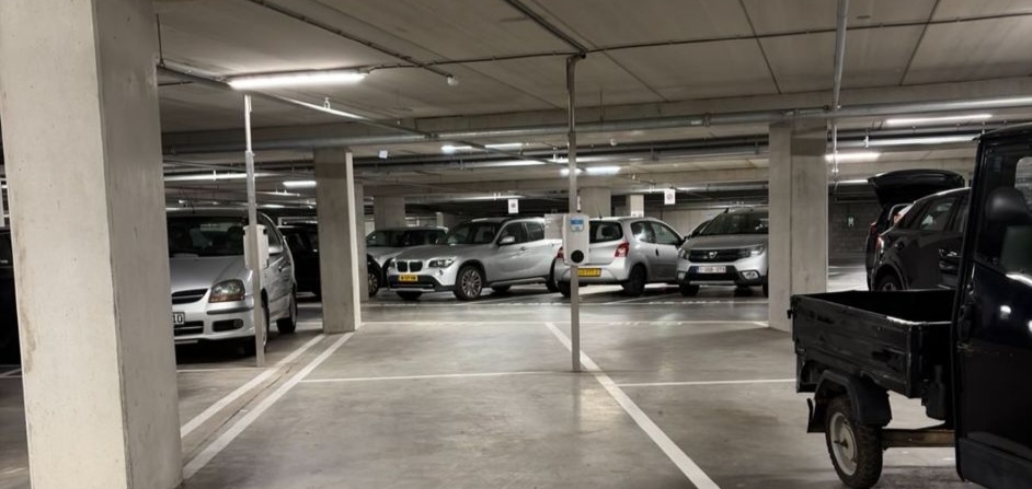 Parkeerplaats met laadpaal te koop in afgesloten ondergrondse bewoners parkeergarage Polverpark in het centrum van Maastricht.