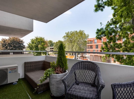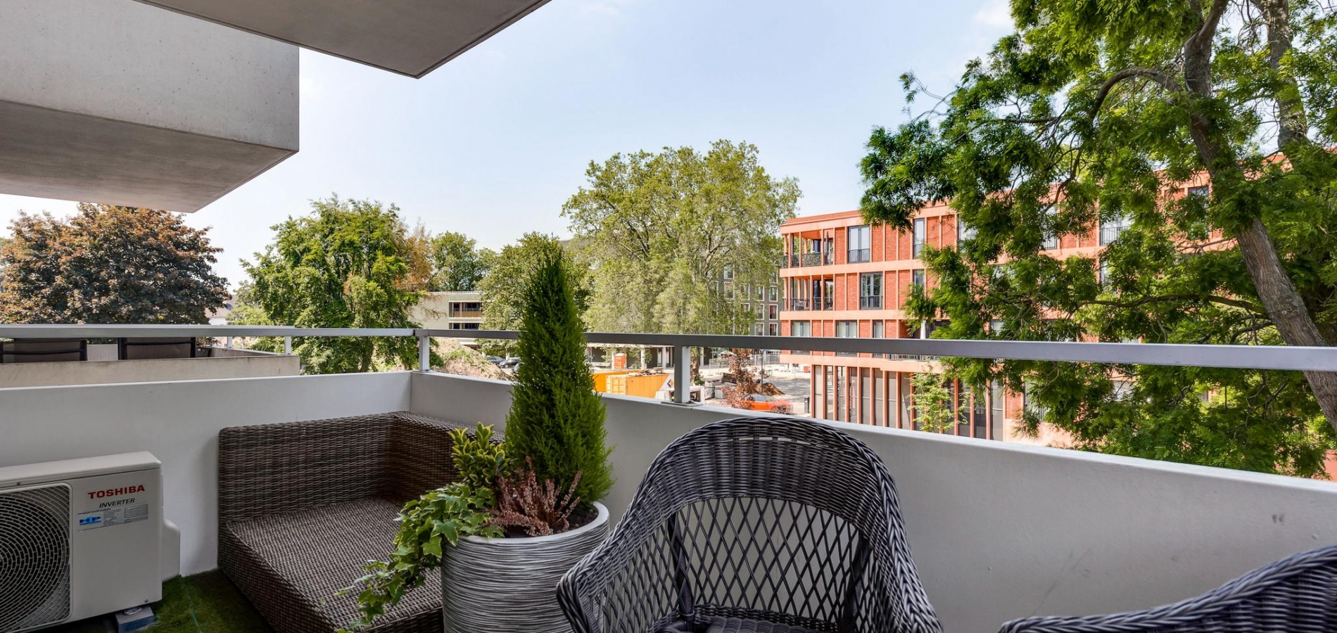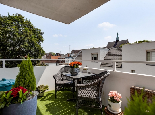Dit instapklare, luxe appartement heeft twee balkons. Het balkon aan de woonkamerzijde (4,10 x 2,11) is gesitueerd op het zuiden en het tweede balkon (4,11 x 2,11) aan de slaapkamerzijde op het koele noorden. Geniet van het uitzicht, de zon en de fantastische ligging in het historische centrum van Maastricht.