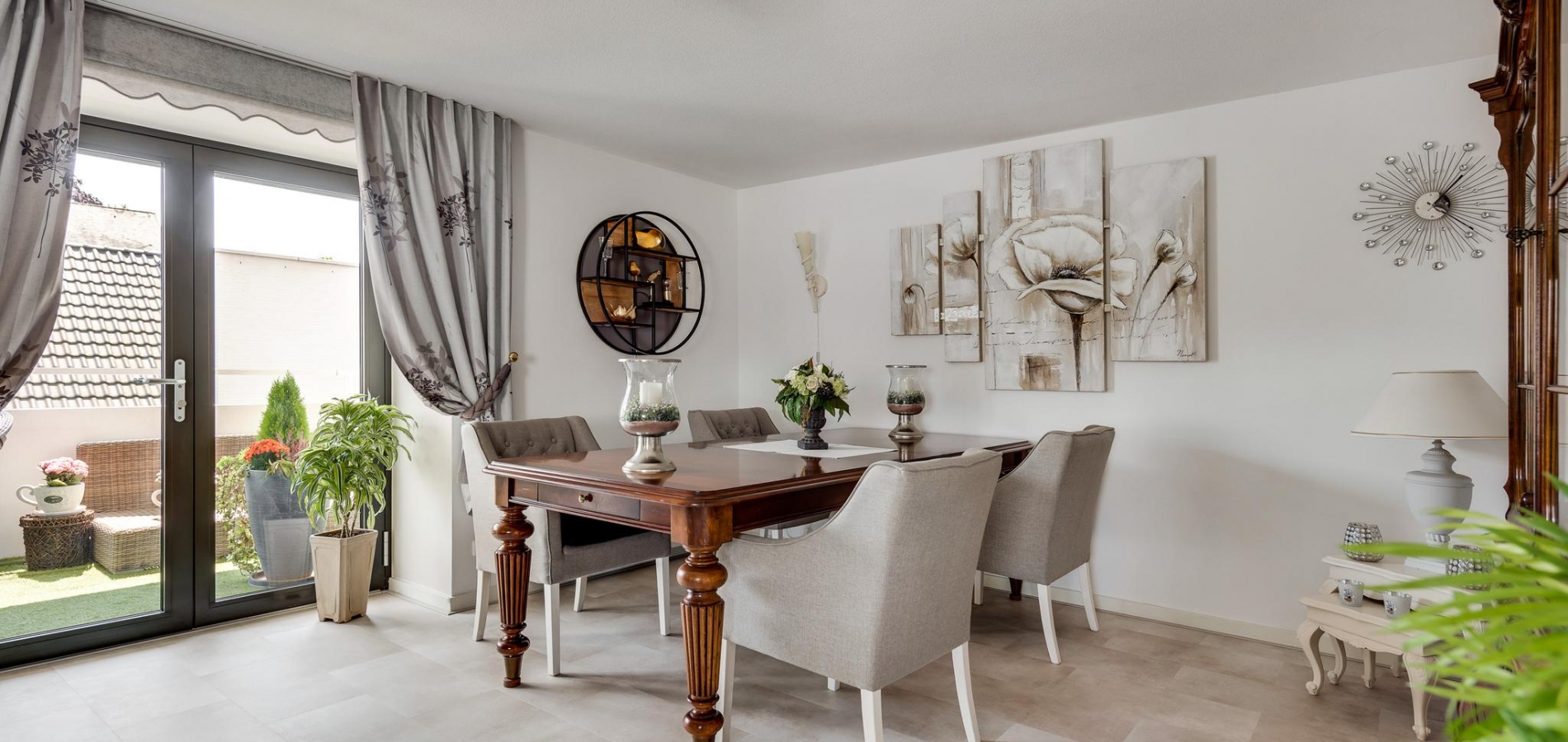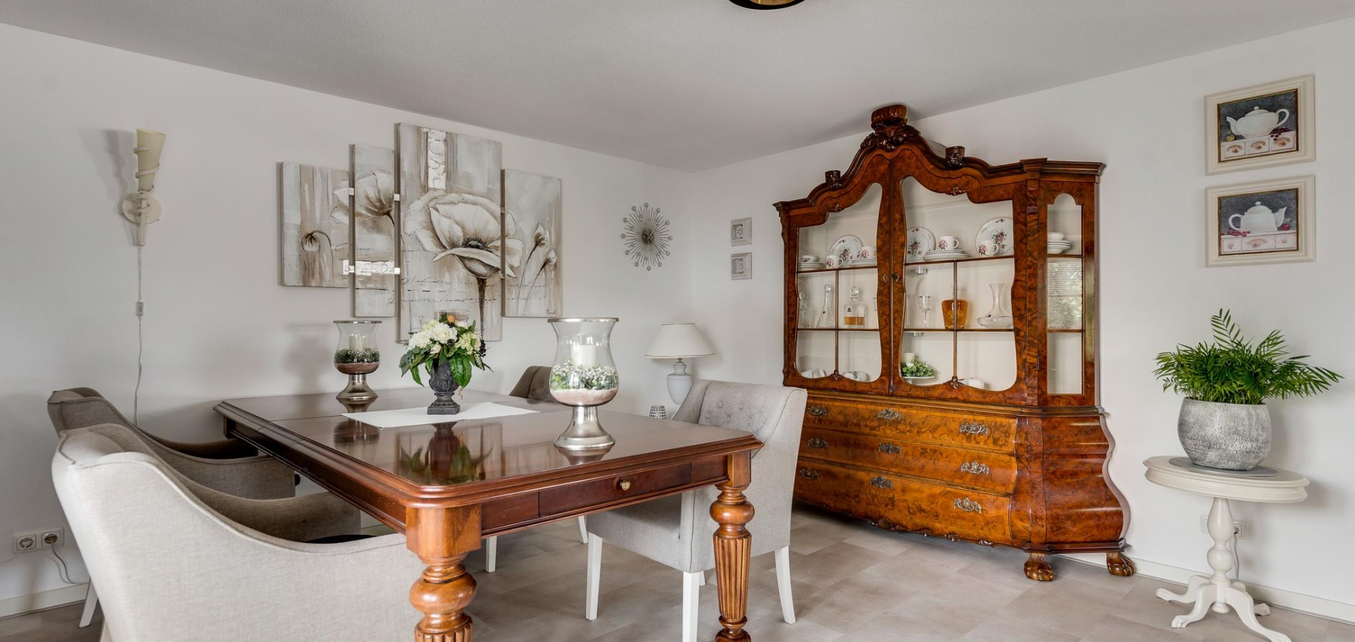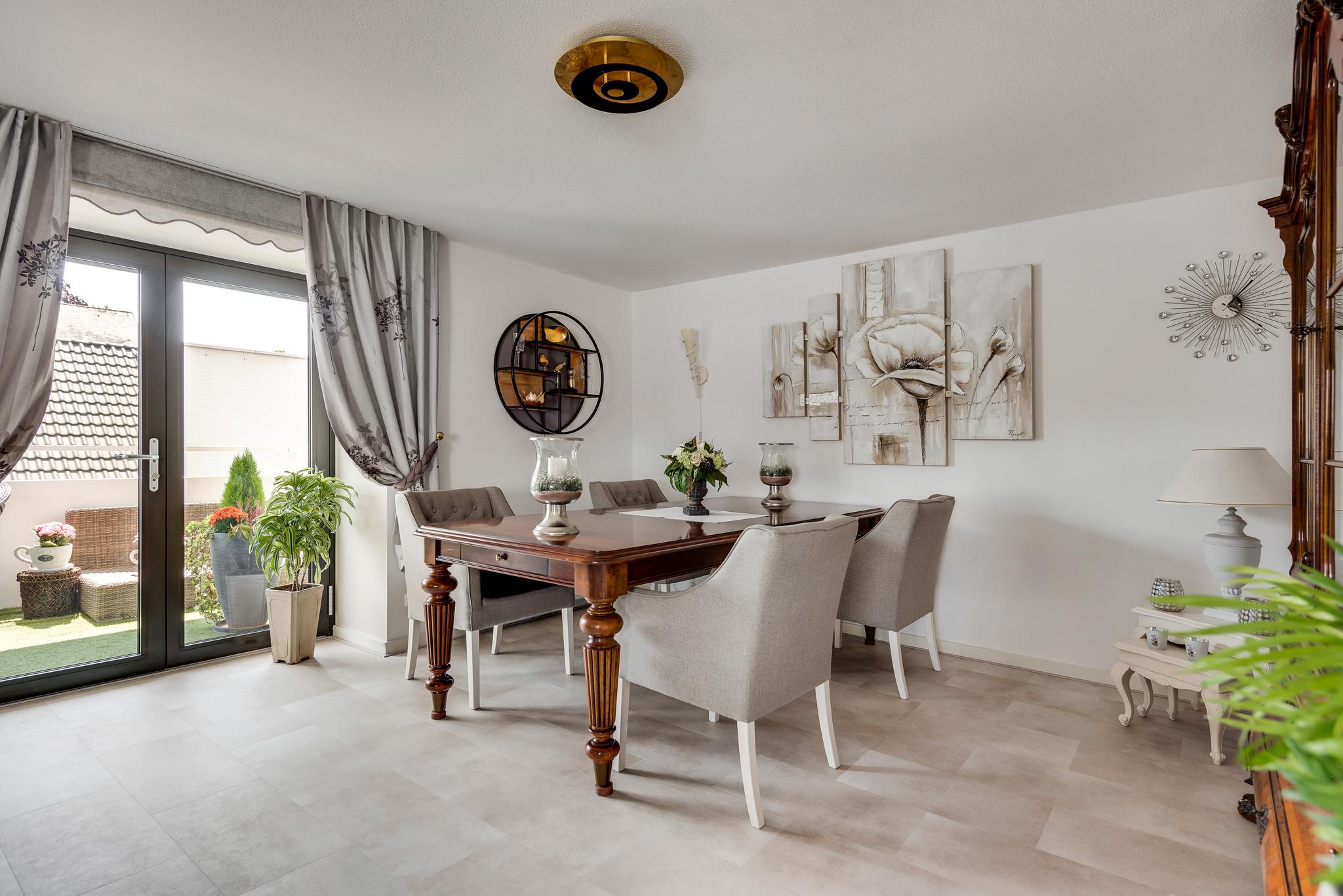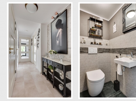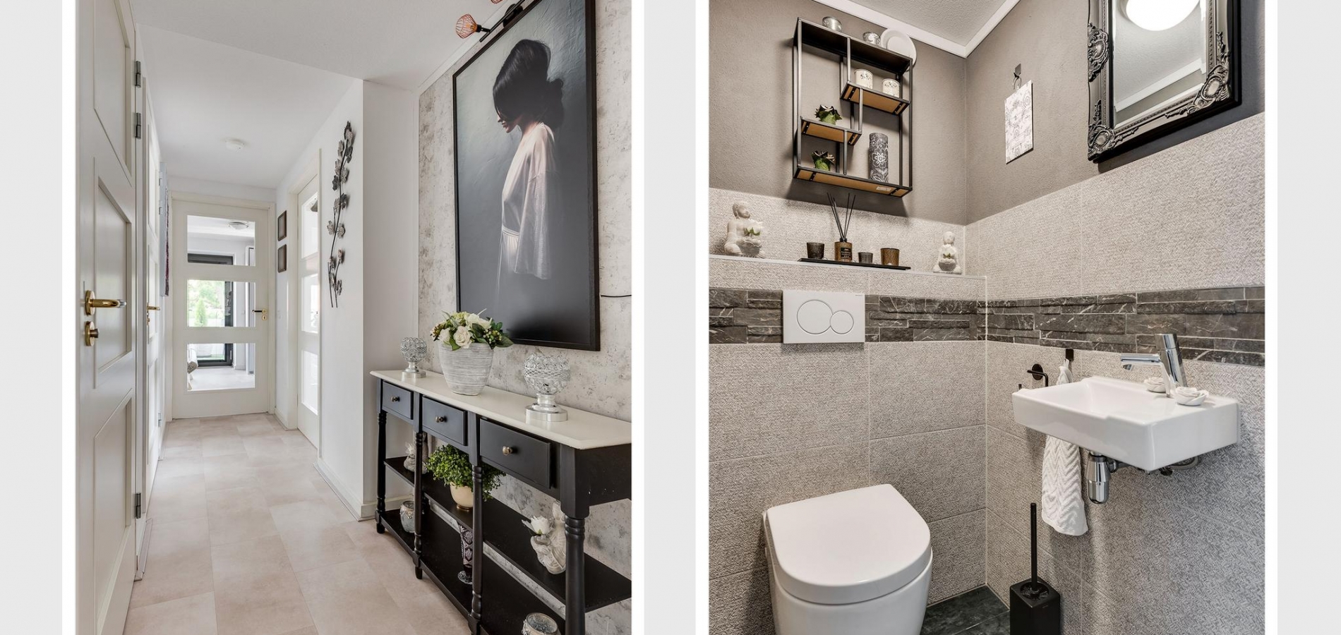 De hal is, net als de rest van het appartement, het toonbeeld van luxe en sfeer. In 2021 is de pvc-vloer gelegd en dankzij de op maat gemaakte garderobe oogt de hal heel ruimtelijk.