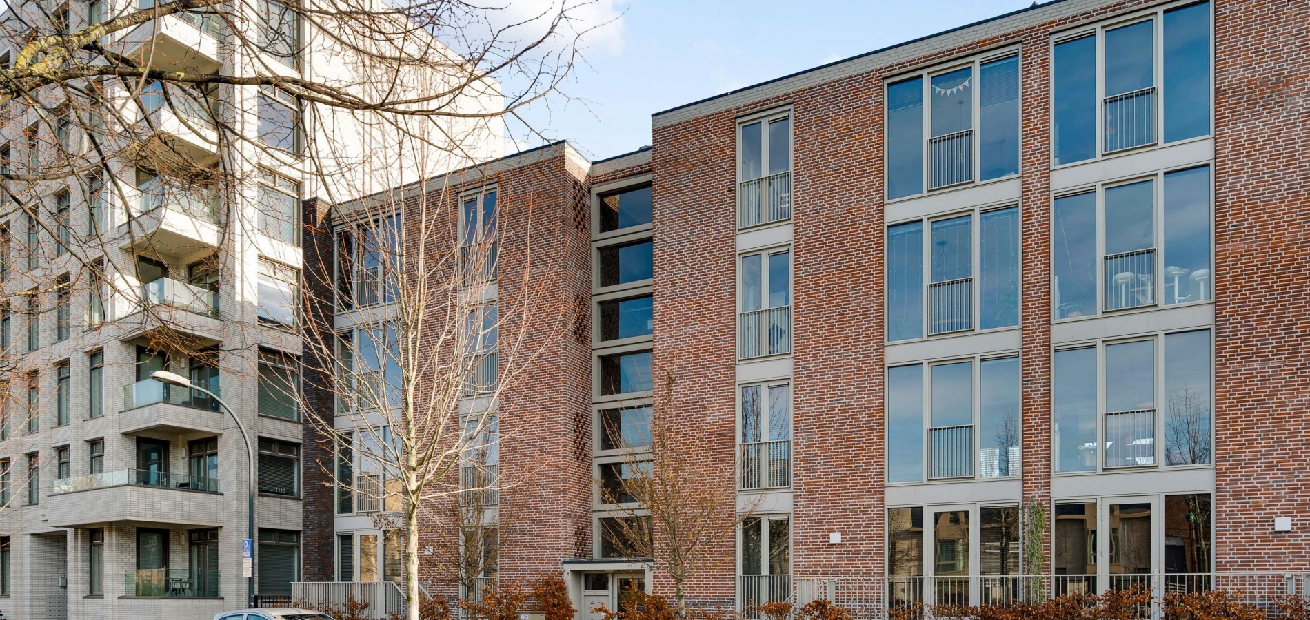Duurzaam appartementengebouw met warmtepompen, zonnepanelen en goede isolatie