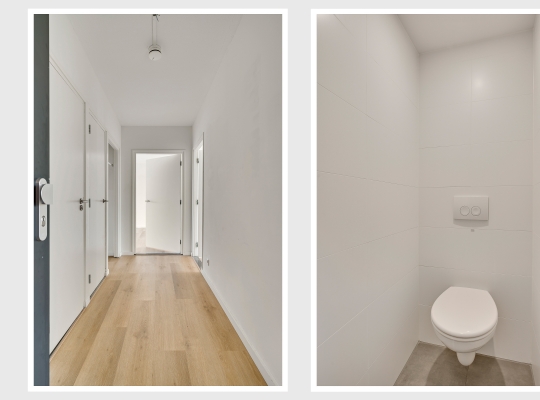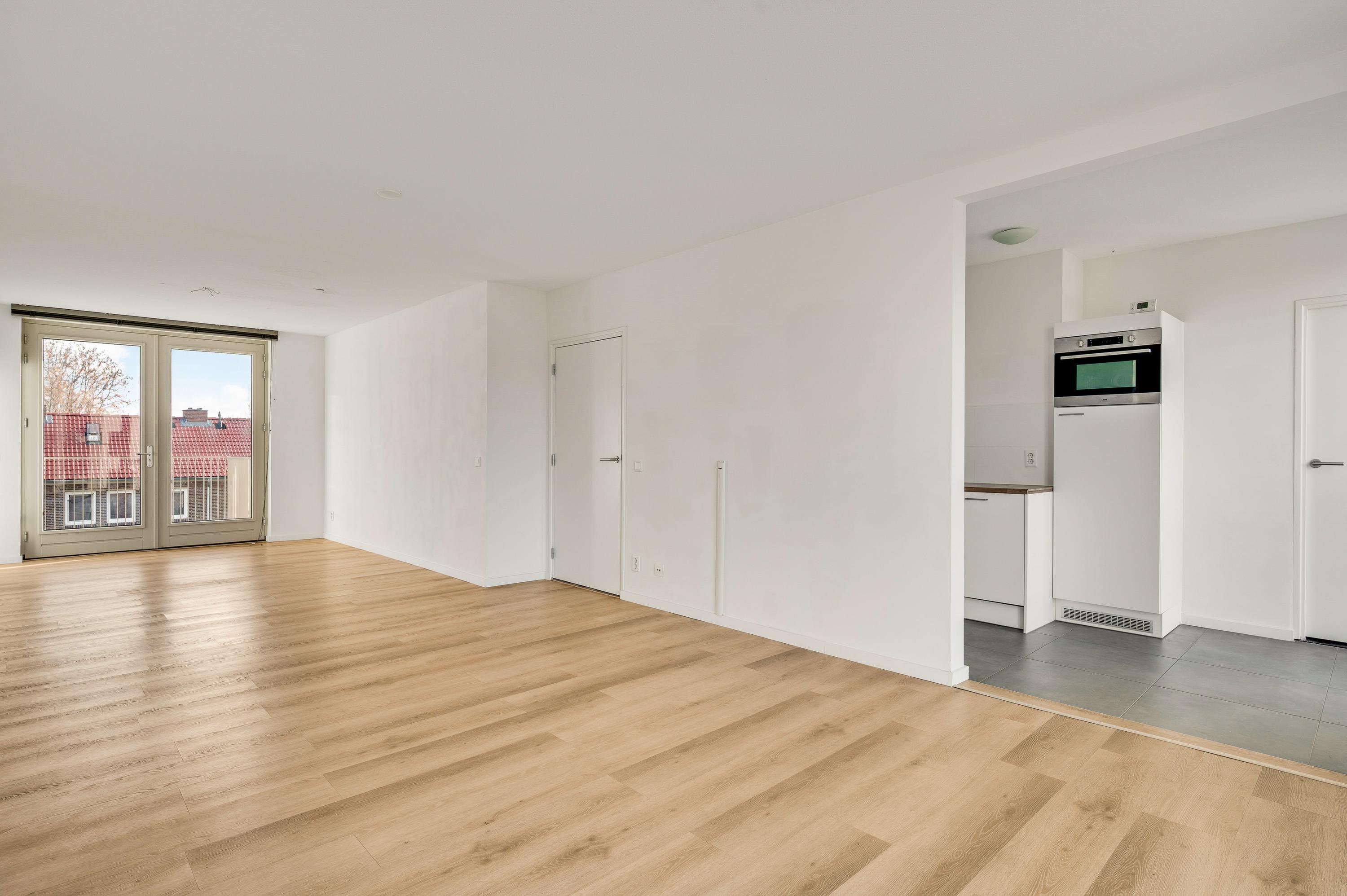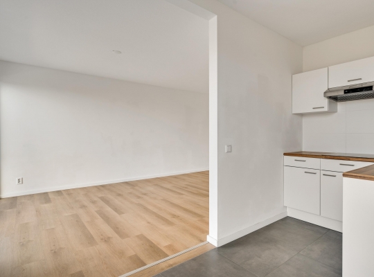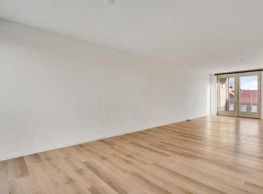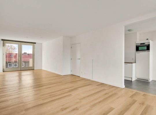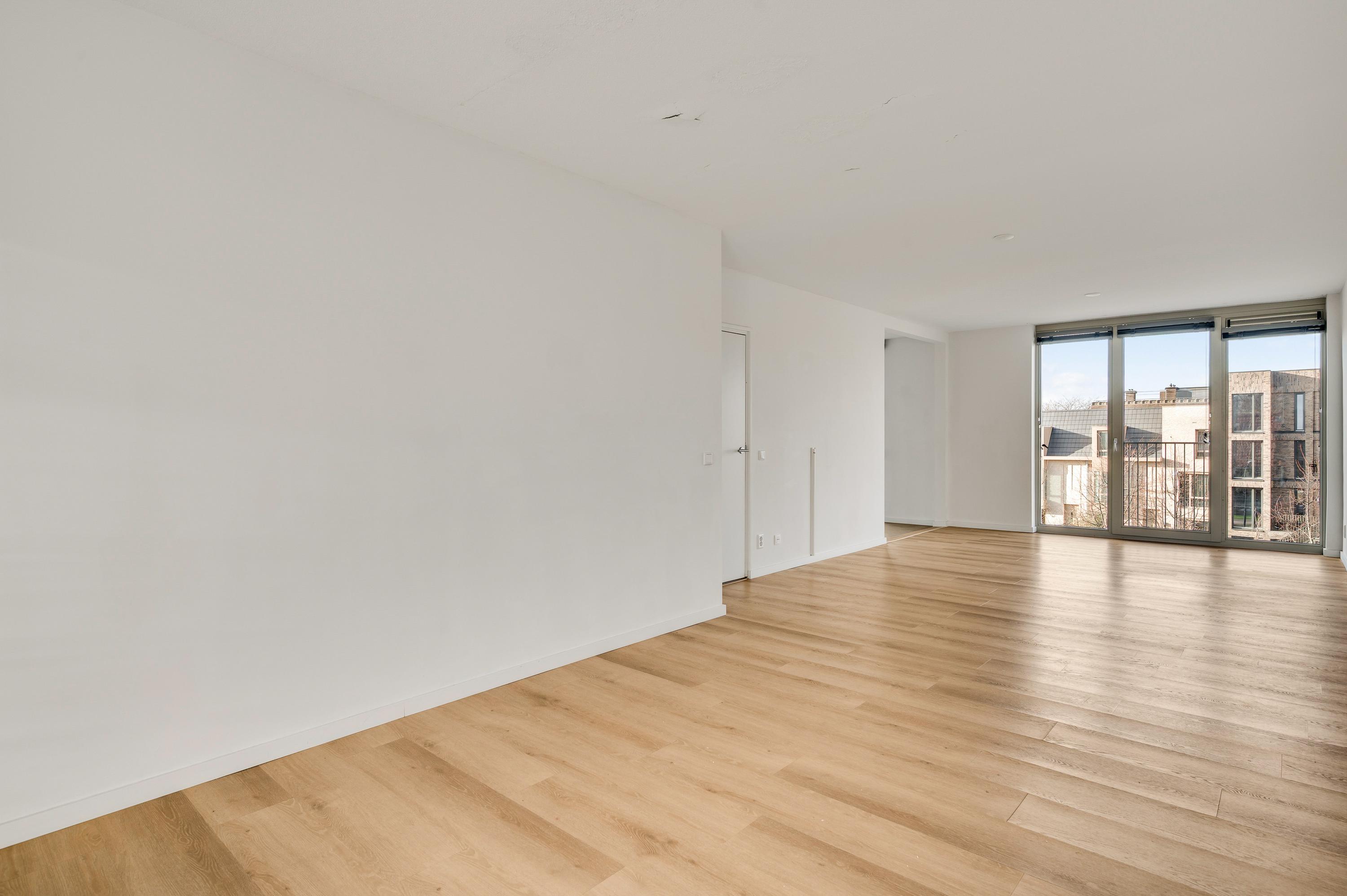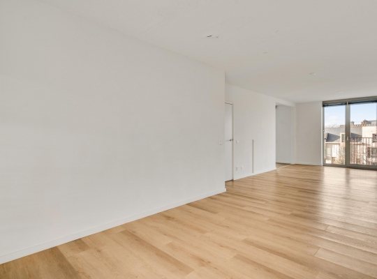 De woonkamer heeft een oppervlakte van circa 33 m2, met openslaande deuren naar het balkon en mooi uitzicht naar De Groene Loper. Lichte kleuren bepalen de sfeer en u kunt direct beginnen met inrichten. Het balkon is gesitueerd op het oosten, voor een perfecte start van de dag.
