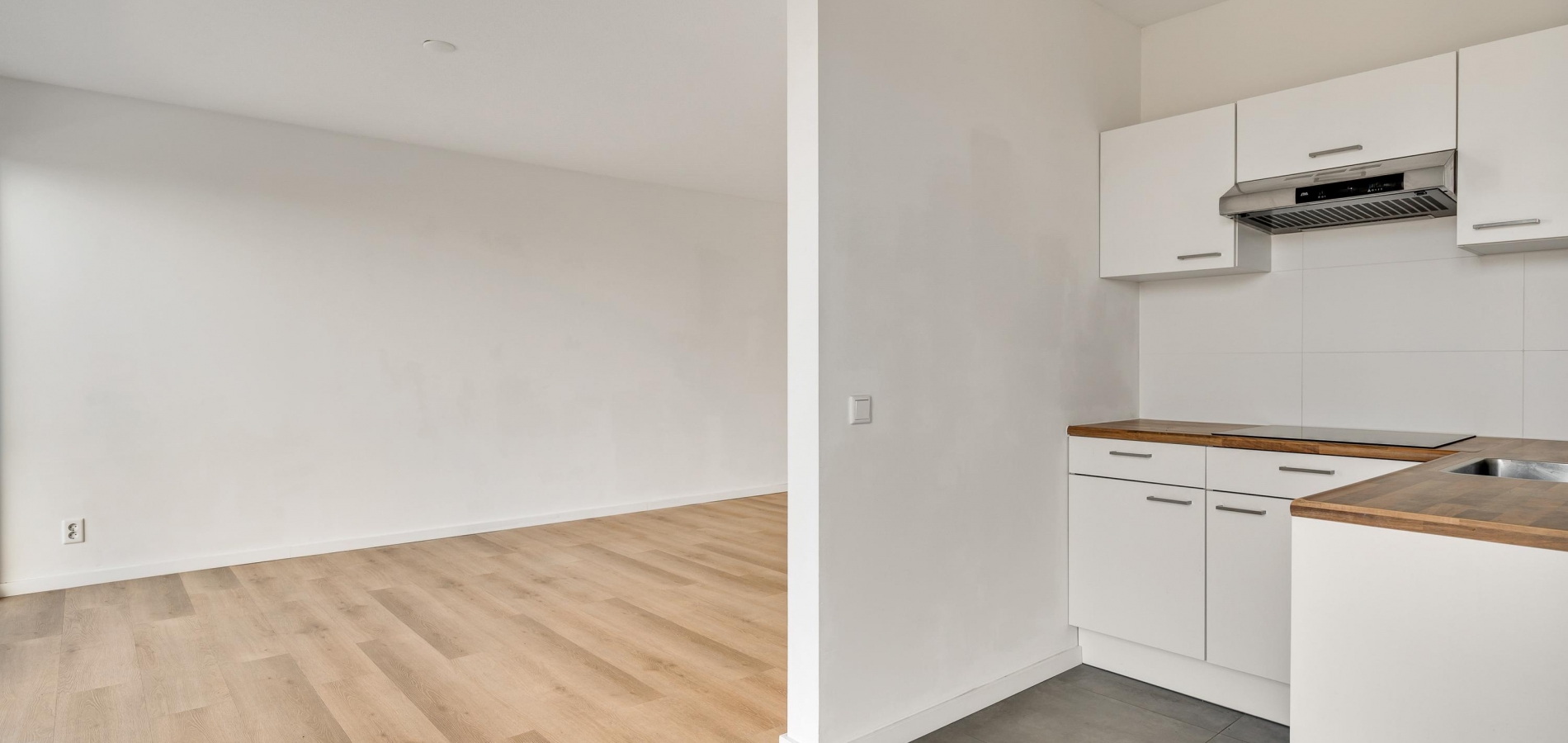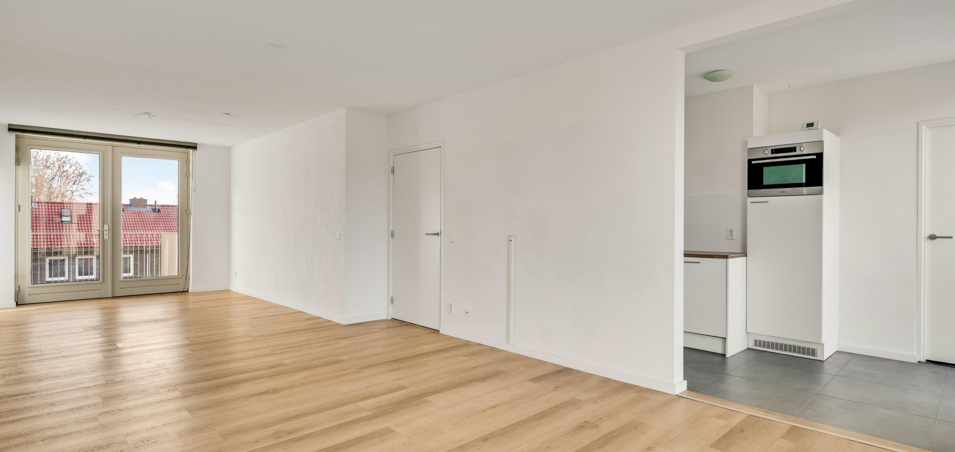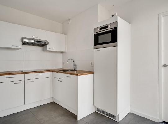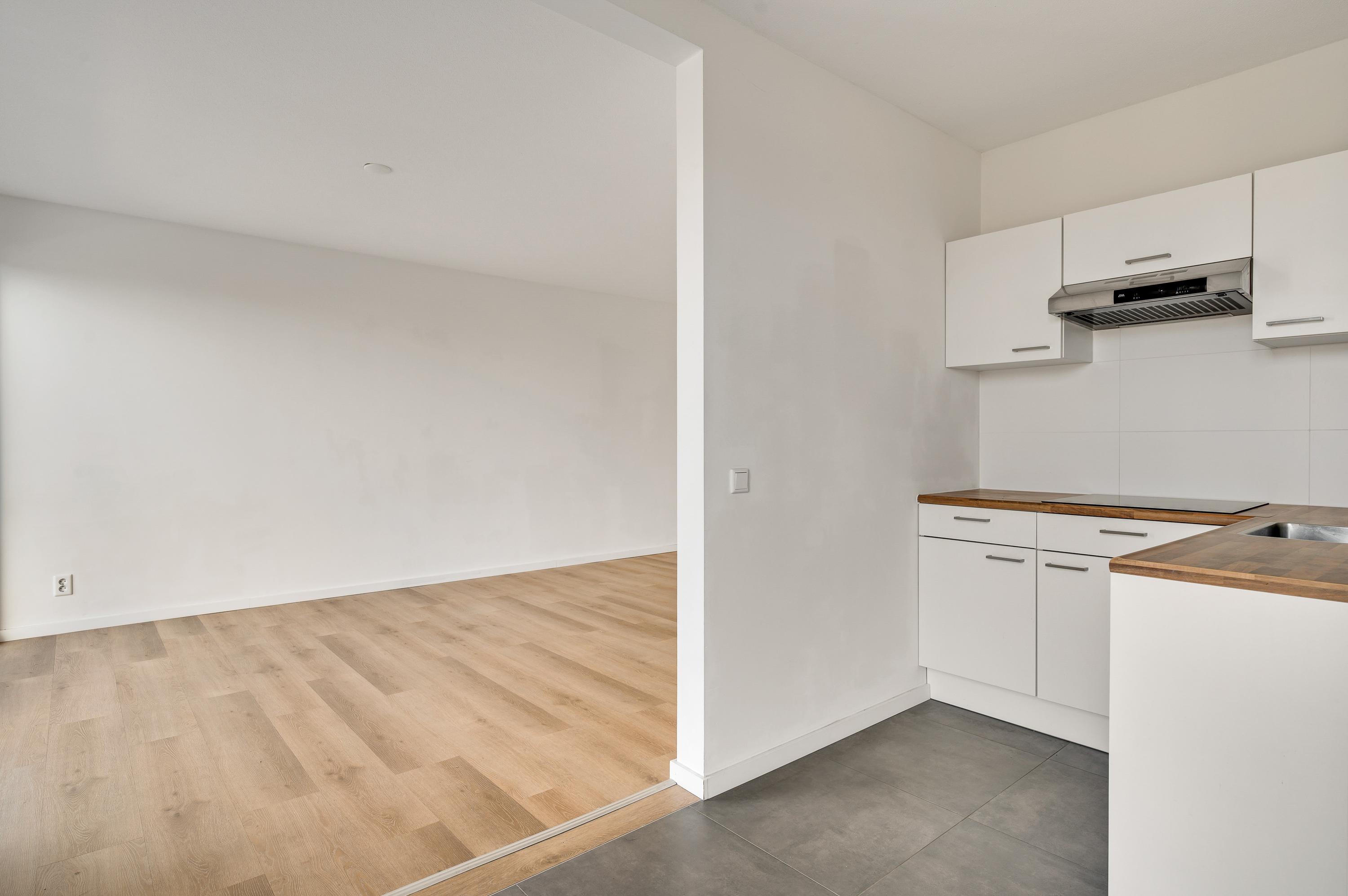De woonkamer heeft een oppervlakte van circa 33 m2, met openslaande deuren naar het balkon en mooi uitzicht naar De Groene Loper. Lichte kleuren bepalen de sfeer en u kunt direct beginnen met inrichten. Het balkon is gesitueerd op het oosten, voor een perfecte start van de dag.