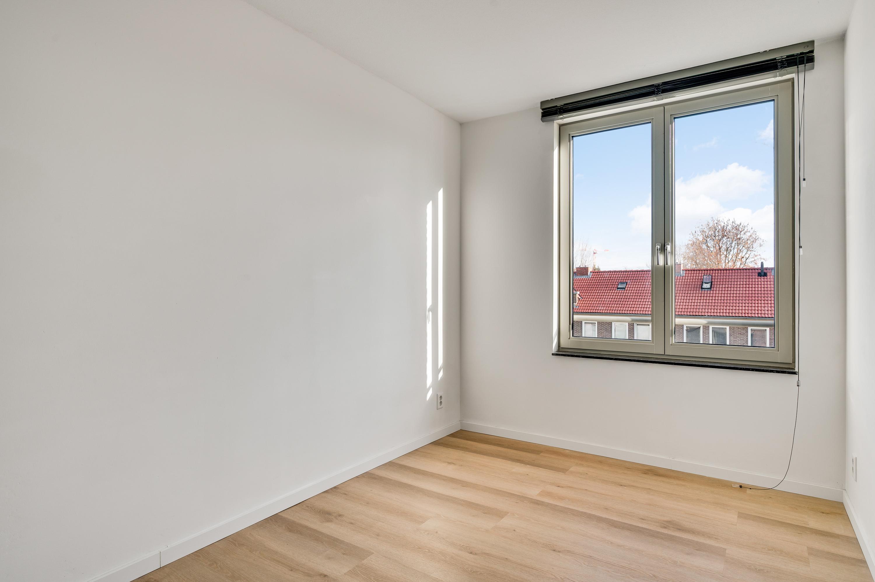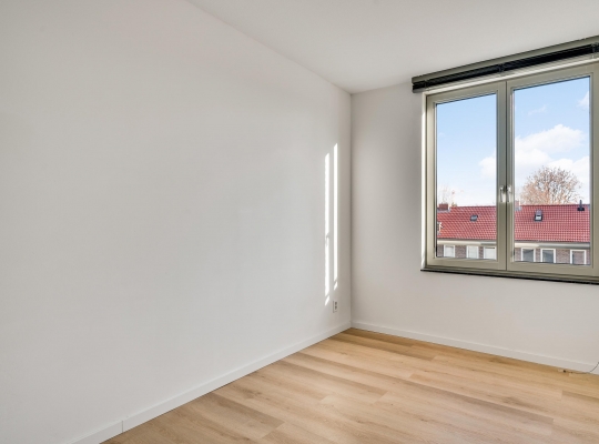 Aan de achterzijde zijn slaapkamer I (circa 3,97 x 2,42) en slaapkamer II (circa 3,97 x 3,25) met een dubbele inbouwkast. Beide kamers zijn niet alleen ruim, maar ook heel licht dankzij ramen aan de oostkant. De grootste kamer is perfect om te gebruiken als master bedroom en de andere kamer als werkkamer, kleedruimte of kinderkamer.