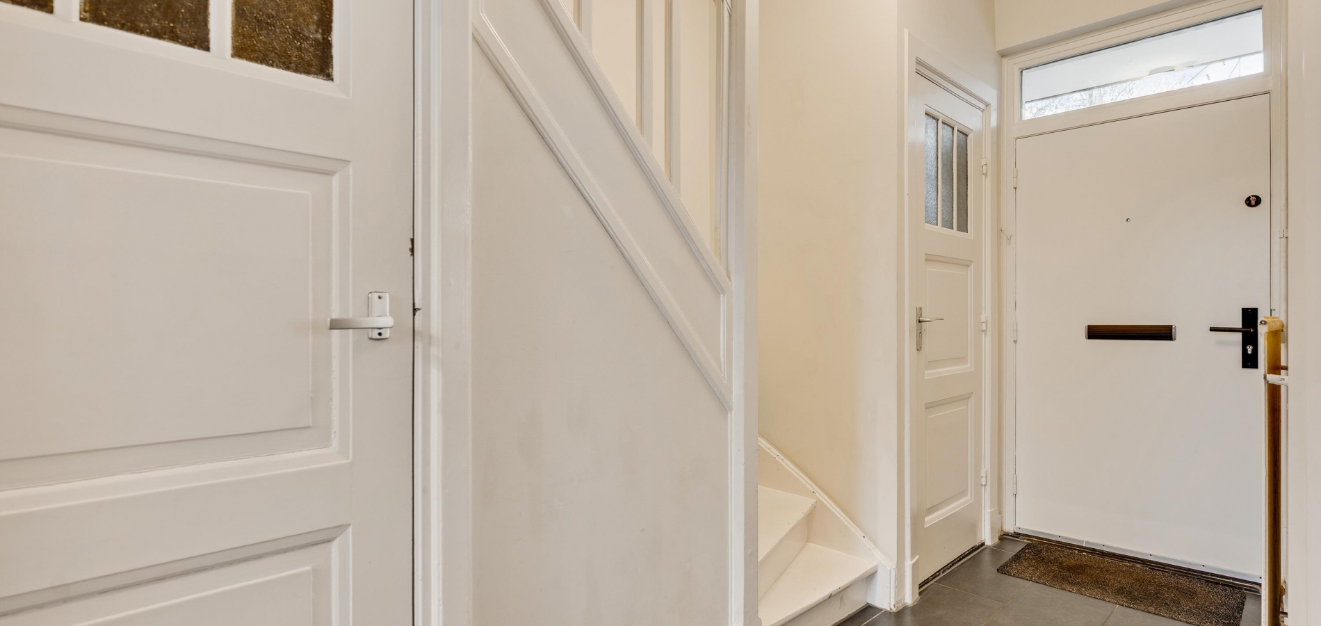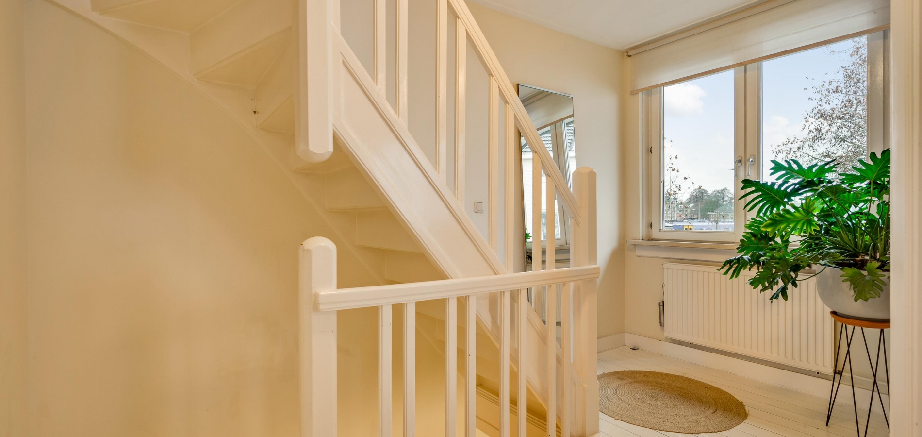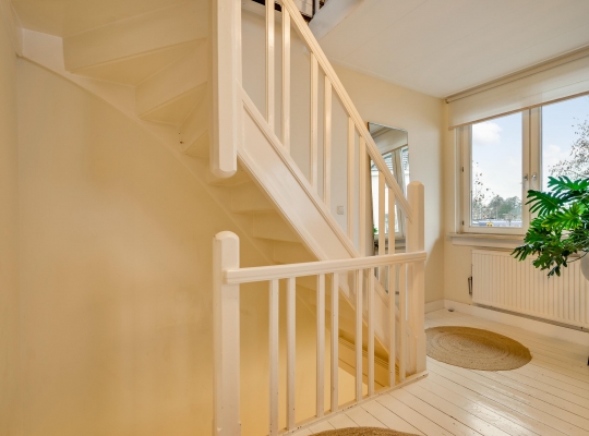 Fraaie elementen als houten vloeren, paneeldeuren en een sierlijke trappartij