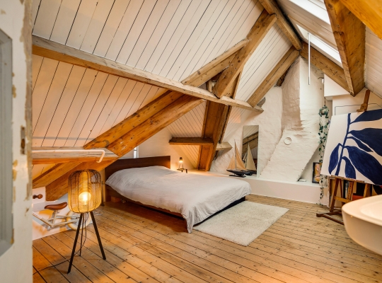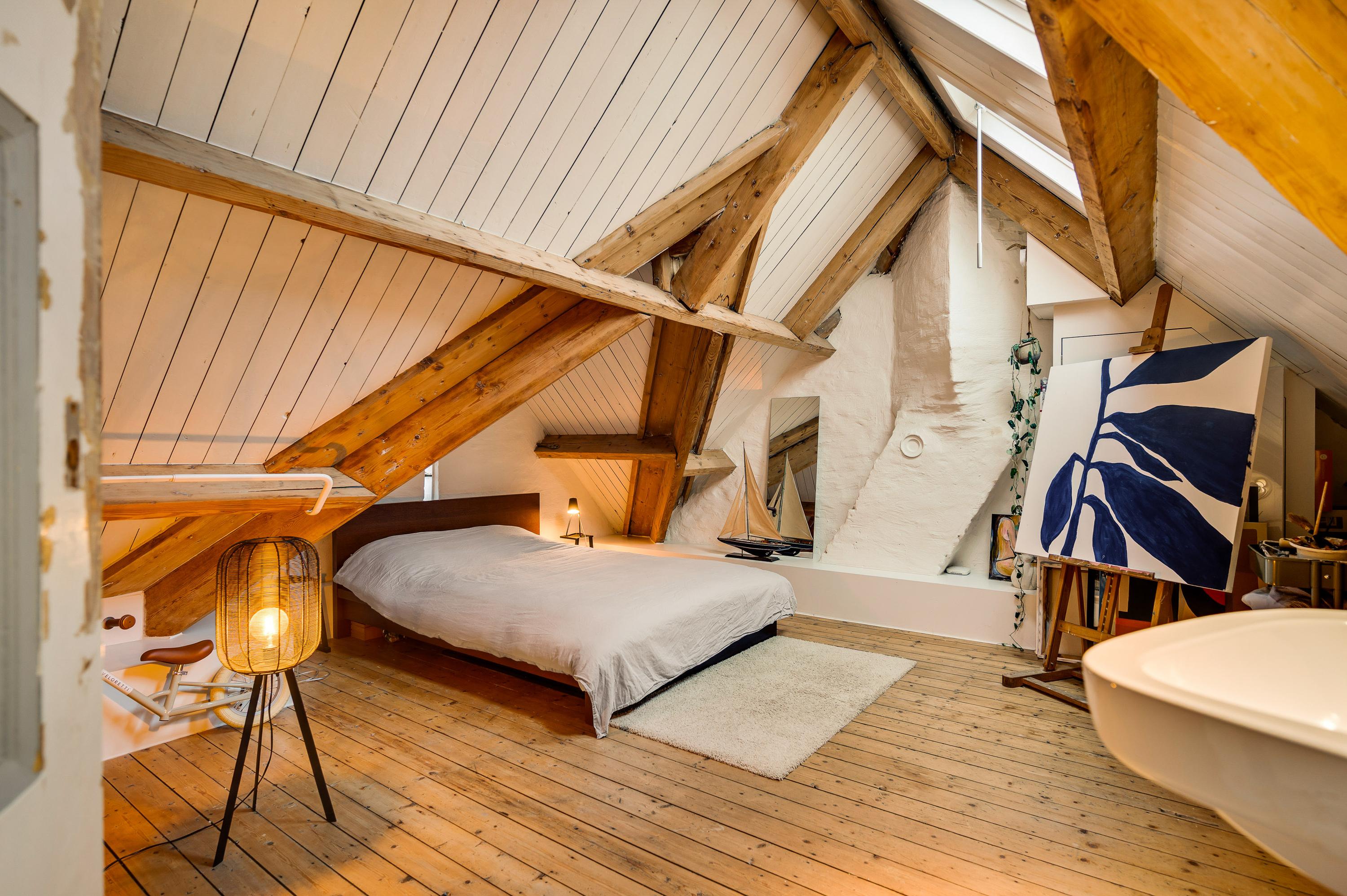 Aansluitend is slaapkamer III met twee dakramen, een wastafel en een raampje bij het slaapgedeelte. Qua ruimte en sfeer is dit een kamer die zo uit een woonmagazine lijkt te komen!