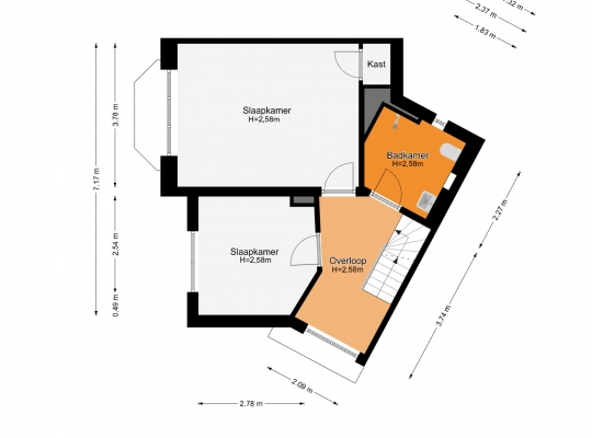 Drie slaapkamers, waarvan een op de tweede verdieping