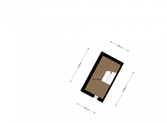 Achter een van de paneeldeuren in de hal is een trap naar het souterrain, Hier bevindt zich een kelderruimte (circa 3,65 x 1,93), onder andere geschikt als provisieruimte en wijnkelder. De hoogte van deze ruimte bedraagt circa 1,83 meter.