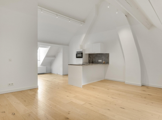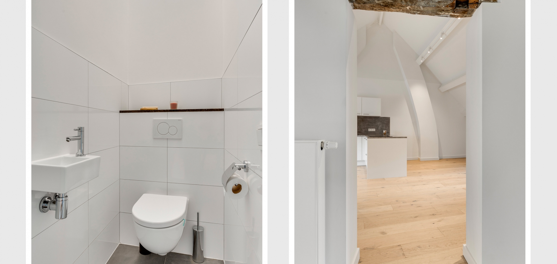 Recent gerealiseerd, stijlvol appartement in het geliefde Wyck. Aan het begin van de Rechtstraat was jarenlang Café Swaree, ‘De Gooi Kamer Vaan Wieck’, gevestigd. Een begrip in Wyck, recht tegenover de Martinuskerk, wat de functie van buurtcafé vervulde. In dit recent herontwikkelde pand krijgt u de kans krijgt om de nieuwe eigenaar te worden van het sfeervolle appartement op de gehele 2e verdieping. Dit appartement oogt, dankzij het zicht tot in de nok, heel ruimtelijk. De keuken met inbouwapparatuur is fraai, net als de badkamer en er is een separate toiletruimte. Ook de slaapkamer, met een mooi doorkijkje naar de Sint-Martinuskerk, is verrassend ruim.