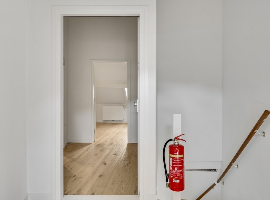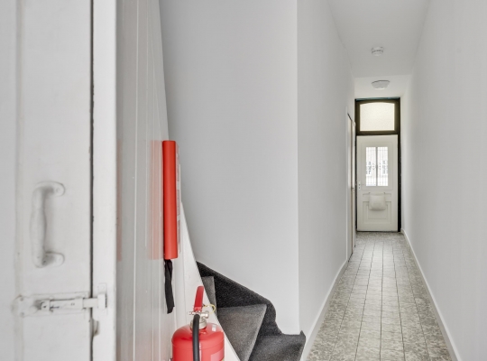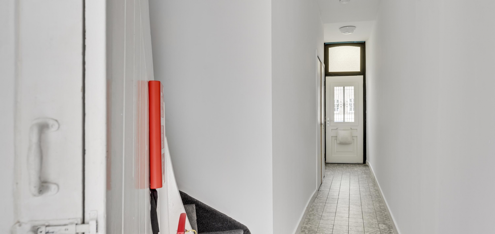 Op de hoek van de Rechtstraat en de Sint Maartenslaan is de entree, die toegang geeft tot de gezamenlijke hal met trappenhuis. Aan de achterzijde van het pand is de gezamenlijke fietsenstalling, waardoor uw fiets niet aan de openbare weg hoeft te staan. Met de trap is het appartement, gesitueerd op de tweede verdieping, te bereiken. Wat opvalt is dat de gezamenlijke ruimtes er zeer goed uit zien, net als de buitenzijde van het pand.