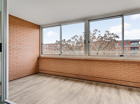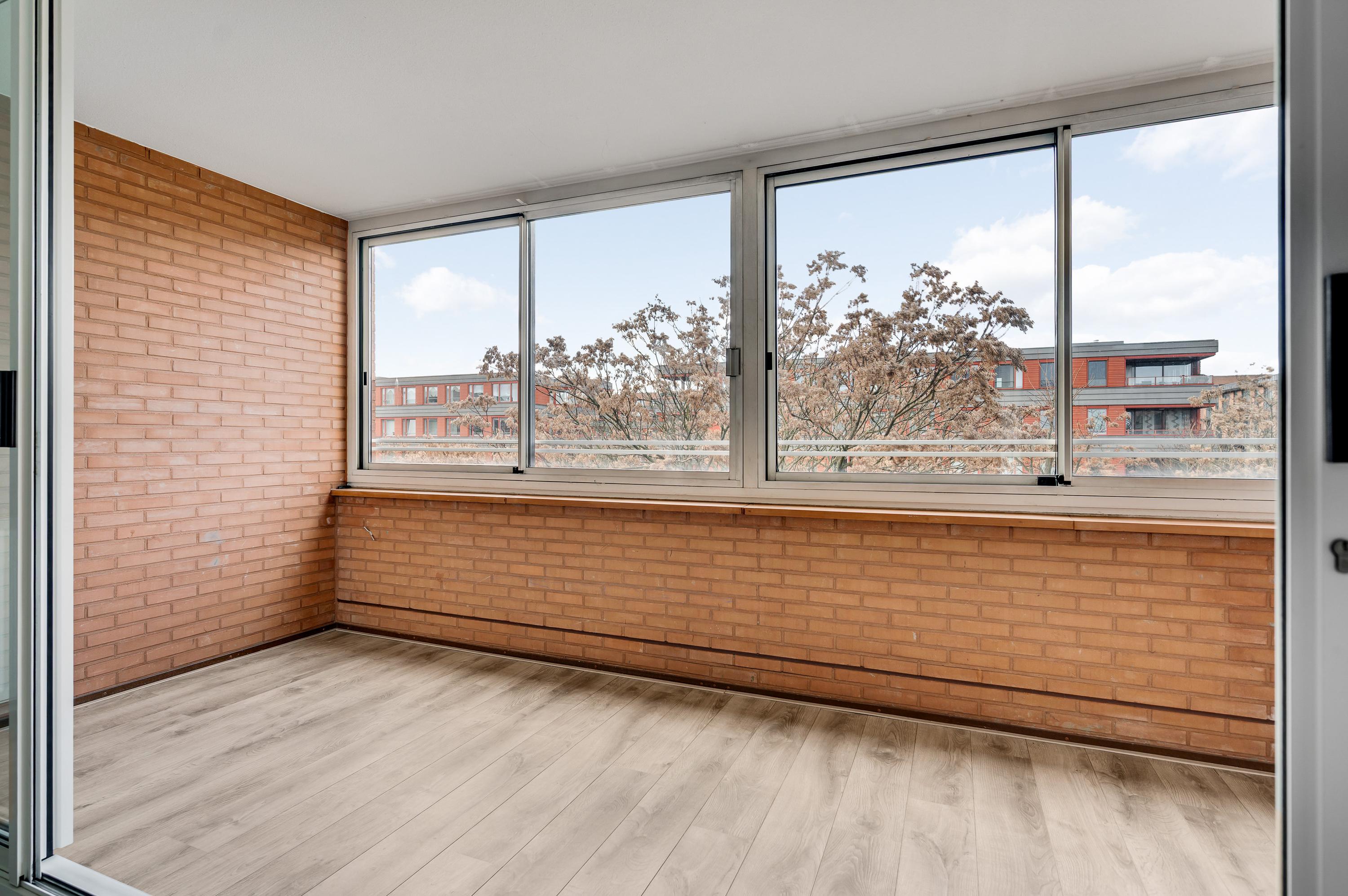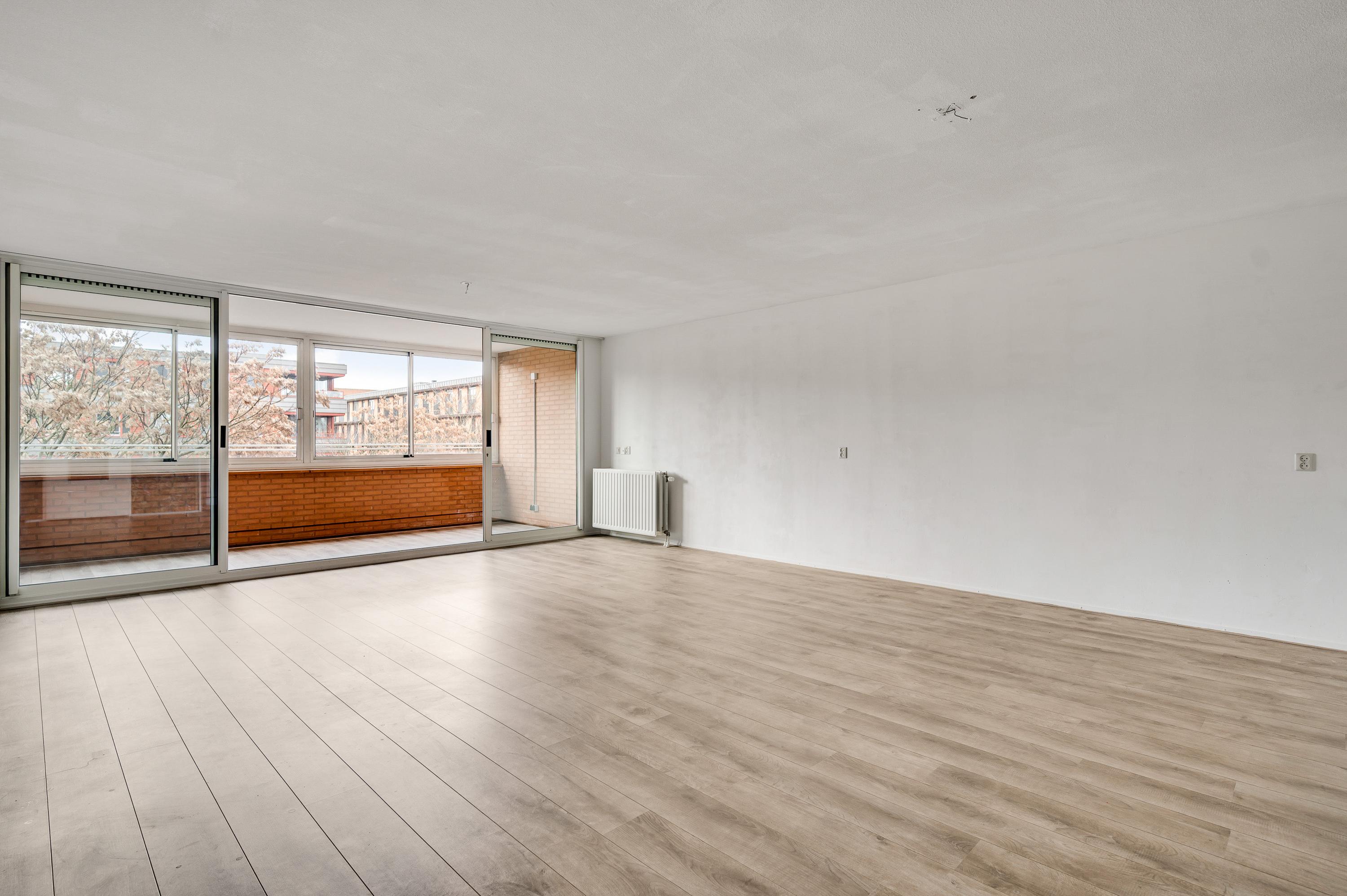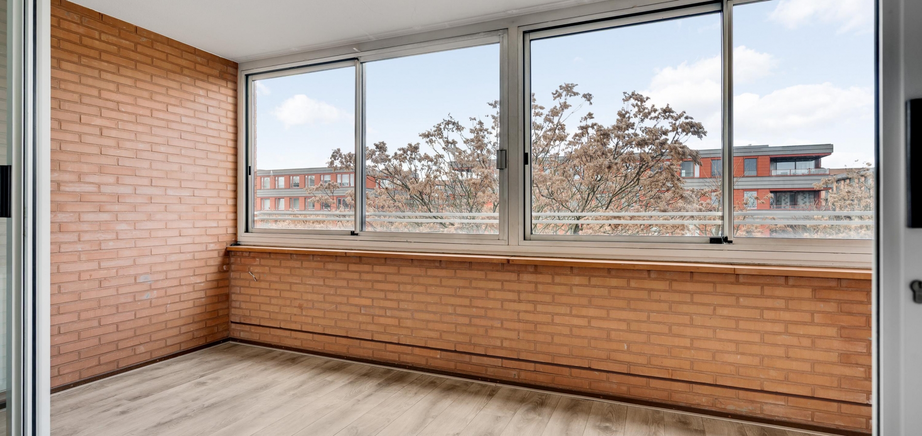 De woonkamer (circa 7,00 x 5,46) is niet alleen royaal, maar heeft ook de juiste verhoudingen voor een mooie indeling. Een grote hoekbank, een heerlijke fauteuil, een tv-kast, dressoir én de eettafel kunnen hier prima staan. De serre/loggia (circa 4,96 x 1,86) met grote, afsluitbare ramen heeft een gunstige ligging op het westen. U ziet de kroon van de bomen die langs de Avenue Céramique staan, die geen belemmering vormen voor de lichtinval.
