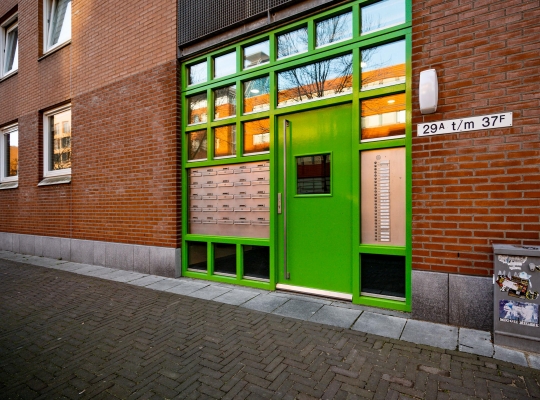 Voor dit appartement loopt u naar de ‘groene’ entree van huisnummer 29a t/m 37d. Deze entree is aan het einde van de Remalunet, op een paar stappen van de Avenue Céramique. Aan de buitenzijde zijn de brievenbussen, het bellentableau en de intercom. De kans is groot dat u met de lift naar boven gaat, want dit appartement is gesitueerd op de vierde verdieping.