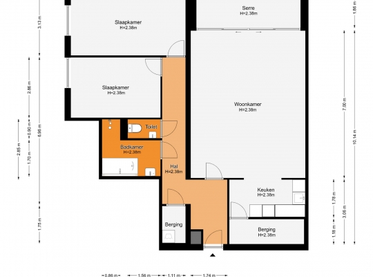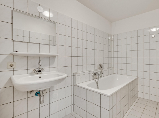 De toiletruimte met fonteintje is uitgevoerd in dezelfde stijl als de badkamer (circa 5,5 m2). Hier heeft u de beschikking over een ligbad, een inloopdouche en een wastafel. Zo biedt dit appartement alles wat u zoekt, met de mogelijkheid om uw geliefde woonstijl aan te brengen. Wordt het hotel-chique, de japandi-stijl, Scandinavisch of vintage?