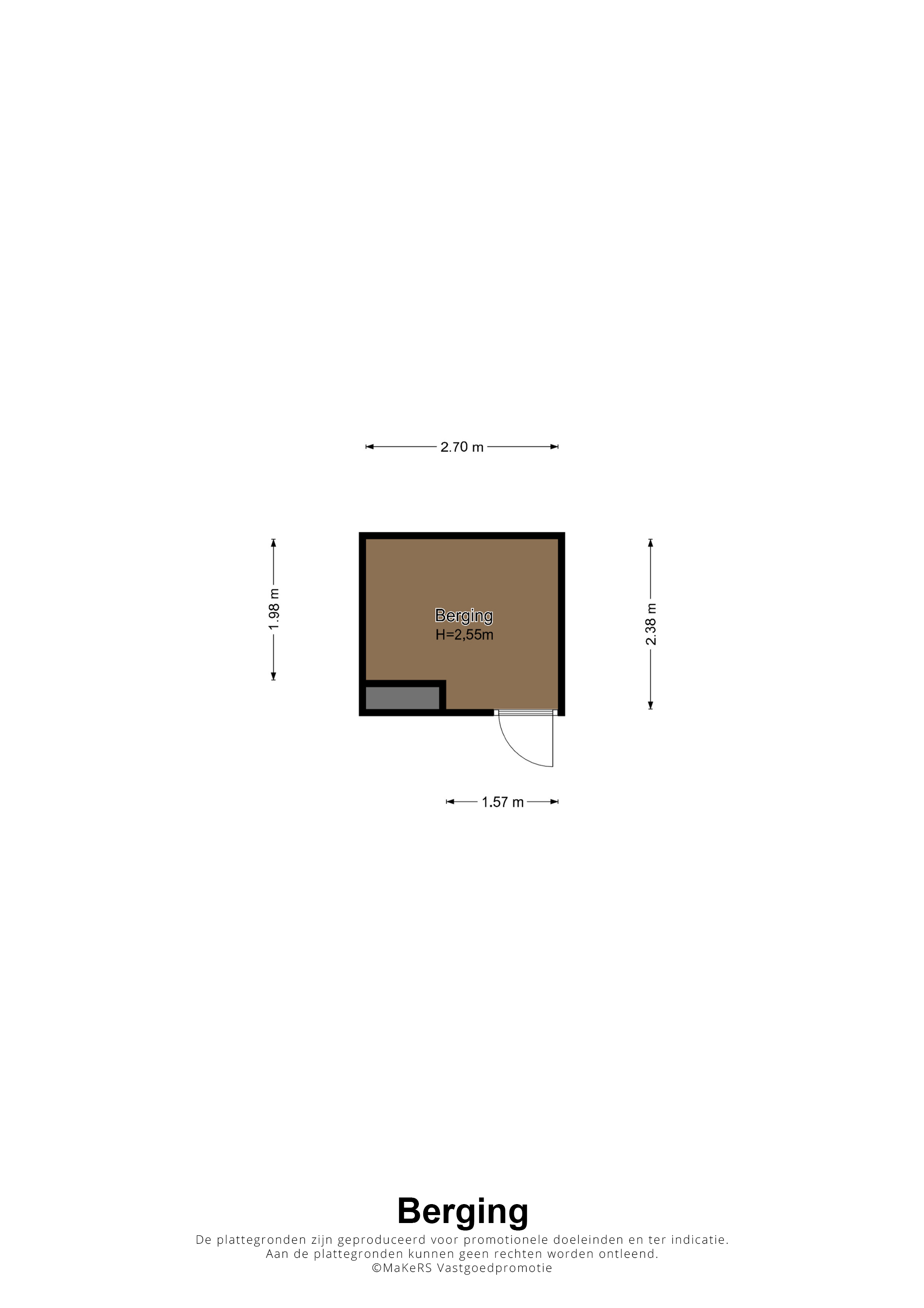 Bij het appartement hoort een privéberging (2,70 x 1,98), gelegen in het souterrain. Daarnaast is er een containerruimte, waar afvalbakken voor het restafval en papier te vinden zijn.