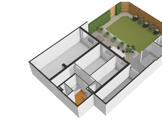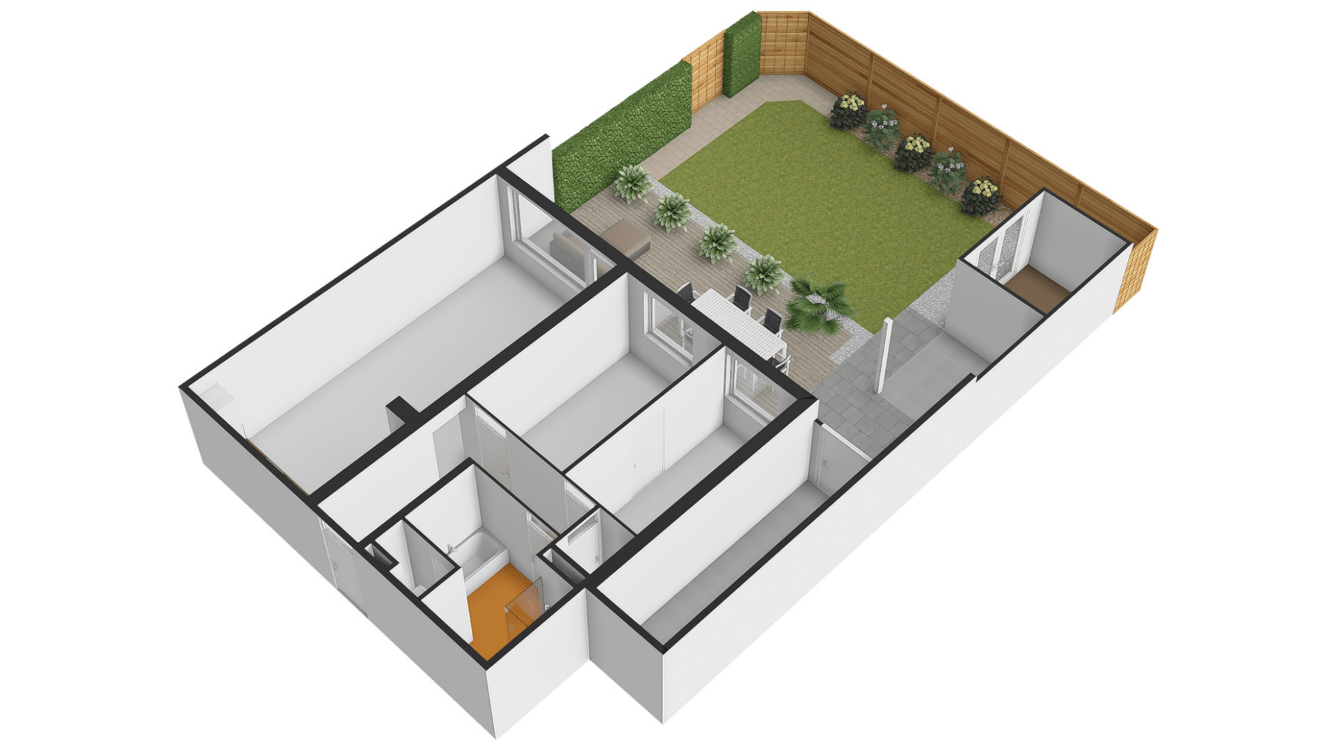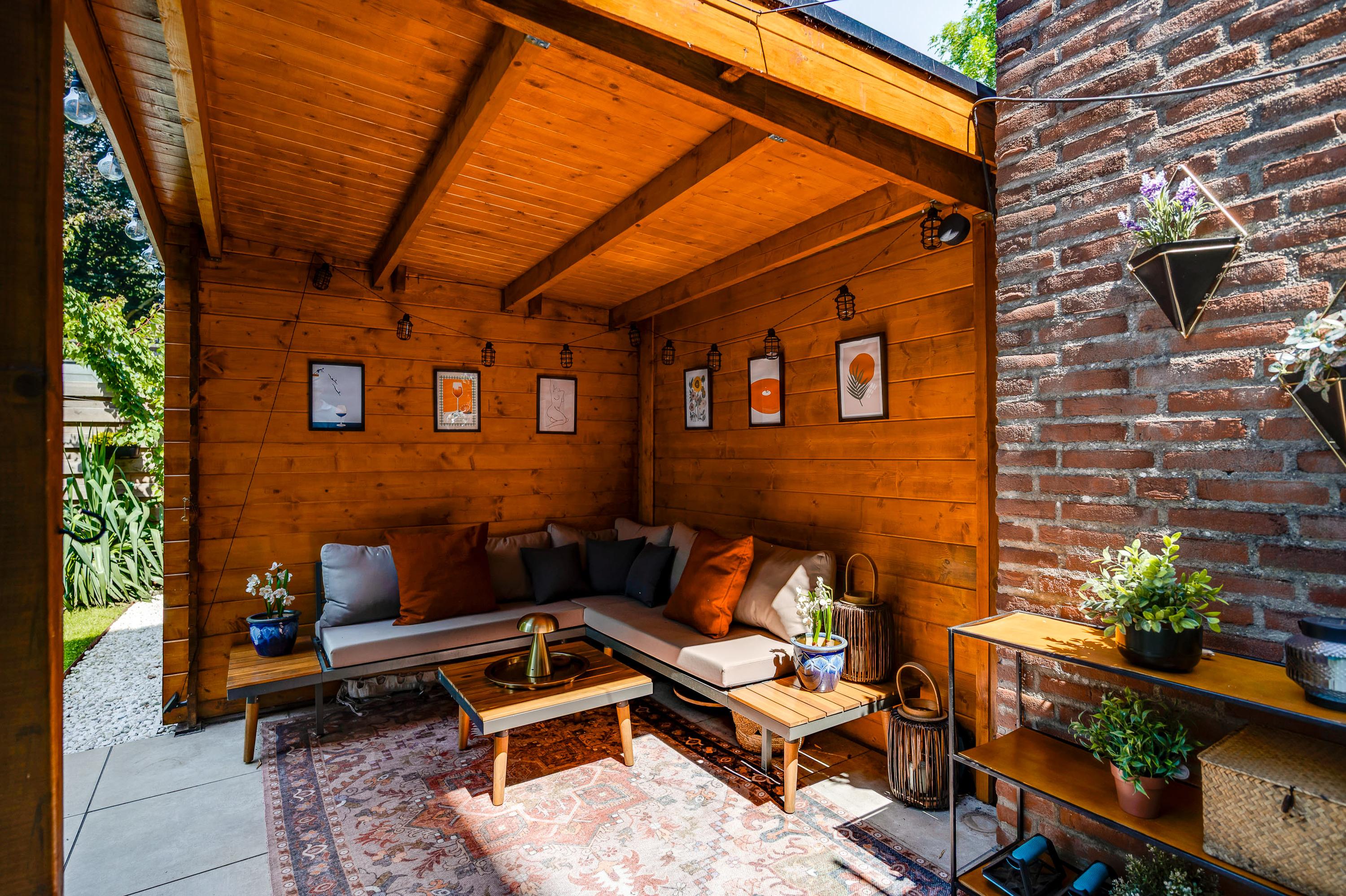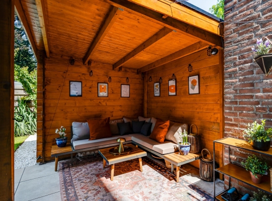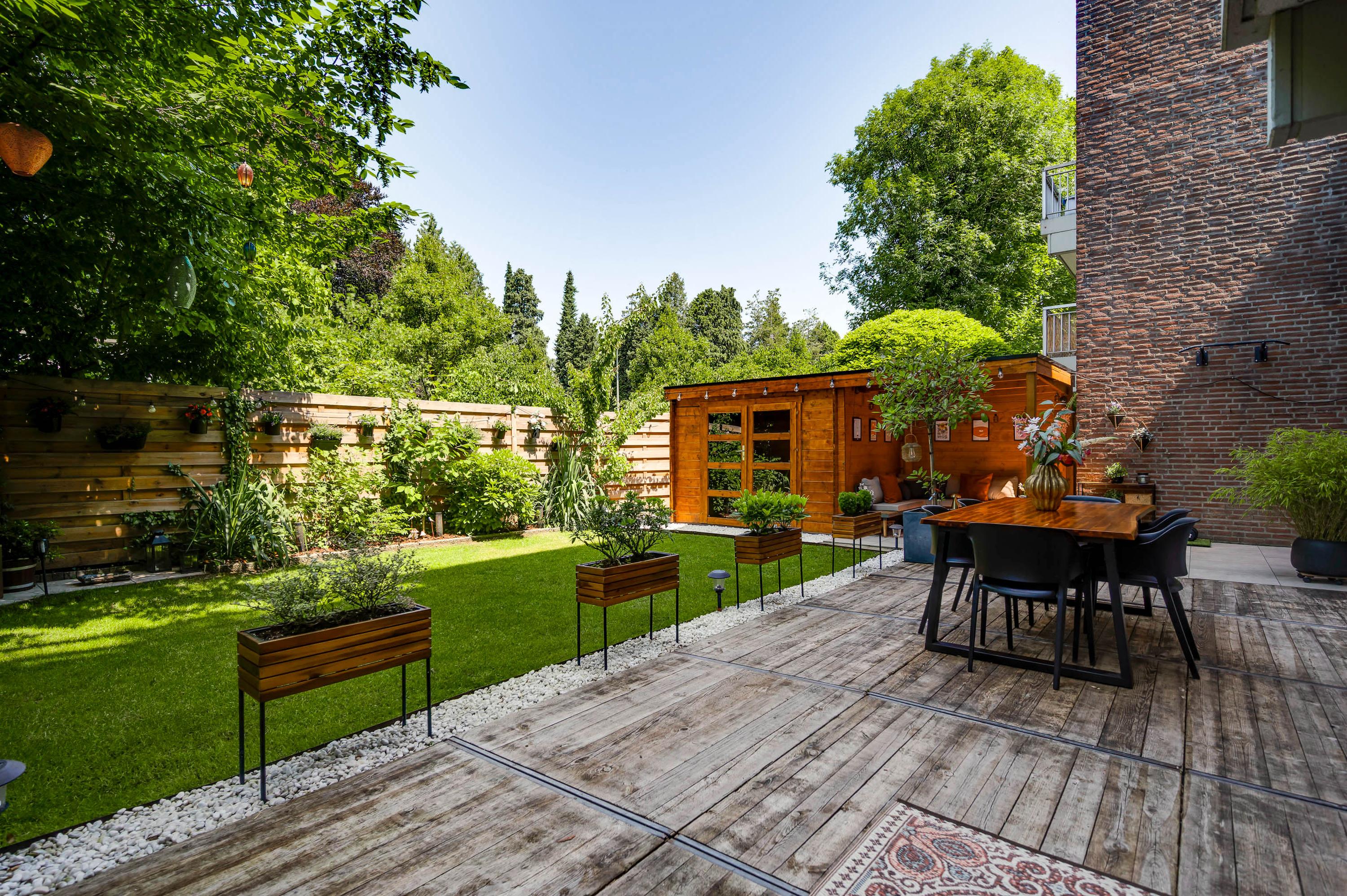 Vanuit de woonkamer is de ruime, mooi aangelegde tuin te bereiken. Het terras van houten steenschotten is van groot formaat, en verder zie u veel groen in de tuin. Het tuinhuis (circa 2,74 x 2,15) is in gebruik als hobbyruimte en het overdekte terras is een fijne plek om van het buitenleven te genieten. Ook is er elektriciteitsvoorziening en de vloer van het tuinhuis is geïsoleerd. Verrassend is de aangebouwde tweede berging van circa 11m2. Deze biedt volop ruimte voor het opbergen van tuinspullen, gereedschap en fietsen. Staat tevens een extra vriezer en wasdroger.