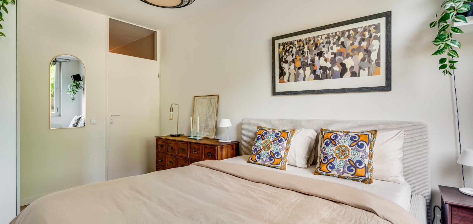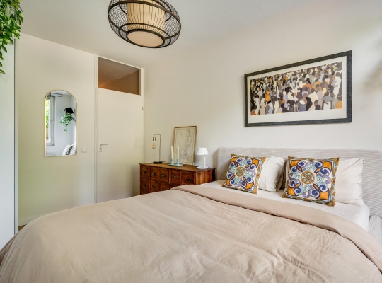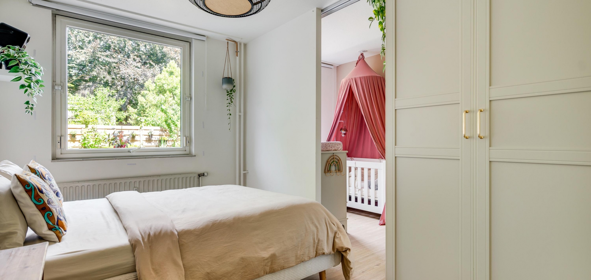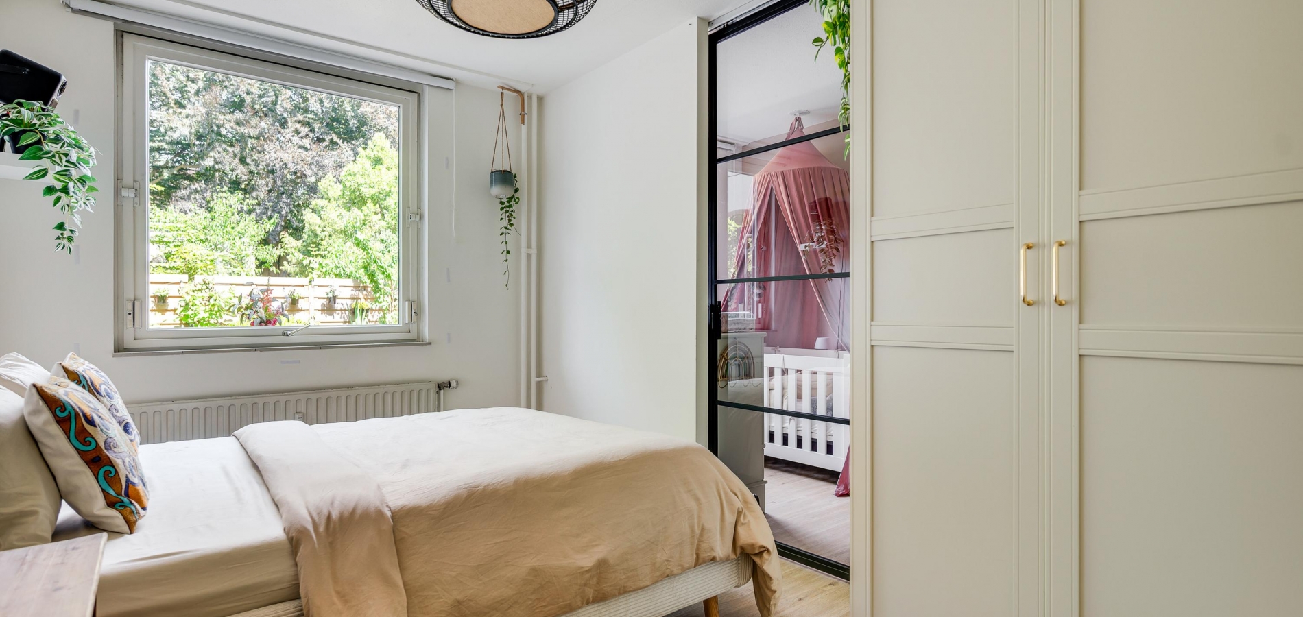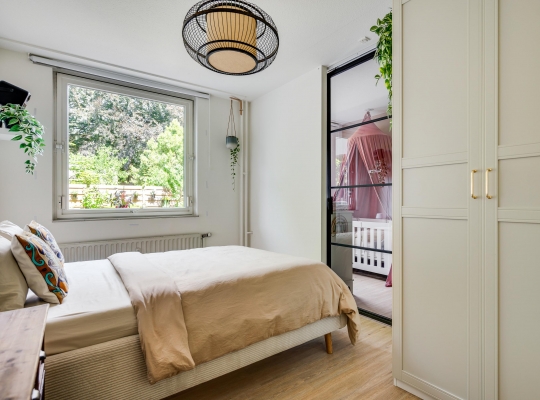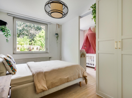Dit instapklare appartement heeft twee ruime slaapkamers, beiden met uitzicht naar de tuin. Slaapkamer I (circa 4,40 x 2,68) is de master bedroom en slaapkamer II (circa 4,40 x 1,92) is te gebruiken als kinderkamer. Beide kamers hebben een deur naar de hal, en er is ook een deur die beide kamers met elkaar verbindt.